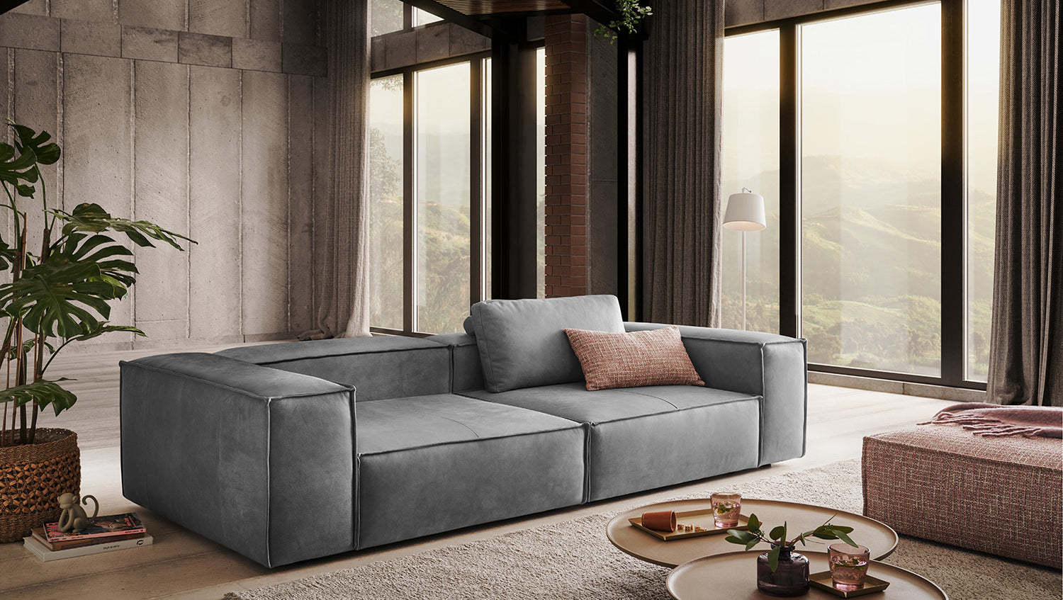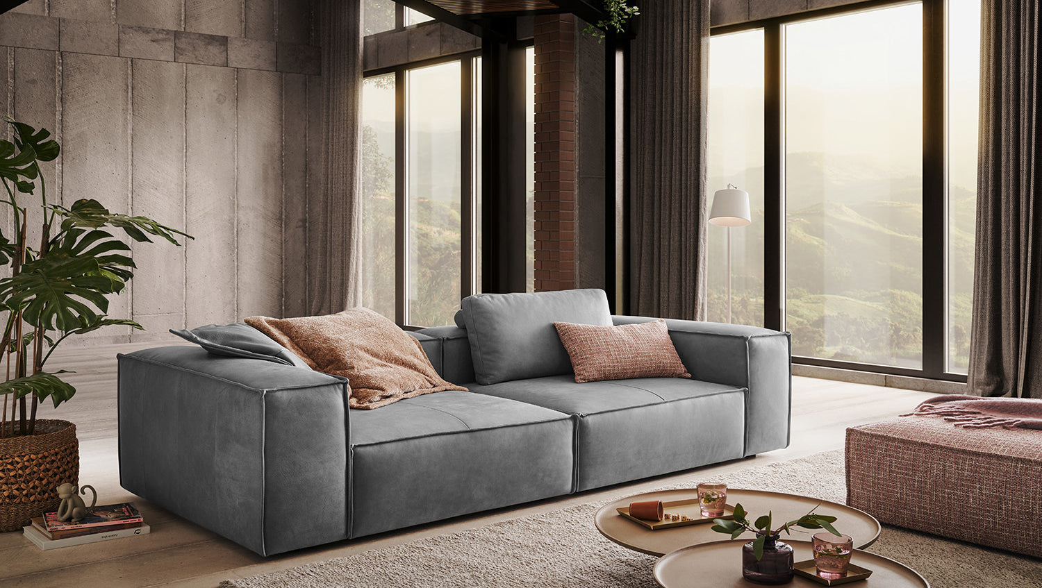 Der weiche Sitzkomfort lädt zum Entspannen ein – ob alleine oder mit Gästen. Mit einer Breite von 266 cm bietet CARMO großzügig Platz für gemütliche Stunden. Der Rundumbezug sorgt dafür, dass das Sofa frei im Raum stehen kann – ideal für moderne Wohnkonzepte.