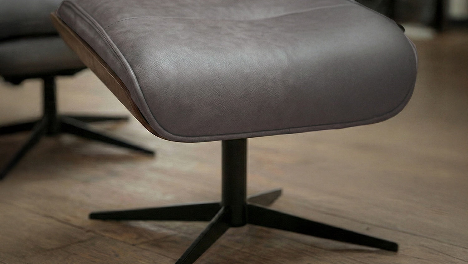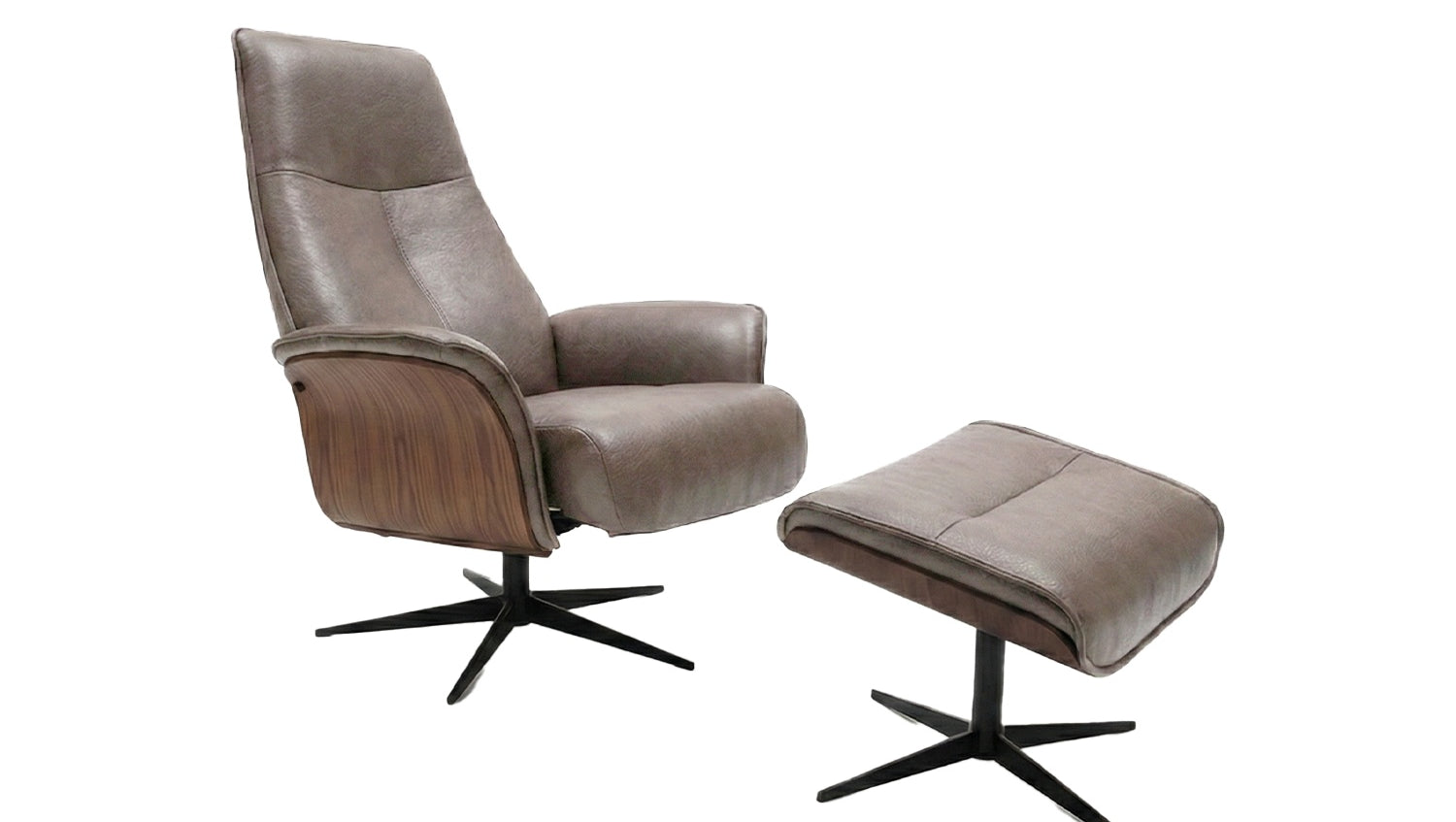 KAWOLA Relaxsessel FERREIRA Drehsessel Lederfaserstoff anthrazit mit Hocker