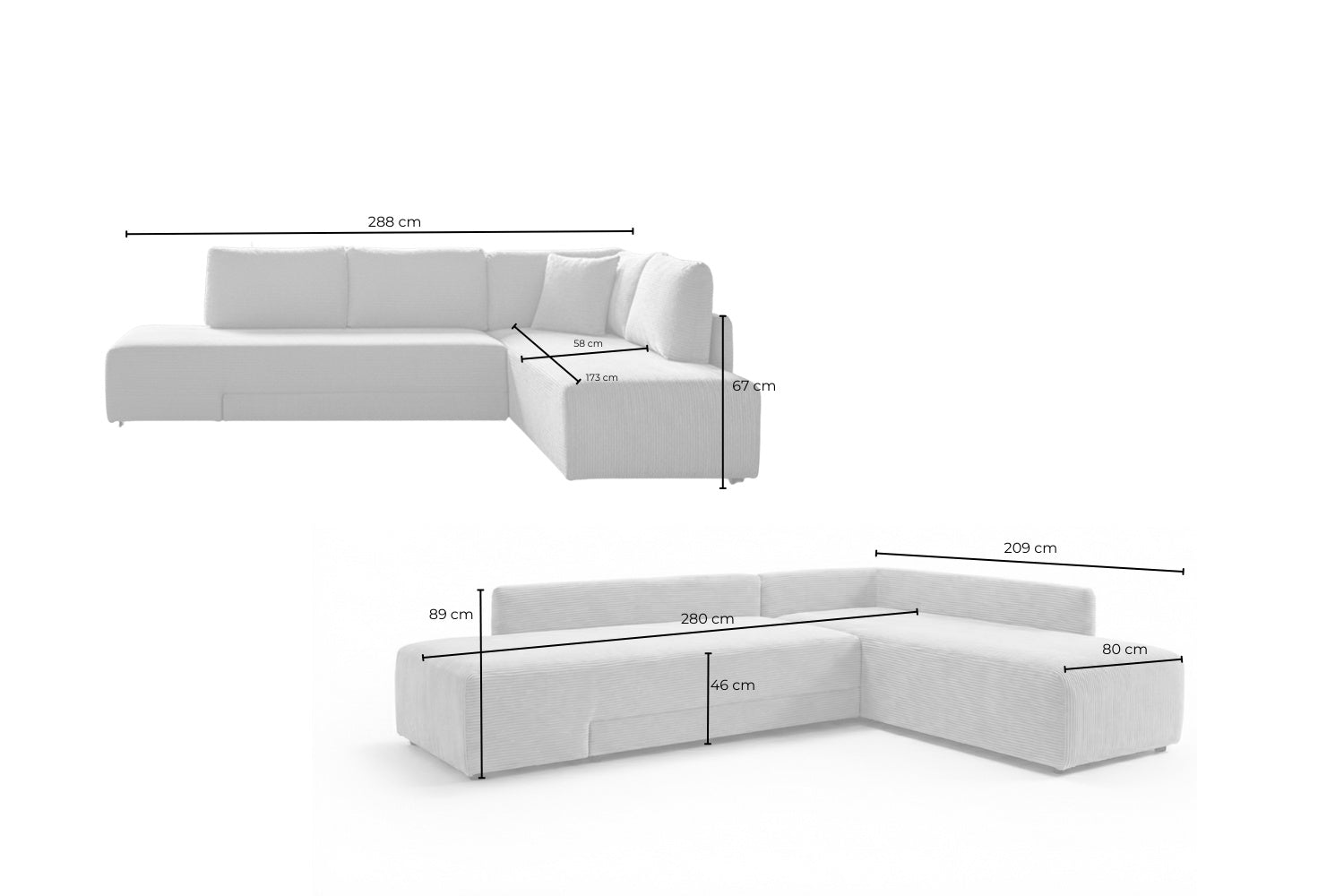 Das Schlafsofa und Ecksofa SADIRA von KAWOLA präsentiert sich besonders modern, klar und zeitlos. Der fein strukturierte Stoff wirkt elegant und zurückhaltend und lässt sich vielseitig in unterschiedliche Einrichtungsstile integrieren. Die reduzierte Formensprache und die ausgewogenen Proportionen verleihen dem Sofa eine moderne Leichtigkeit, ohne dabei auf Komfort zu verzichten. Die großzügige Eckform bietet reichlich Platz zum Entspannen und macht SADIRA zum idealen Möbelstück für Wohn- und Gästezimmer. Die integrierte Schlaffunktion ermöglicht es, das Sofa schnell und unkompliziert in eine komfortable Liegefläche zu verwandeln. Dank der gleichmäßigen Polsterung eignet sich SADIRA sowohl als gemütliches Sitzmöbel im Alltag als auch als vollwertiges Gästebett. Auch bei dieser Ausführung sind insgesamt sechs Kissen im Lieferumfang enthalten, darunter zwei Schlafkissen, die den Schlafkomfort zusätzlich erhöhen und das Sofa funktional abrunden. Mit einer Gesamtbreite von 288 cm und einer Ottomane von 209 cm bietet SADIRA großzügige Flächen zum Sitzen und Liegen. Die Rückenlehnenhöhe von 89 cm sorgt für eine angenehme Sitzhaltung und zusätzlichen Komfort. Mit dem Flachgewebe-Bezug ist SADIRA die ideale Wahl für alle, die ein modernes, funktionales Schlafsofa mit klarer Linienführung und zeitlosem Charakter suchen.