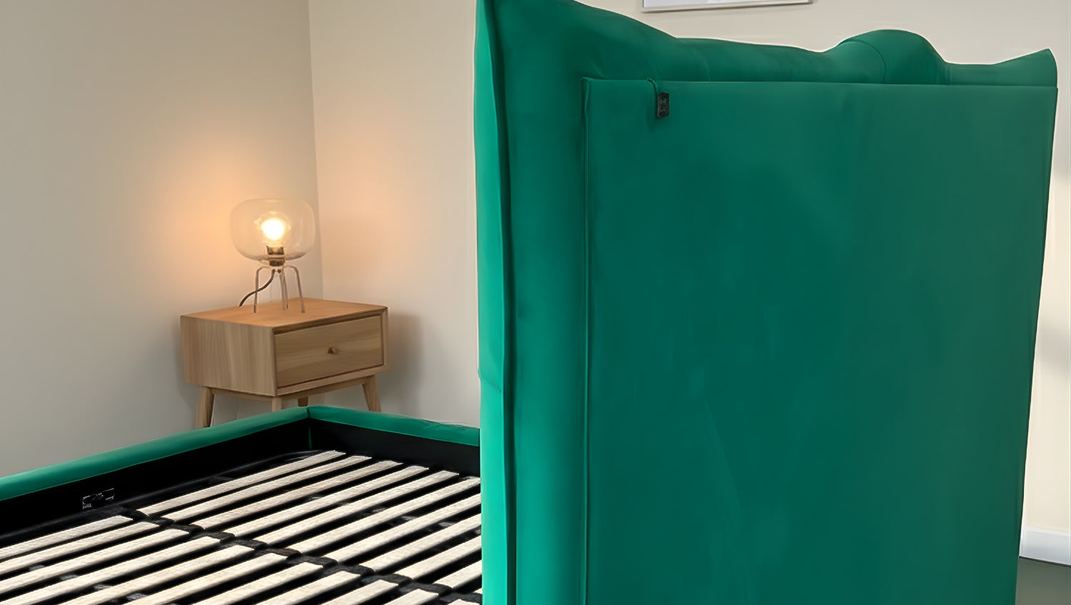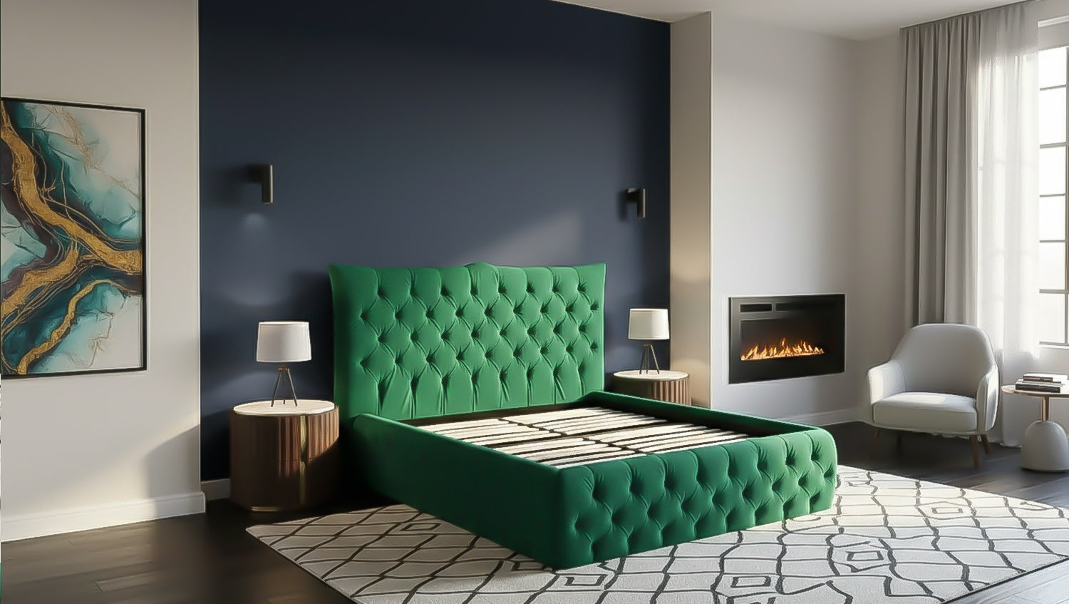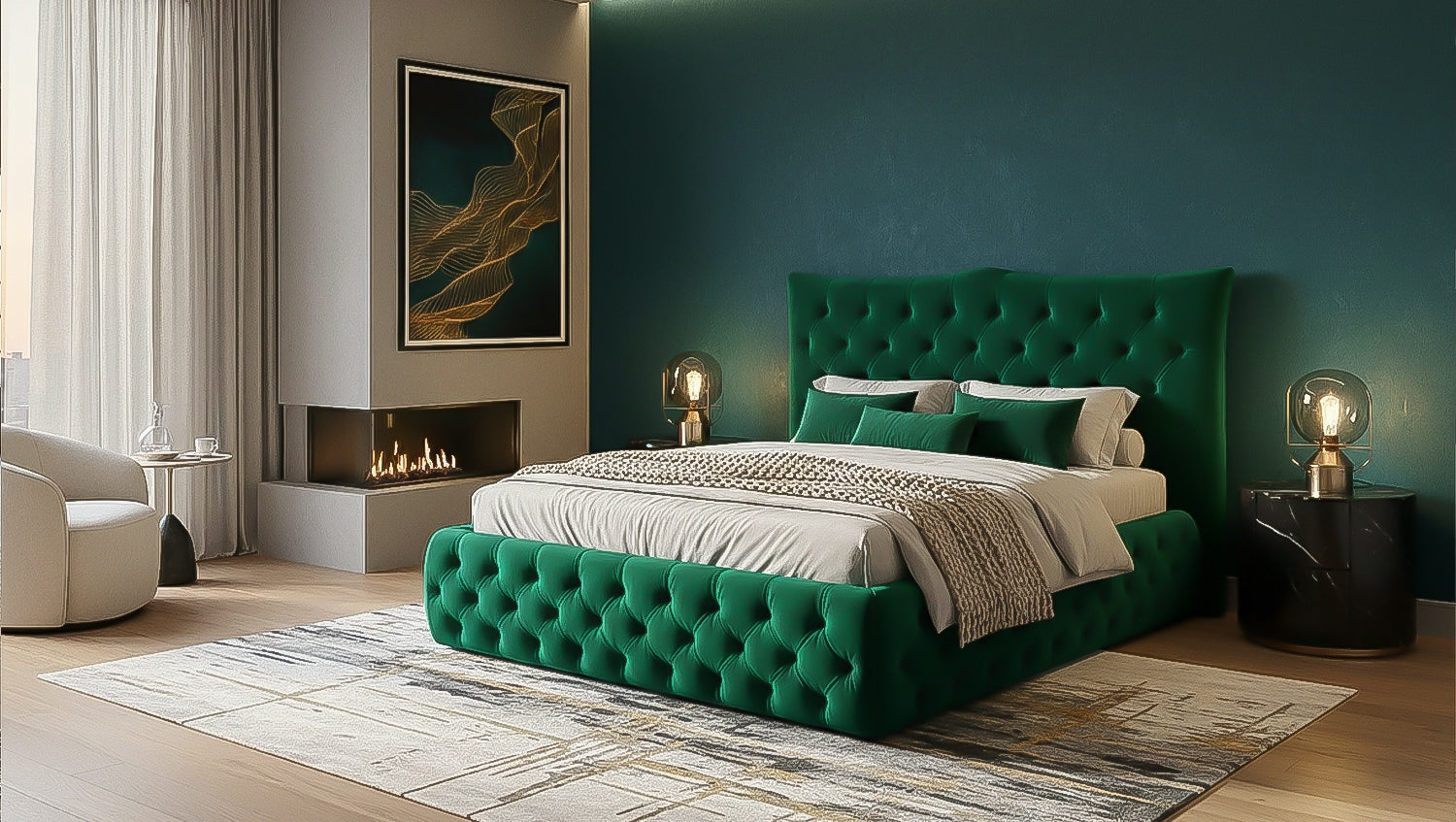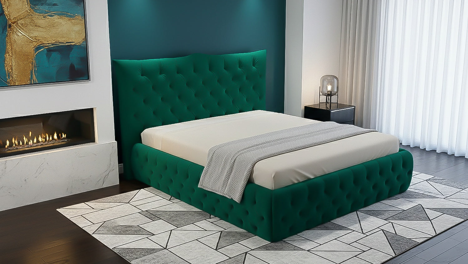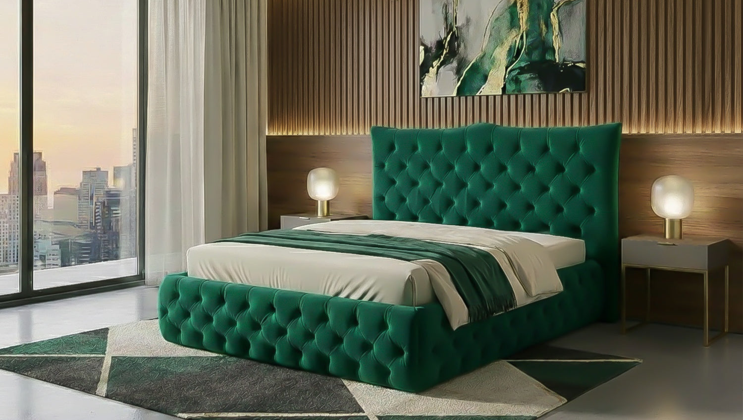 Der Bezug aus hochwertigem Velvet rundet die luxuriöse Anmutung perfekt ab. Die samtig-weiche Oberfläche fühlt sich angenehm an und erzeugt durch ihren feinen Schimmer eine lebendige Tiefenwirkung. Je nach Lichteinfall verändert sich die Optik dezent, wodurch das Bett besonders elegant wirkt. Velvet steht nicht nur für Stil und Komfort, sondern überzeugt auch durch seine Strapazierfähigkeit und angenehme Haptik im täglichen Gebrauch.