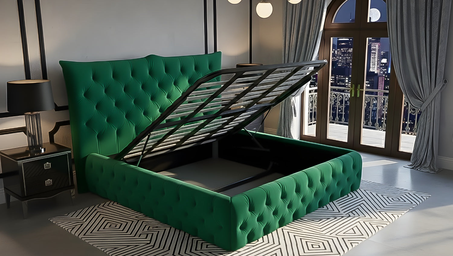 Mit dem Polsterbett BERTINI entscheiden Sie sich für eine gelungene Kombination aus klassischer Eleganz, hochwertigem Velvet-Bezug und durchdachter Stauraumlösung – perfekt für alle, die Design und Funktion harmonisch miteinander verbinden möchten.