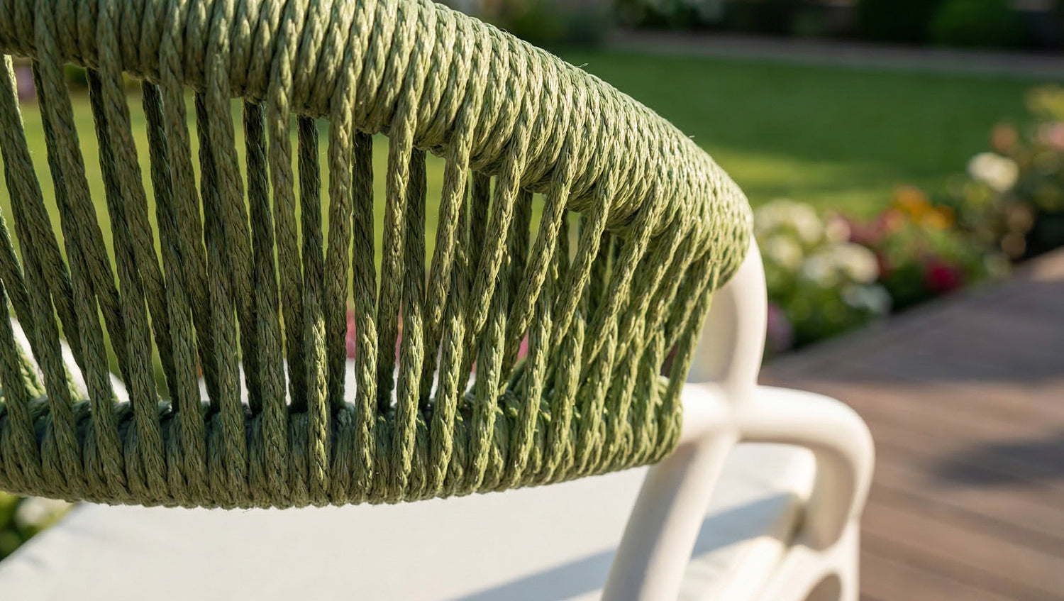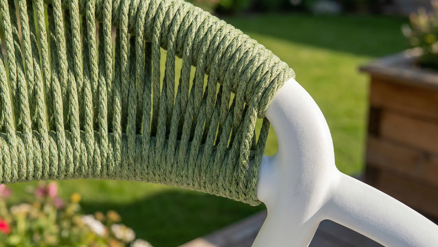 • Moderner Outdoor-Gartenstuhl mit stilvoller Rope-Rückenlehne aus strapazierfähigem Polyester
