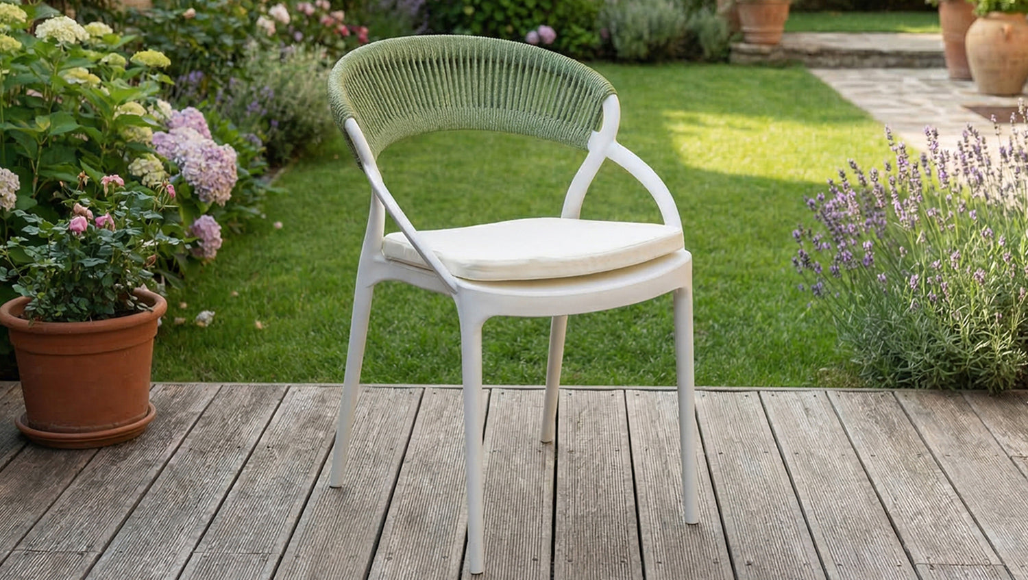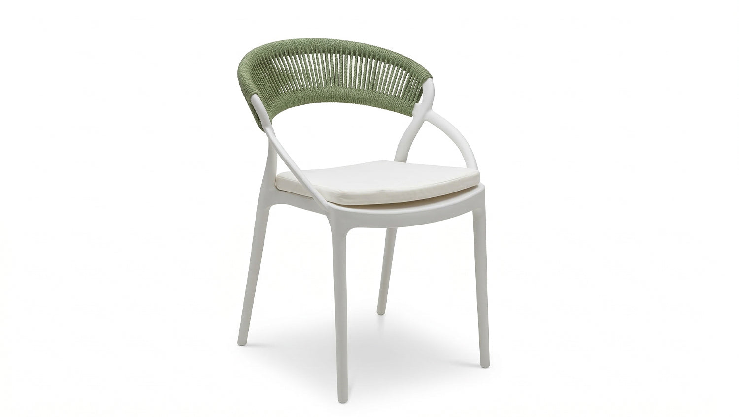 KAWOLA Gartenstuhl KISO Outdoor weiß mit Kissen Rückenlehne Rope grün