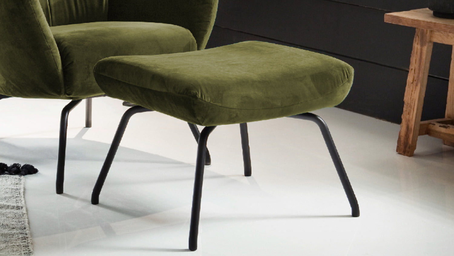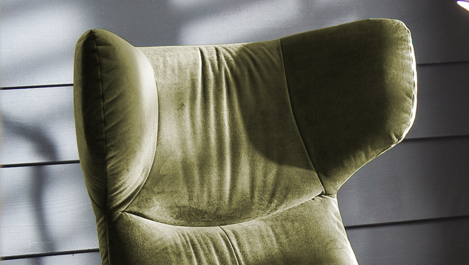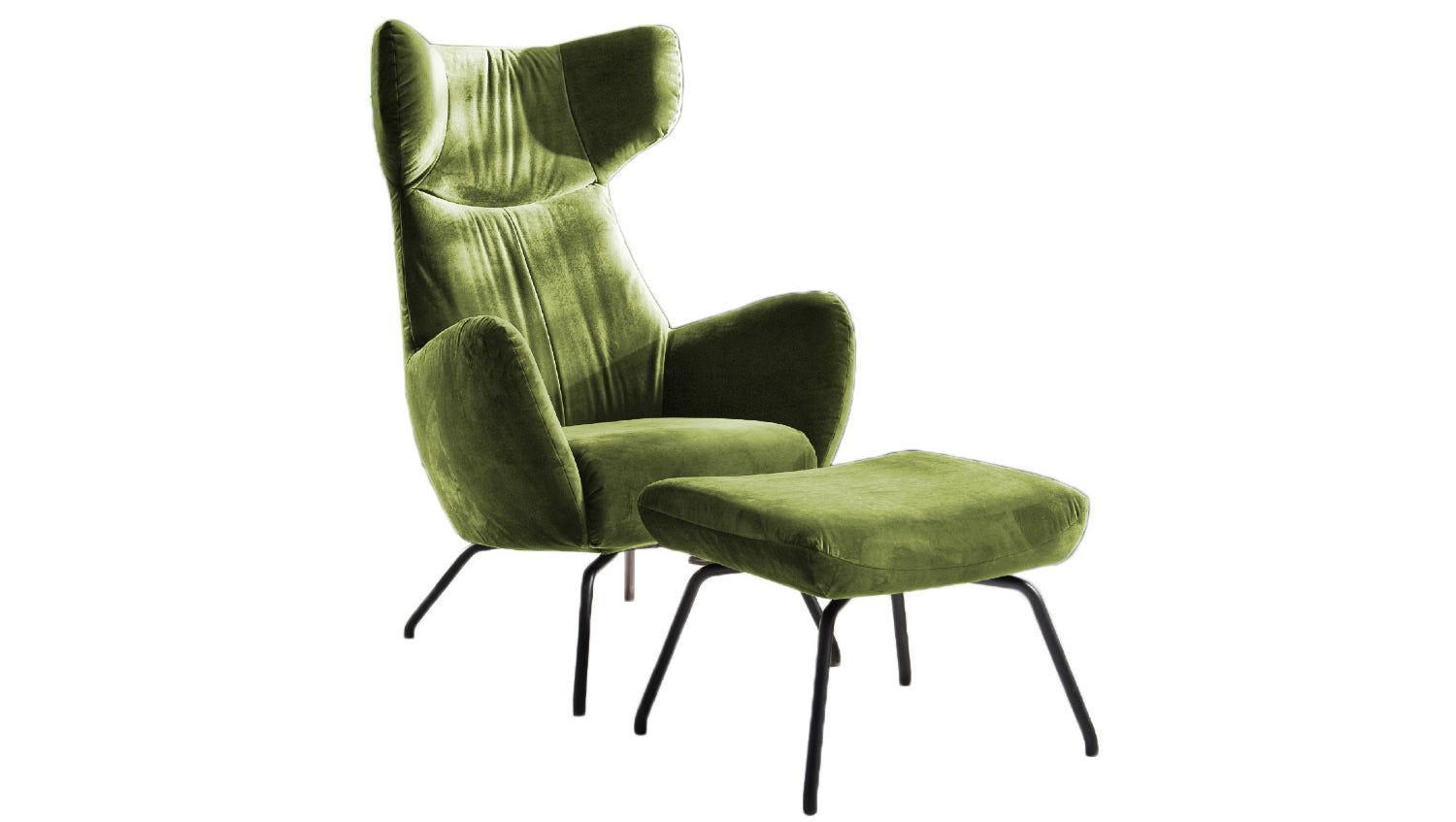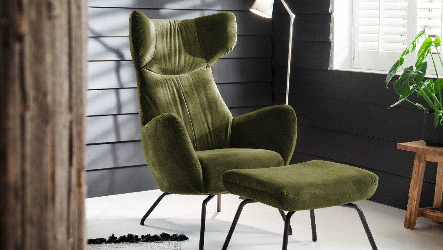 KAWOLA Sessel LOTTE Ohrensessel velvet olivgrün mit Hocker