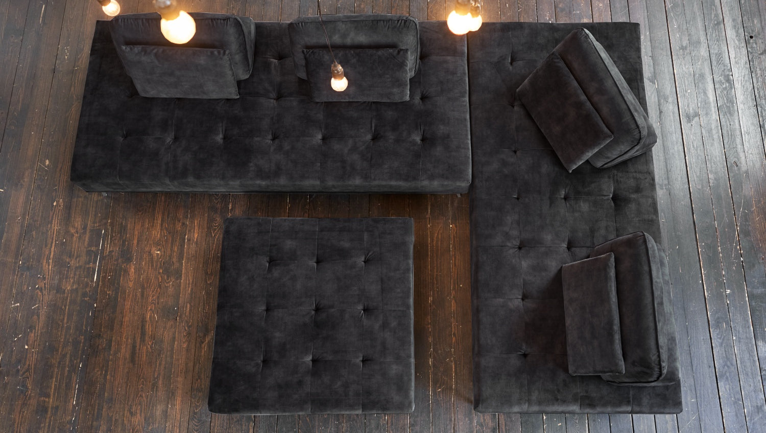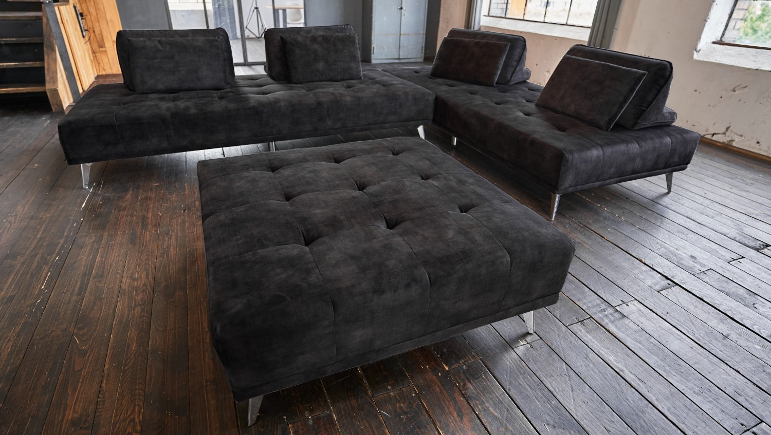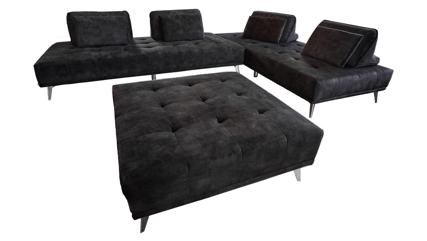 KAWOLA Sofa WIOLO Ecksofa velvet mit Hocker anthrazit