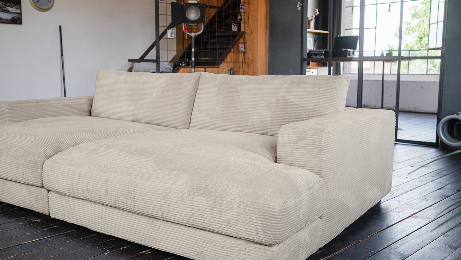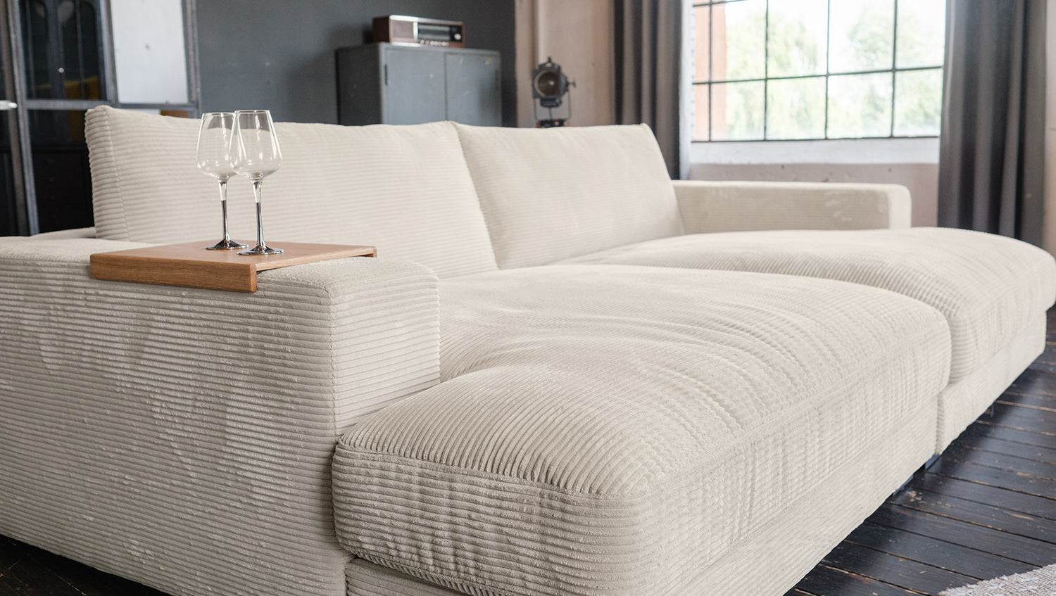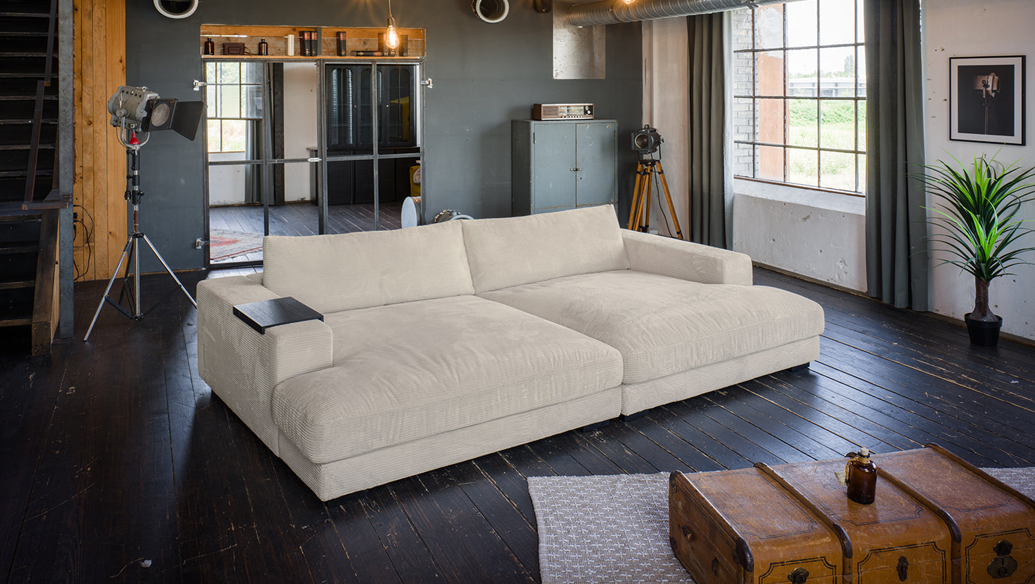 Das KAWOLA Big Sofa MADELINE besticht durch seinen hervorragenden Sitzkomfort, der durch die äußerst legere Polsterung zustande kommt und zum Verweilen und Entspannen einlädt. Das ungewöhnliche Maß und seine moderne und urbane Form verleihen dem Sofa sein unverwechselbares Aussehen und bieten ausreichend Platz, um gemütliche Abende zu verbringen. Mit seinem zeitlosen Design fügt es sich nahtlos in jede Umgebung ein und macht auch frei im Raum stehend eine gute Figur.