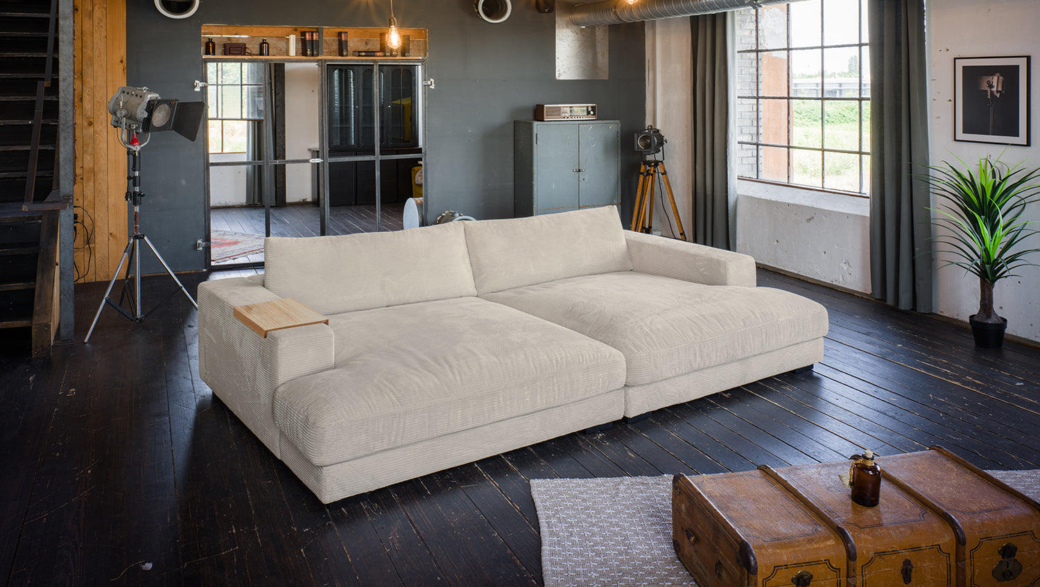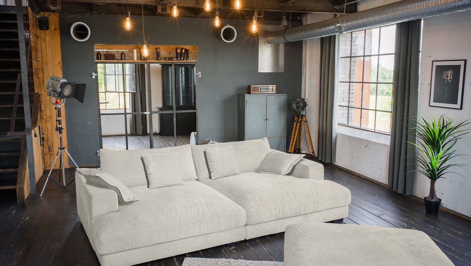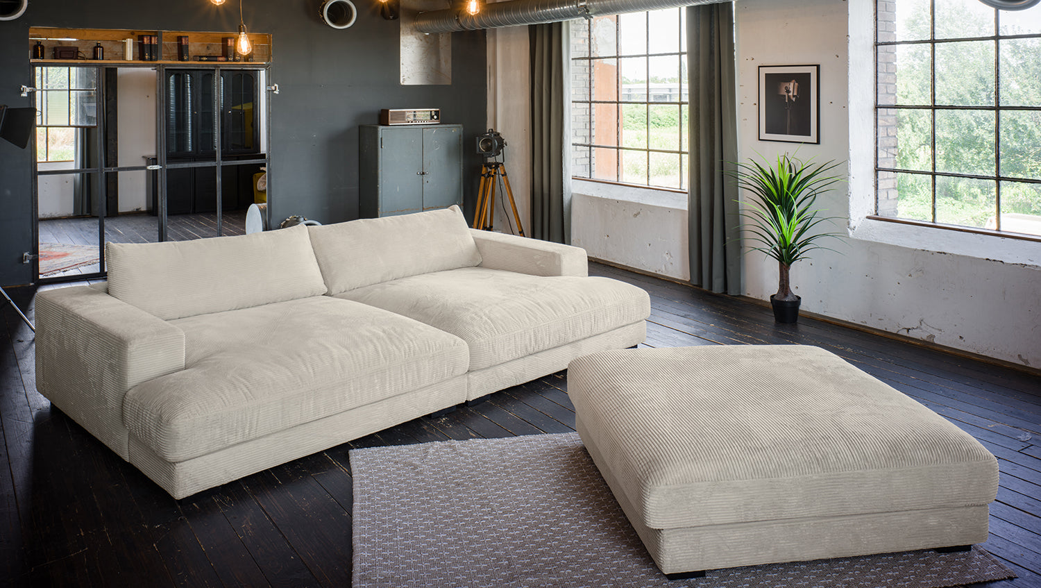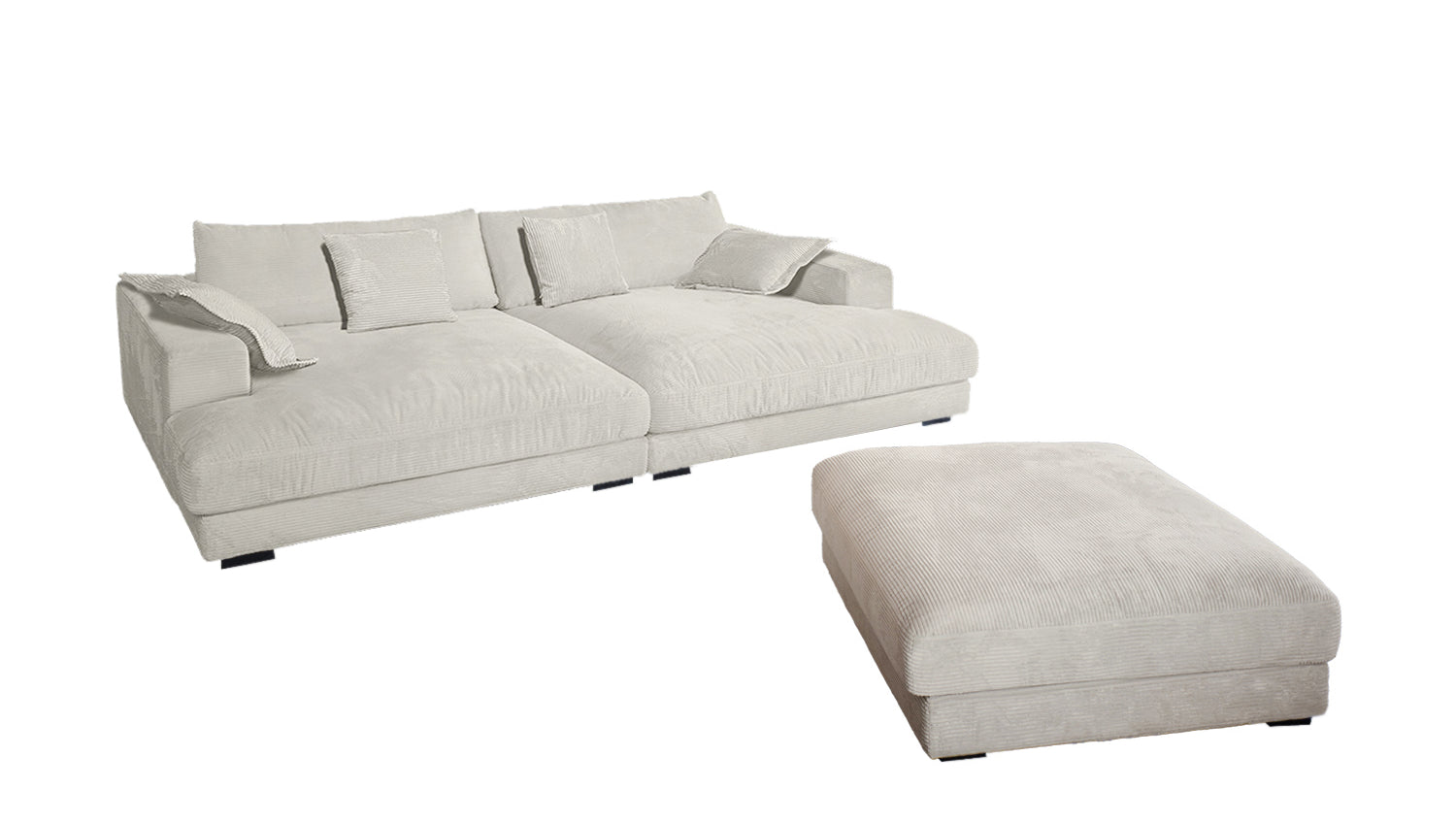 Dieses exklusive Set beinhaltet unser Bestseller-Sofa zusammen mit dem beliebten Big Hocker MADELINE sowie 4 stylischen Zierkissen. So wird Ihr neues Lieblingssofa zur kleinen Wohnlandschaft, und die Stunden, die Sie darauf verbringen, werden noch gemütlicher. Wenn Sie Ihrem Wohnzimmer einen außergewöhnlichen Anstrich verleihen wollen, ist unser Big-Sofa-Set MADELINE definitiv das Richtige für Sie!