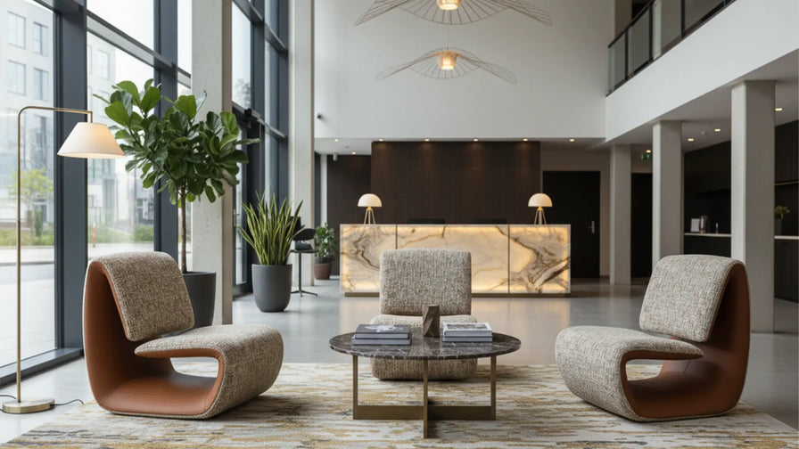 Entdecken Sie Möbel, Farben und Materialien, die eine klare, stilvolle und einladende Atmosphäre in Ihre Business Lounge bringen.