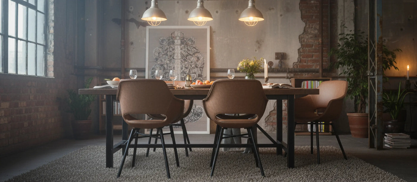 El estilo industrial combina un encanto rústico con la elegancia urbana, creando espacios impactantes, abiertos y llenos de carácter. Los colores más oscuros, como el antracita, el negro o el marrón óxido, son típicos, aportando profundidad y rebosando minimalismo moderno. Se utilizan materiales como el metal, el hormigón, el cuero o la madera, que transmiten autenticidad y evocan la estética de un loft industrial. Las estructuras visibles, las líneas limpias y las formas minimalistas hacen que este estilo sea único: honesto, funcional y con un toque de estilo urbano.