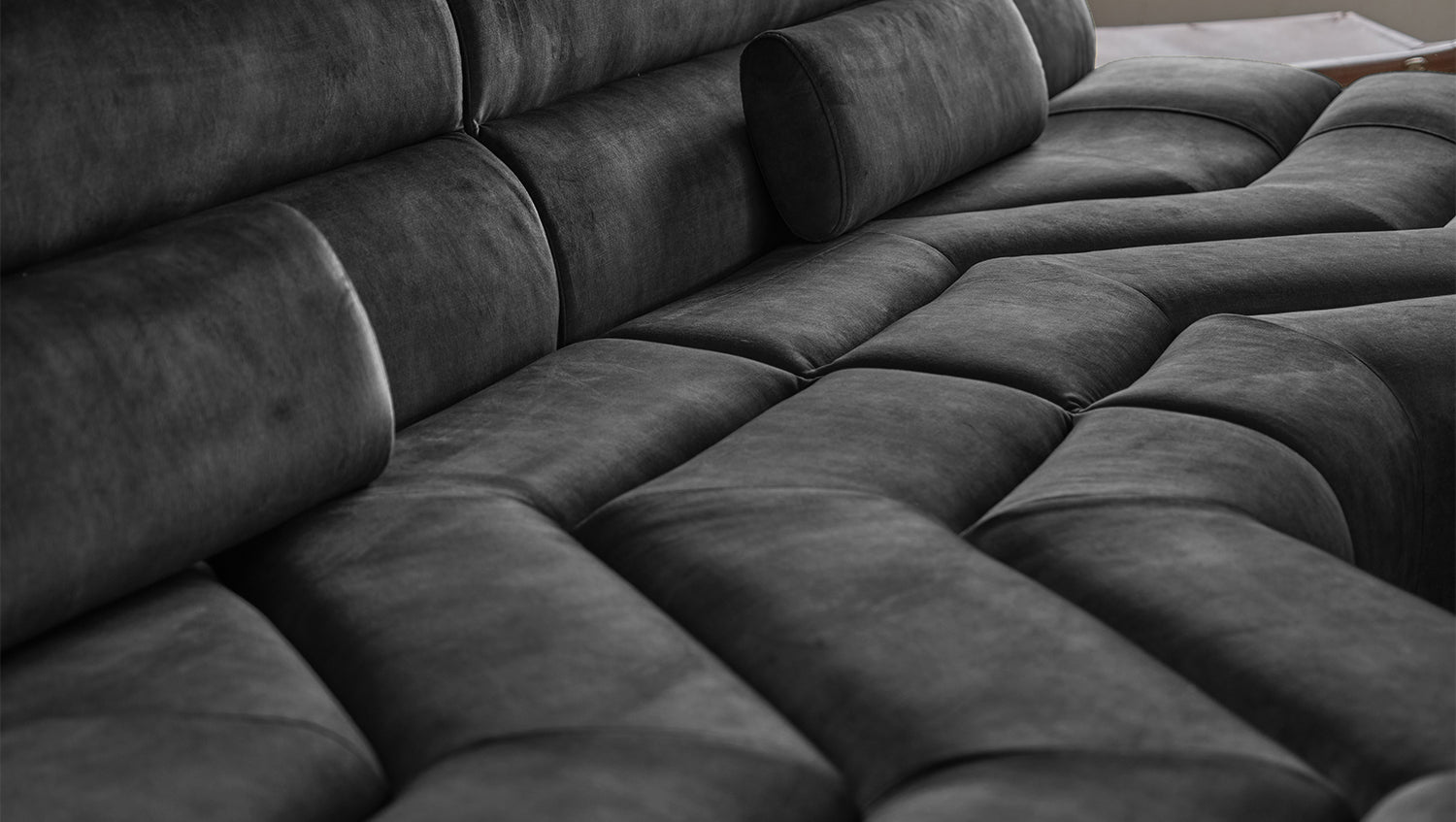 KAWOLA Sofá extra ancho TARA Terciopelo Vintage antracita 286x76x143cm (Ancho/Alto/Profundo)