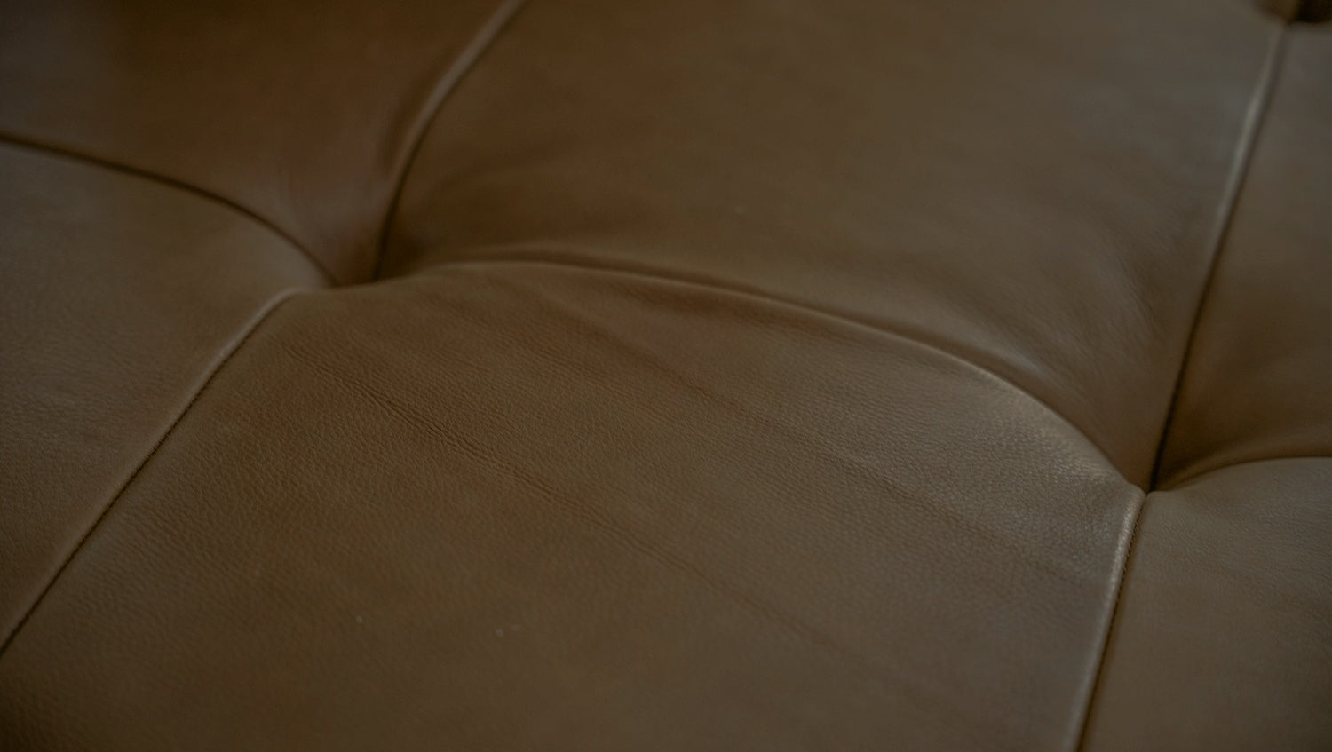 Con su mezcla de elegancia clásica y diseño moderno, el Puf WIOLO de KAWOLA, fabricado en piel de alta calidad, es un elemento indispensable en cualquier salón. Su suave tapizado hace del Puf WIOLO un asiento extremadamente cómodo que se integra a la perfección en cualquier ambiente. El armazón de madera y la base de hierro le confieren una robustez que lo hace versátil, mientras que la piel de vacuno de poros abiertos de alta calidad impresiona por su aspecto natural. Al estar mínimamente tratada, la superficie auténtica permanece completamente intacta, con todas sus finas vetas, ligeros pliegues y estructuras individuales. Estas características no son defectos, sino una expresión de autenticidad y confieren a cada funda su propio carácter. Otra ventaja de esta piel es su transpirabilidad: la estructura de poros abiertos permite que el material intercambie aire y humedad de forma óptima. Como resultado, su tacto es siempre agradable -fresco en verano, cálido en invierno- y se adapta perfectamente a la temperatura ambiente, lo que hace que cada mueble revestido con esta piel sea realmente único. La combinación de un aspecto natural, un agradable clima de asiento y una calidad duradera hacen de esta piel de vaca un material de tapicería especialmente valioso y con un fuerte carácter.