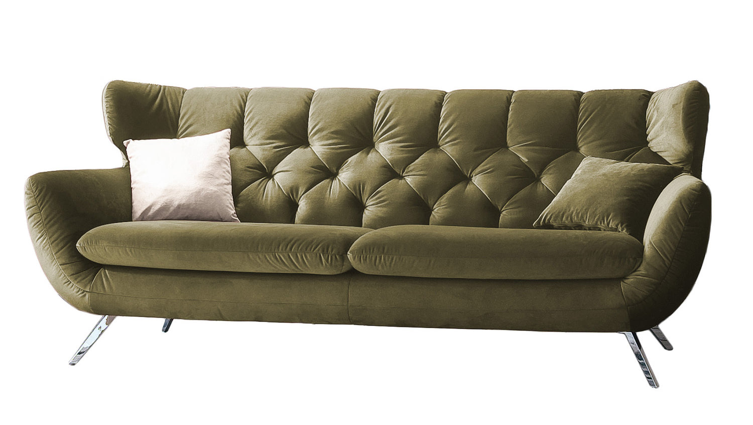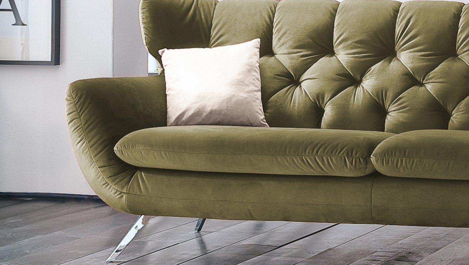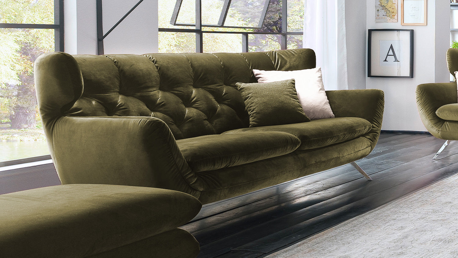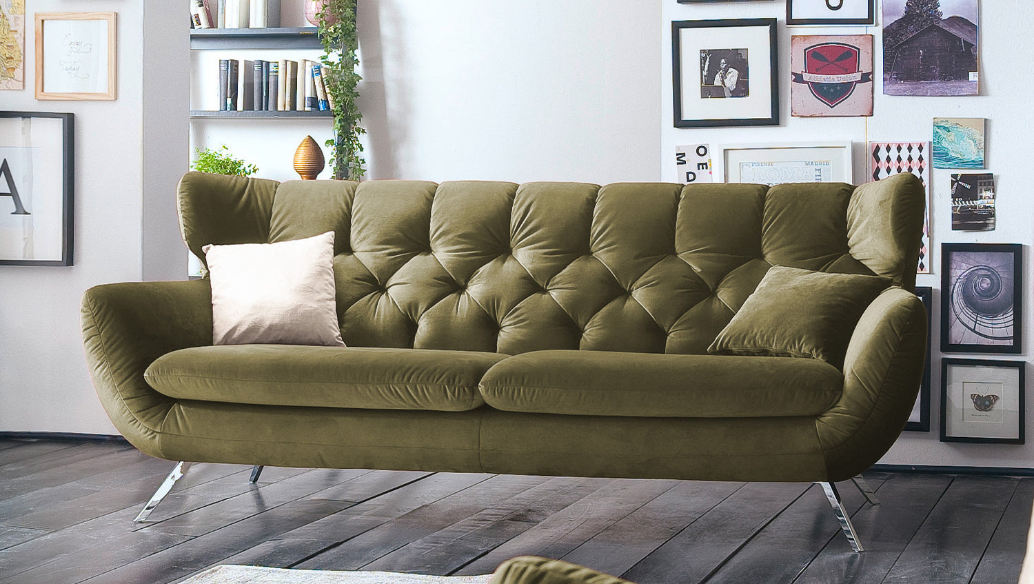El sofá CHARME de KAWOLA es algo muy especial. El estilo del sofá CHARME recuerda a los años sesenta: el respaldo está elaboradamente acolchado sin botones; el respaldo está ligeramente curvado hacia delante en ambos lados y recuerda a la forma de un sillón de orejas; los pies metálicos están ligeramente acampanados. La tapicería del sofá es de espuma de poliuretano e impresiona por su comodidad suave y desenfadada. Los cojines del asiento se adaptan cómodamente a la forma del cuerpo y, por supuesto, el sofá está completamente tapizado en terciopelo para que también pueda colocarse en cualquier lugar de la habitación. Si no busca un simple sofá, sino un punto de atracción muy especial, ¡el sofá KAWOLA CHARME es la elección perfecta!