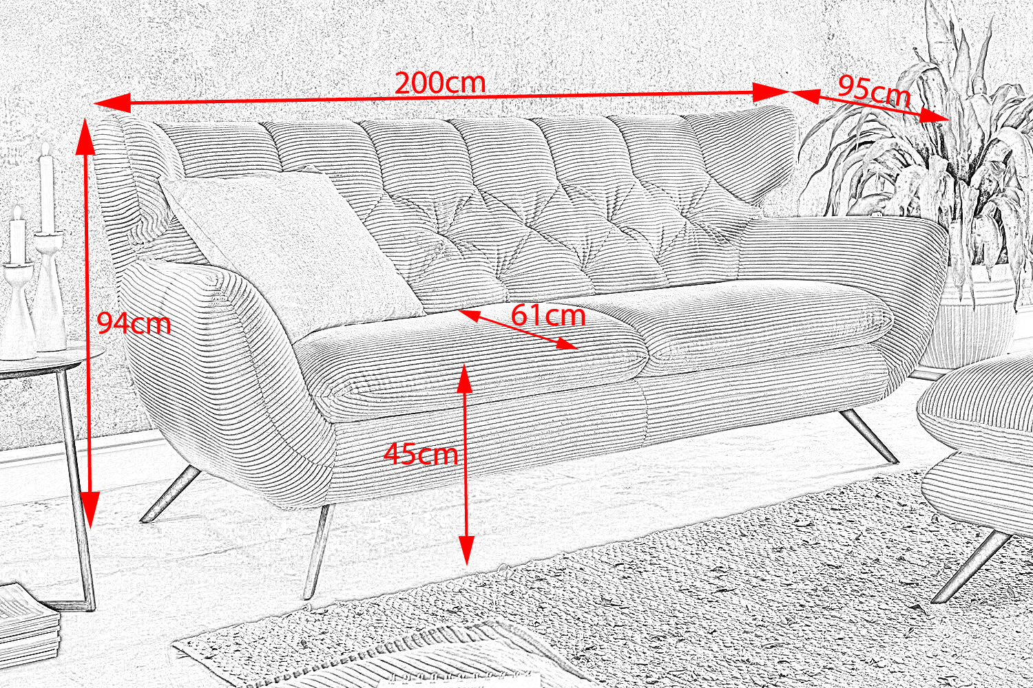 El sofá CHARME de KAWOLA es algo muy especial. El estilo del sofá CHARME recuerda a los años sesenta: el respaldo está elaboradamente acolchado sin botones; el respaldo está ligeramente curvado hacia delante en ambos lados y recuerda a la forma de un sillón de orejas; los pies metálicos están ligeramente acampanados. La tapicería del sofá es de espuma de poliuretano e impresiona por su comodidad suave y desenfadada. Los cojines del asiento se adaptan cómodamente a la forma del cuerpo y, por supuesto, el sofá está completamente tapizado en Pana para que también pueda colocarse en cualquier lugar de la habitación. Si no busca un simple sofá, sino un punto de atracción muy especial, ¡el sofá KAWOLA CHARME es la elección perfecta!