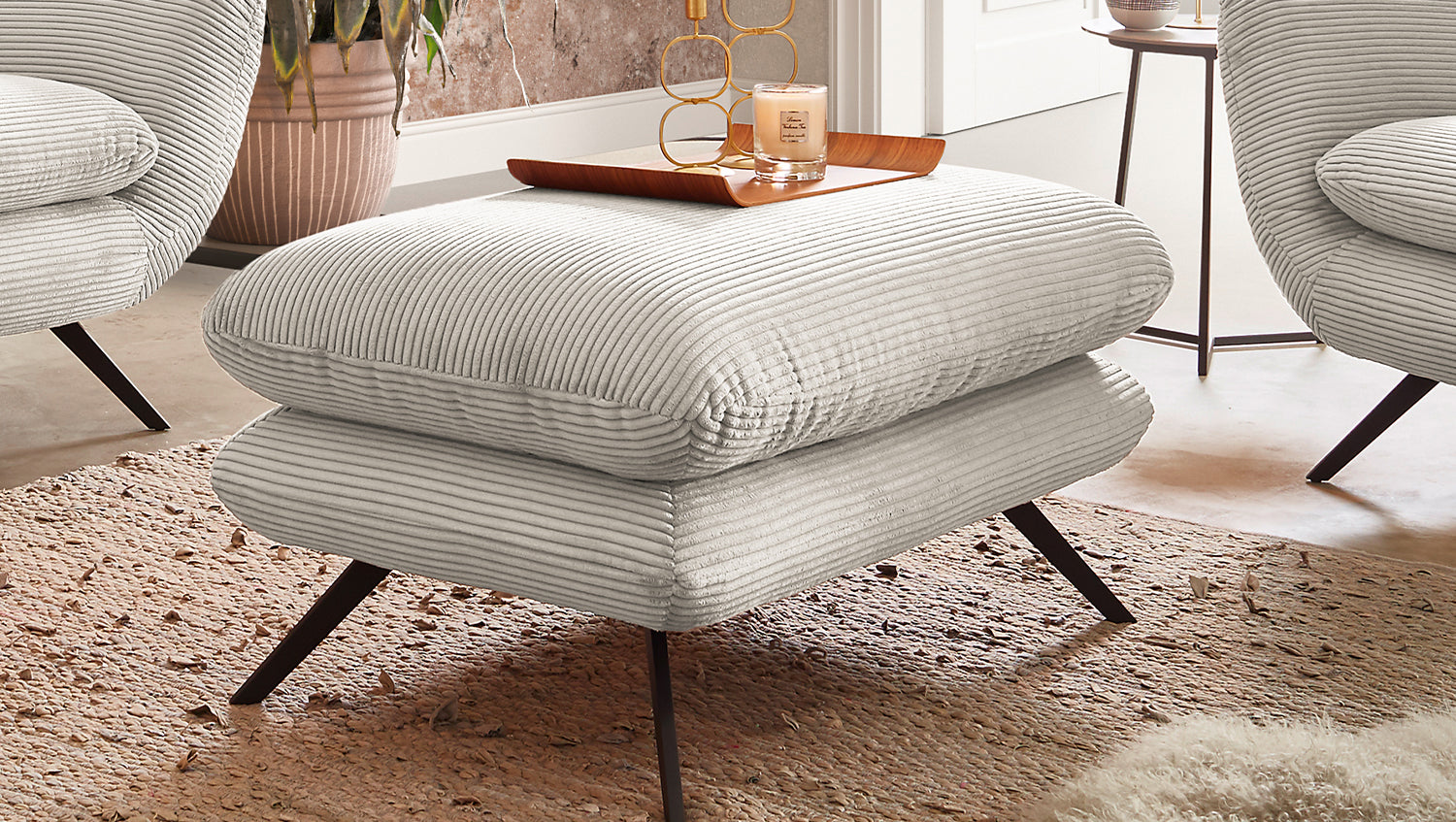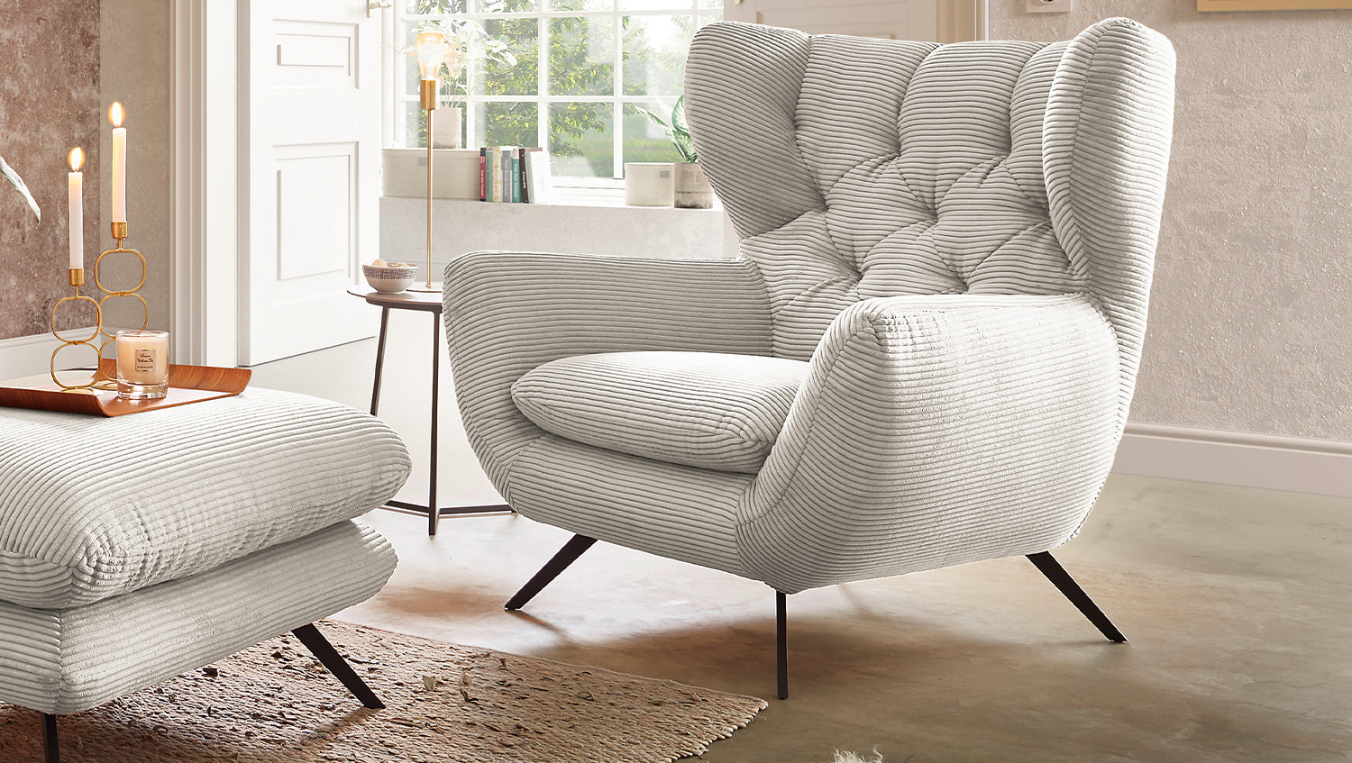 El sillón CHARME de KAWOLA es un sillón muy especial y pone nuevos acentos en el salón como auténtica pieza de diseño. El estilo del sillón CHARME recuerda a los años 60: el respaldo está cosido de forma elaborada sin botones; el respaldo está ligeramente curvado hacia delante en ambos lados y recuerda la forma de un sillón de orejas; los pies de metal con recubrimiento de polvo están ligeramente acampanados. A juego con la forma inusual del sillón CHARME, se ha optado por una funda de pana de aspecto ligeramente aterciopelado. El tapizado del sillón CHARME de KAWOLA es de espuma PUR y convence por su suave y desenfadado confort de asiento. Ni que decir tiene que el sillón está completamente revestido con la tela de pana, por lo que este estupendo sillón también puede colocarse en cualquier lugar de la habitación. Si no busca simplemente un sillón, sino un punto culminante muy especial, ¡el sillón KAWOLA CHARME es la elección perfecta!