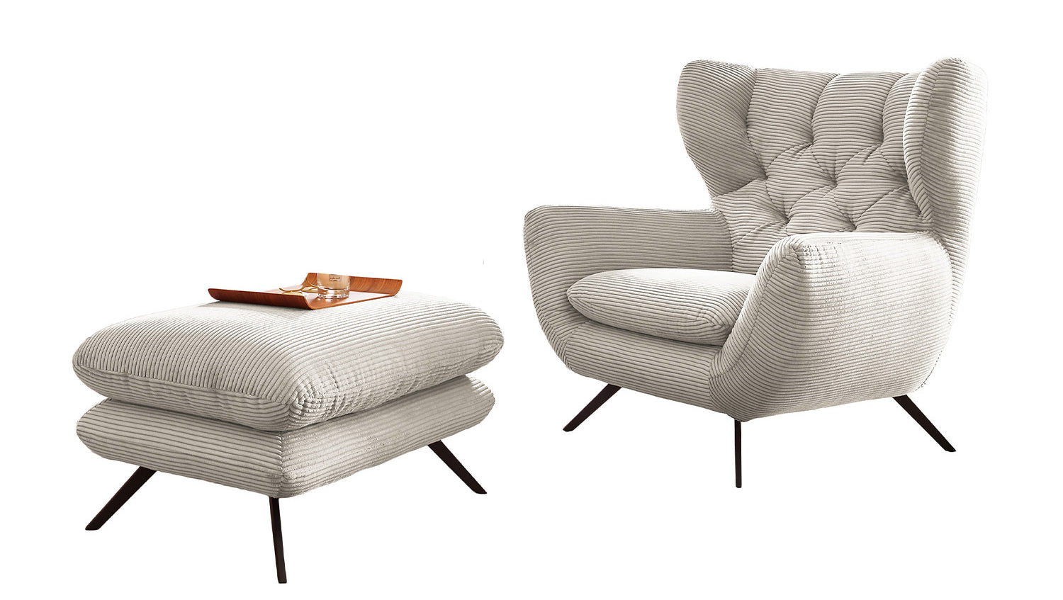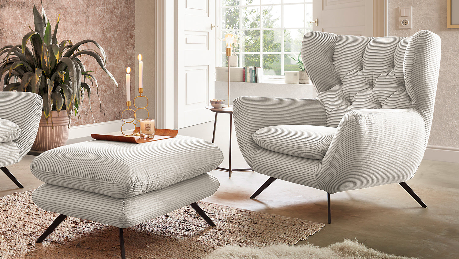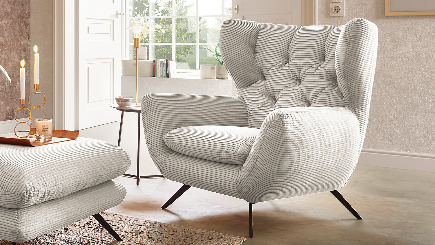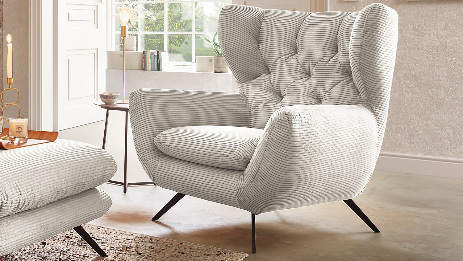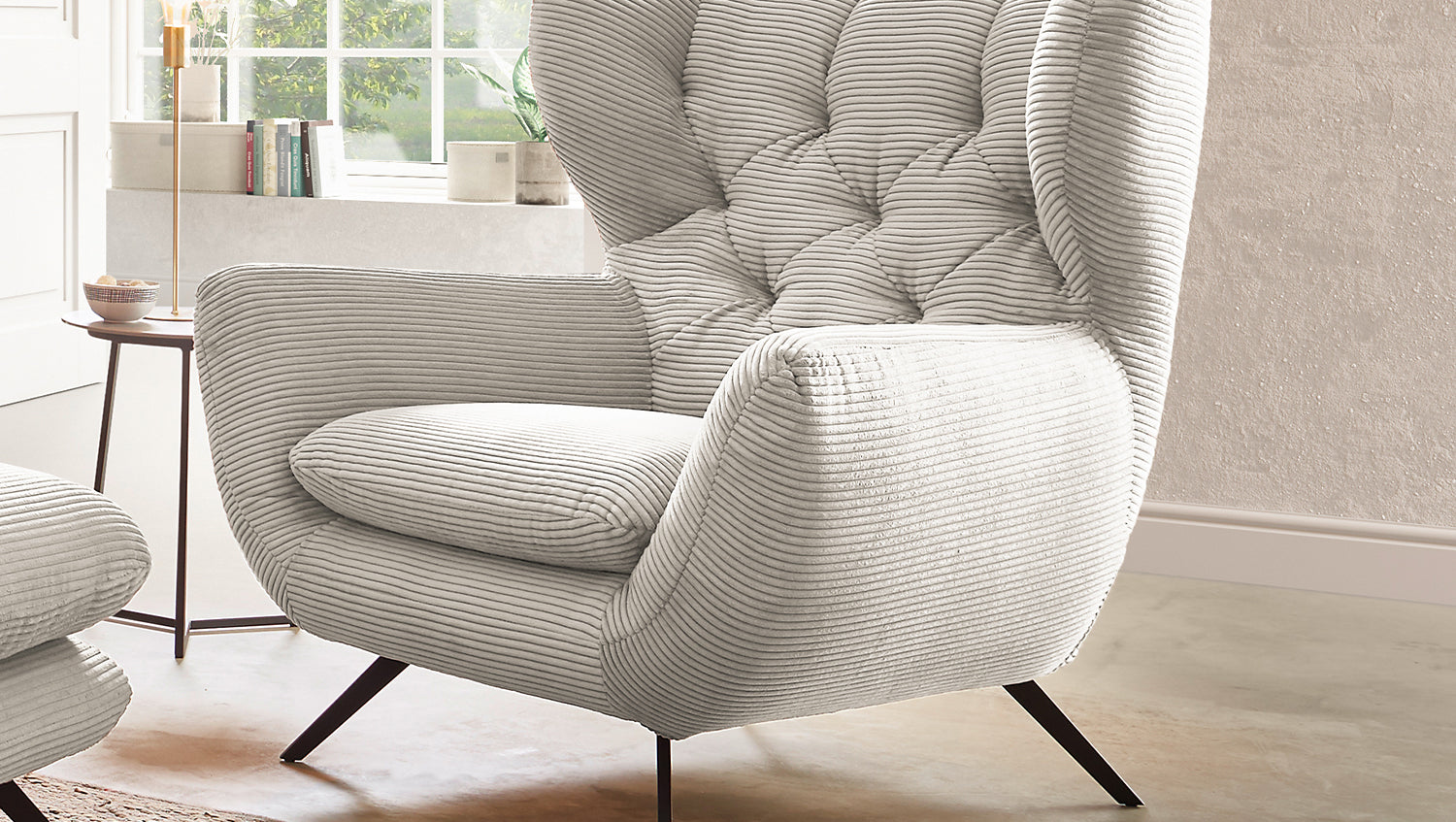 KAWOLA sillón CHARME sillón de respaldo alto pana crema blanco