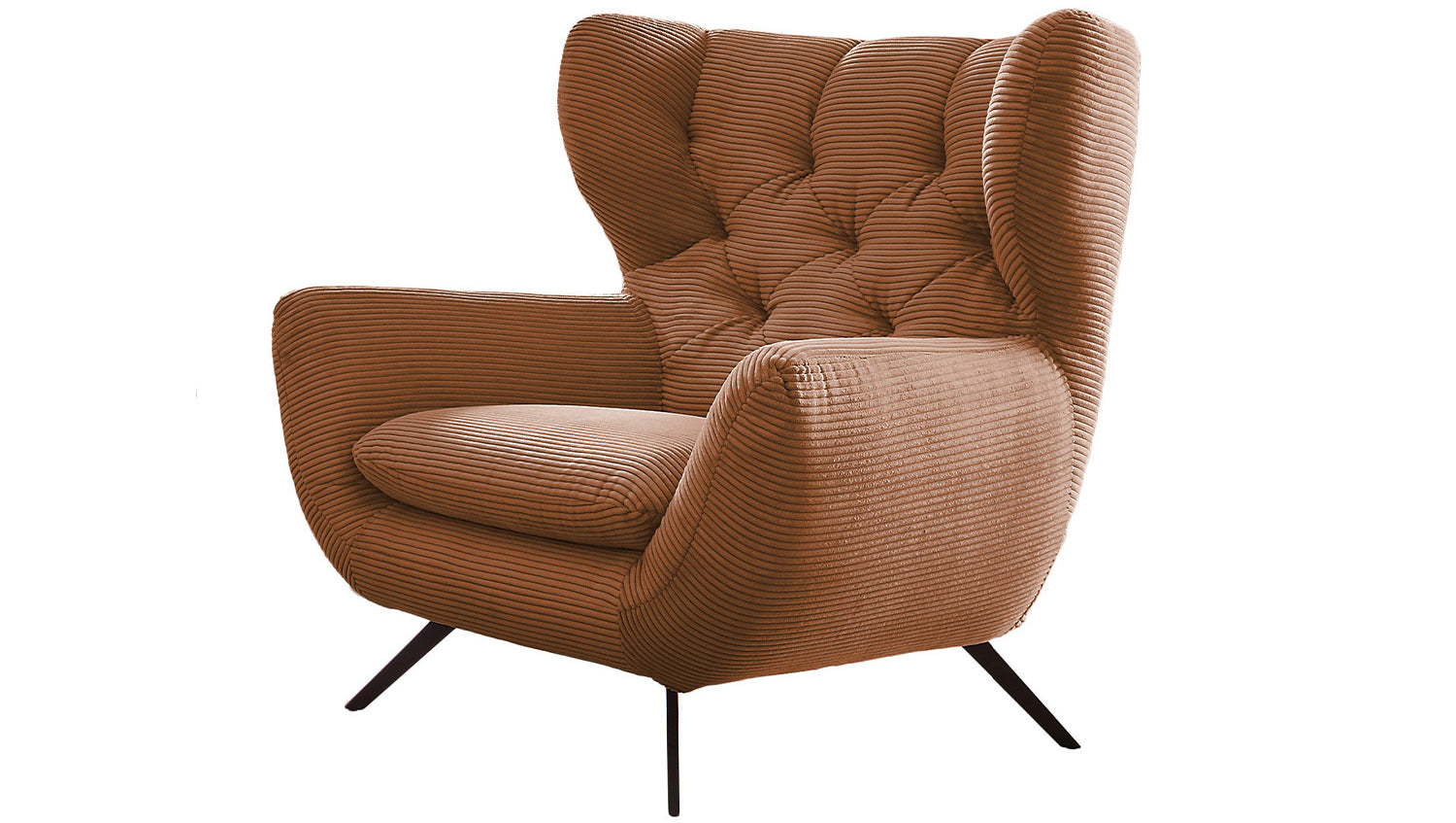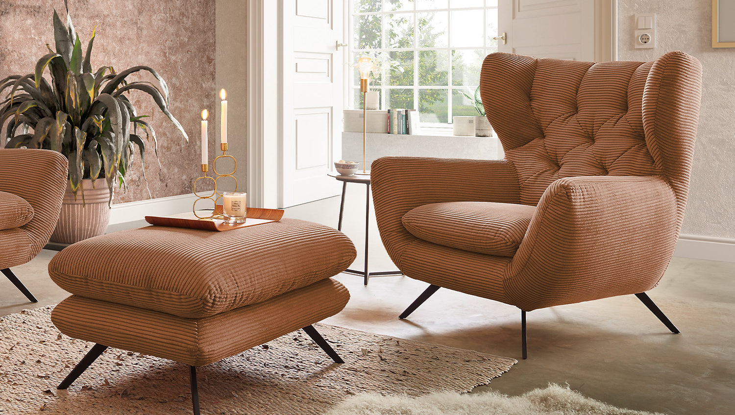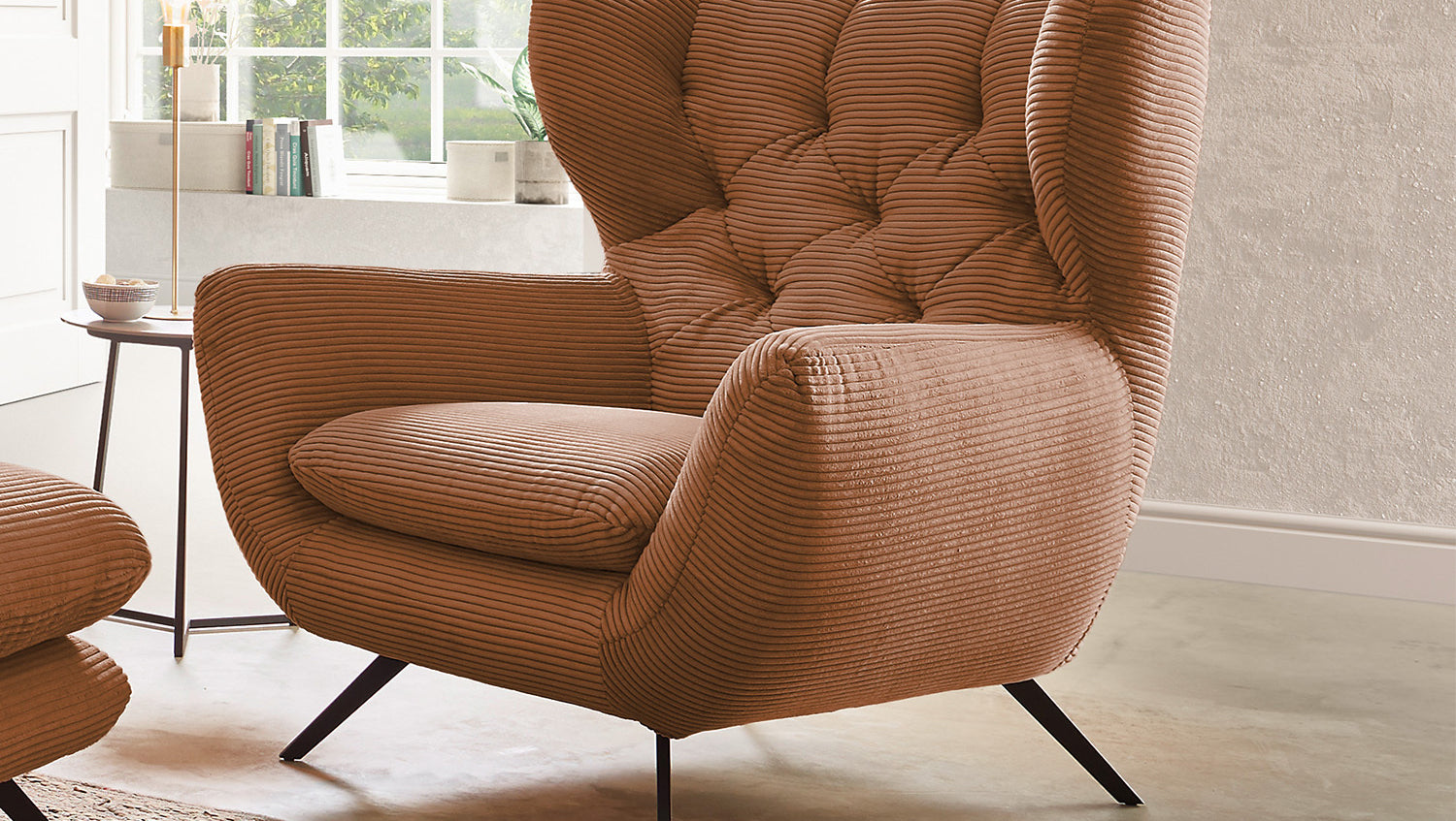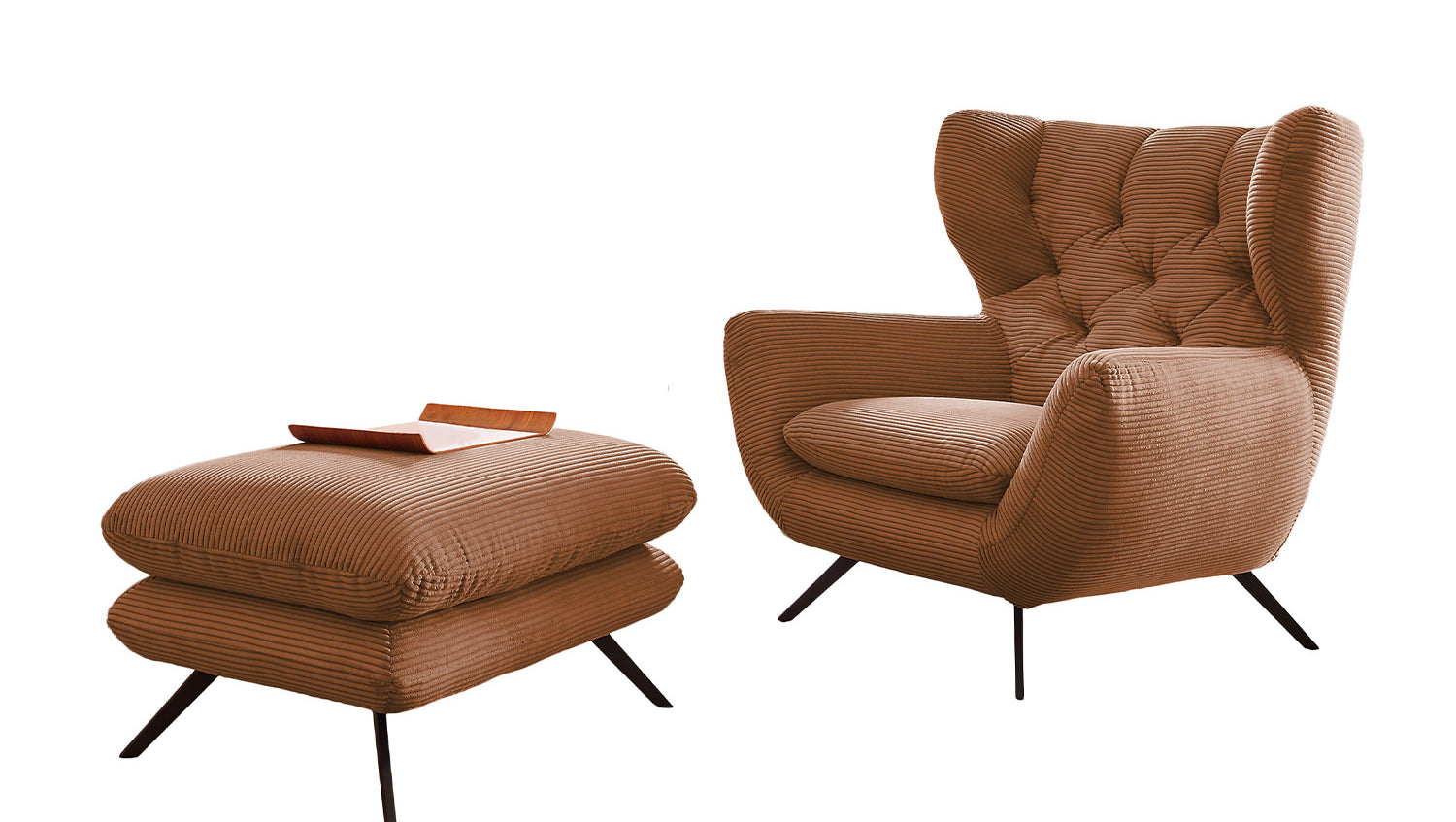El sillón CHARME de KAWOLA es un sillón muy especial y pone nuevos acentos en el salón como auténtica pieza de diseño. El estilo del sillón CHARME recuerda a los años 60: el respaldo está cosido de forma elaborada sin botones; el respaldo está ligeramente curvado hacia delante en ambos lados y recuerda la forma de un sillón de orejas; los pies de metal con recubrimiento de polvo están ligeramente acampanados. A juego con la forma inusual del sillón CHARME, se ha optado por una funda de pana de aspecto ligeramente aterciopelado. El tapizado del sillón CHARME de KAWOLA es de espuma PUR y convence por su suave y desenfadado confort de asiento. Ni que decir tiene que el sillón está completamente revestido con la tela de pana, por lo que este estupendo sillón también puede colocarse en cualquier lugar de la habitación. Si no busca simplemente un sillón, sino un punto culminante muy especial, ¡el sillón KAWOLA CHARME es la elección perfecta!