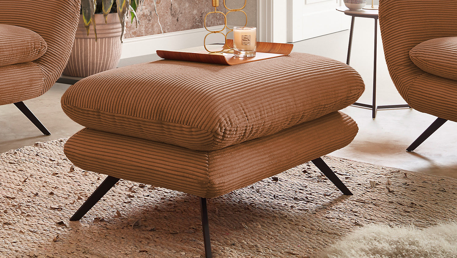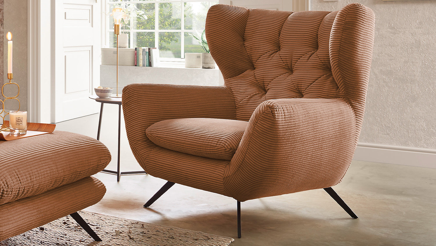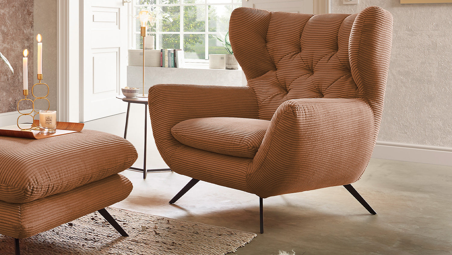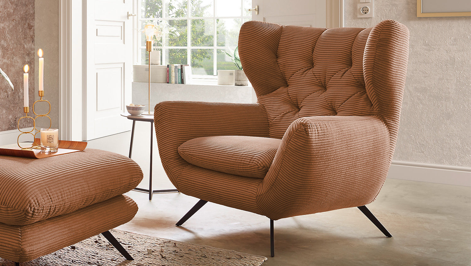 El sillón CHARME de KAWOLA es un sillón muy especial y pone nuevos acentos en el salón como auténtica pieza de diseño. El estilo del sillón CHARME recuerda a los años 60: el respaldo está cosido de forma elaborada sin botones; el respaldo está ligeramente curvado hacia delante en ambos lados y recuerda la forma de un sillón de orejas; los pies de metal con recubrimiento de polvo están ligeramente acampanados. A juego con la forma inusual del sillón CHARME, se ha optado por una funda de pana de aspecto ligeramente aterciopelado. El tapizado del sillón CHARME de KAWOLA es de espuma PUR y convence por su suave y desenfadado confort de asiento. Ni que decir tiene que el sillón está completamente revestido con la tela de pana, por lo que este estupendo sillón también puede colocarse en cualquier lugar de la habitación. Si no busca simplemente un sillón, sino un punto culminante muy especial, ¡el sillón KAWOLA CHARME es la elección perfecta!