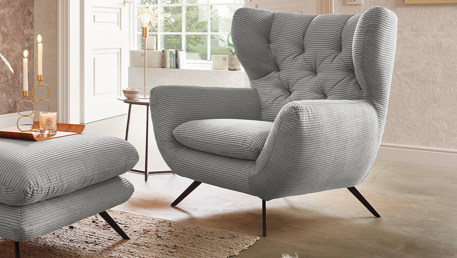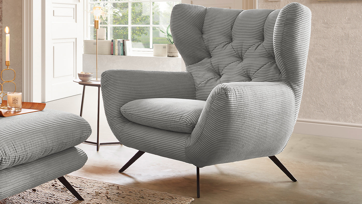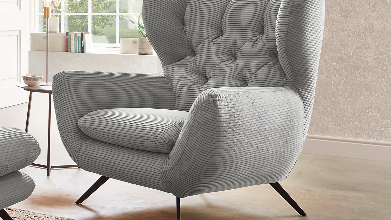 KAWOLA sillón CHARME sillón de respaldo alto pana gris claro