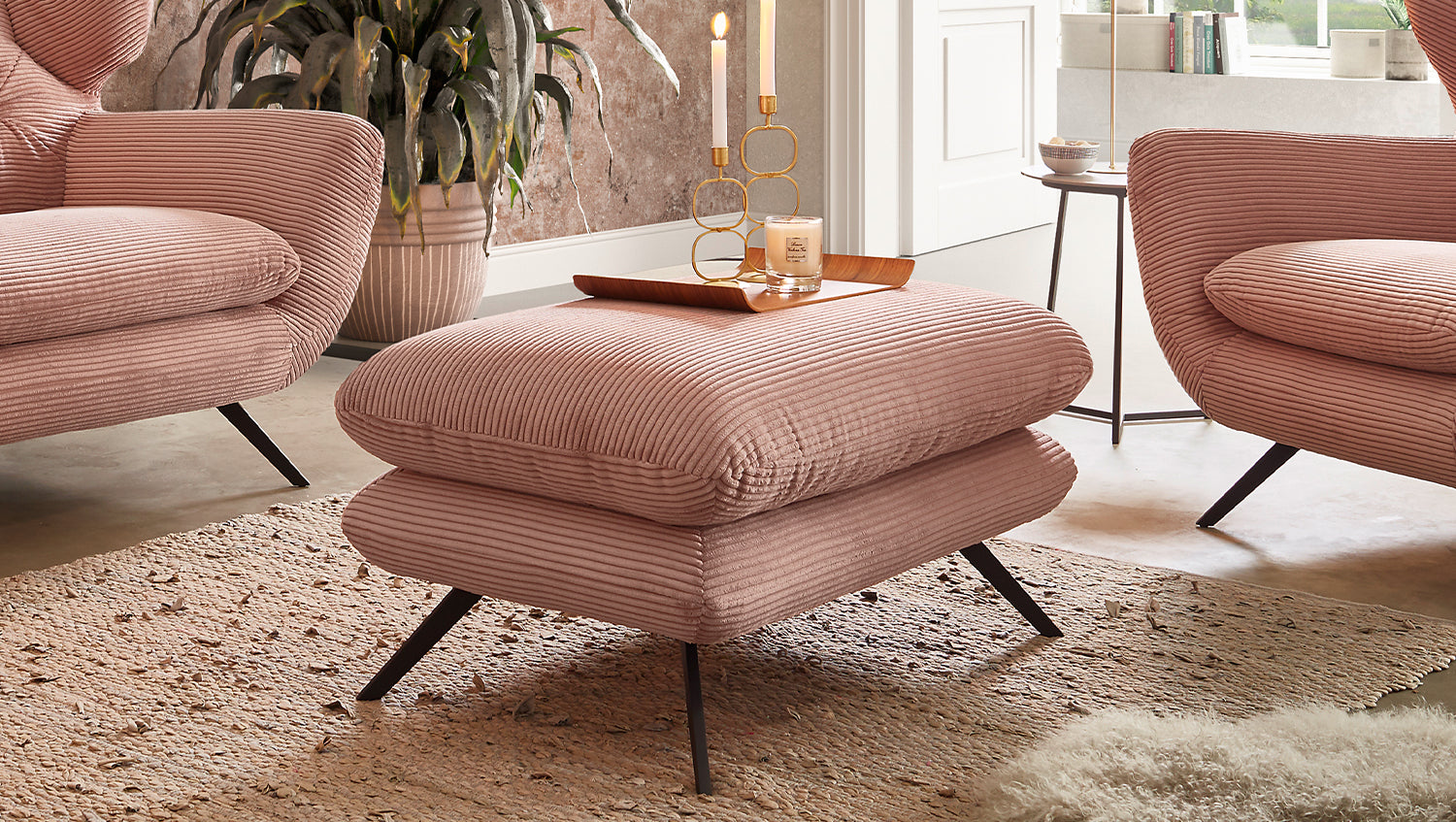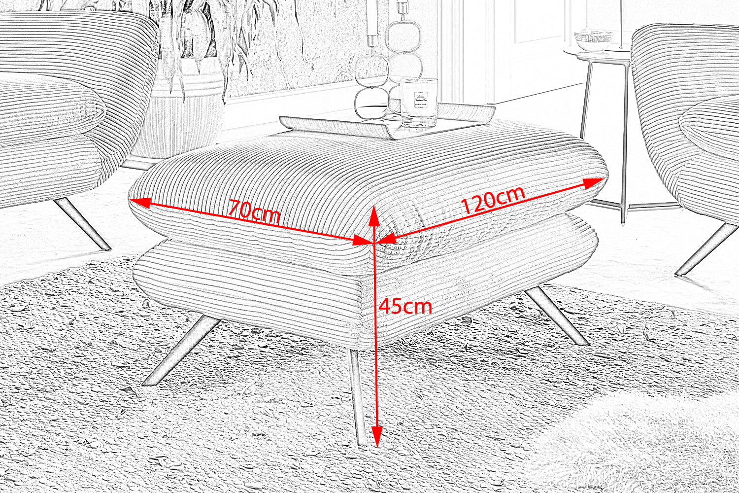 El taburete CHARME de KAWOLA es un banco taburete muy especial y pone nuevos acentos en el salón como auténtica pieza de diseño. El estilo del taburete CHARME recuerda a los años sesenta: en este caso se ha optado por el revestimiento de pana a juego con la forma inusual. Los pies de metal negro están ligeramente acampanados. El acolchado del banco taburete CHARME es de espuma PUR e impresiona por su comodidad de asiento suave y desenfadada. Naturalmente, el banco taburete está completamente revestido con la tela de pana, de modo que también puede colocarse en cualquier lugar de la habitación. Si no busca un simple taburete, sino un punto de atracción muy especial, ¡el banco taburete CHARME de KAWOLA es la elección perfecta!
