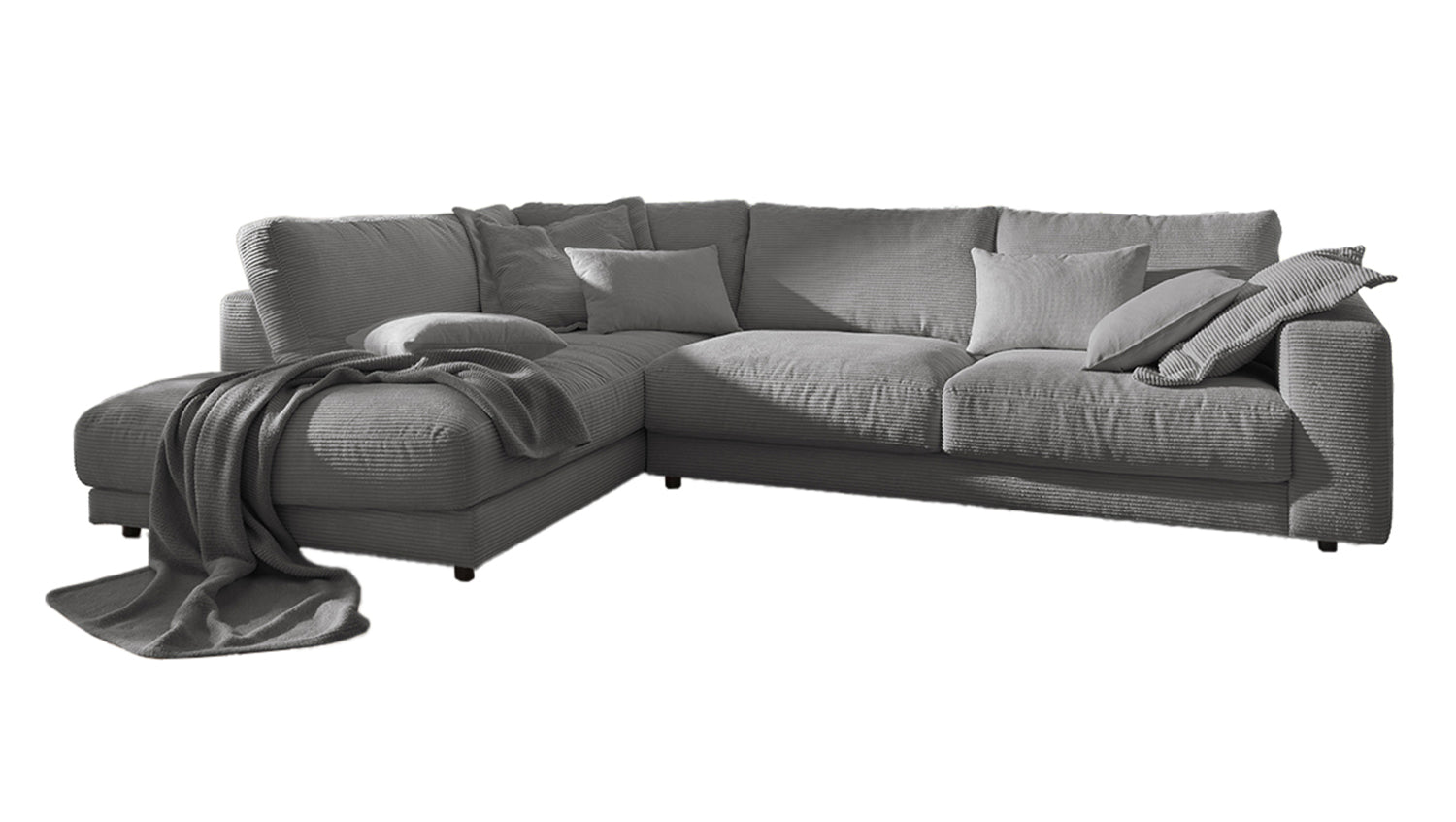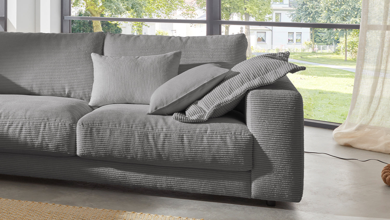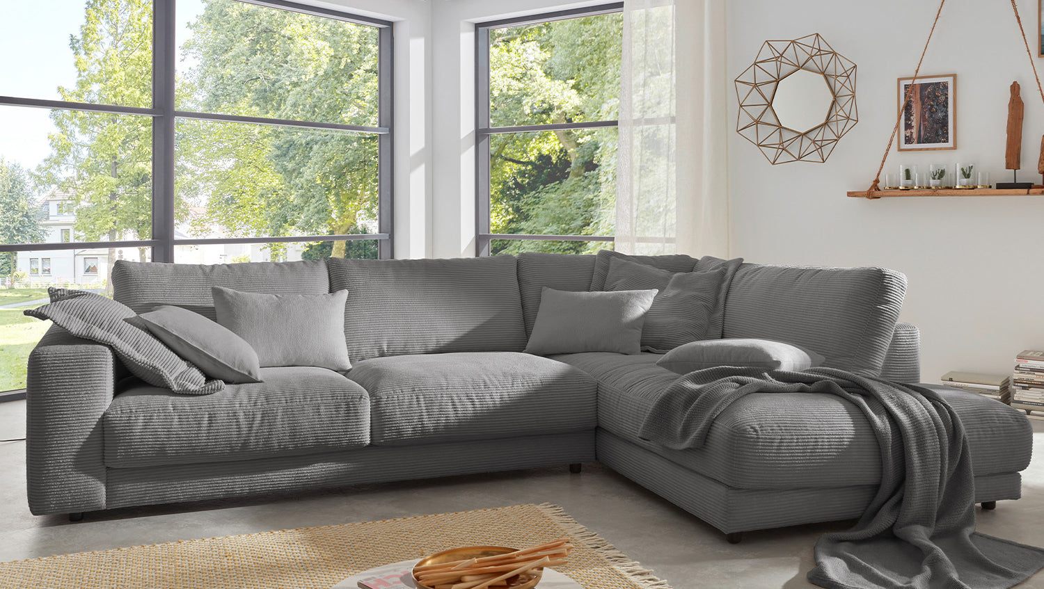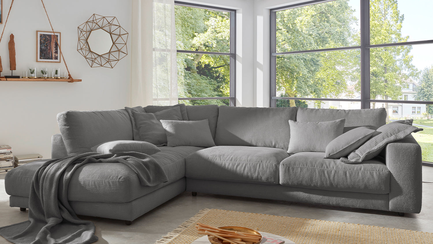 KAWOLA Sofá de esquina MADELINE Pana gris