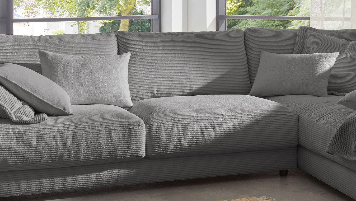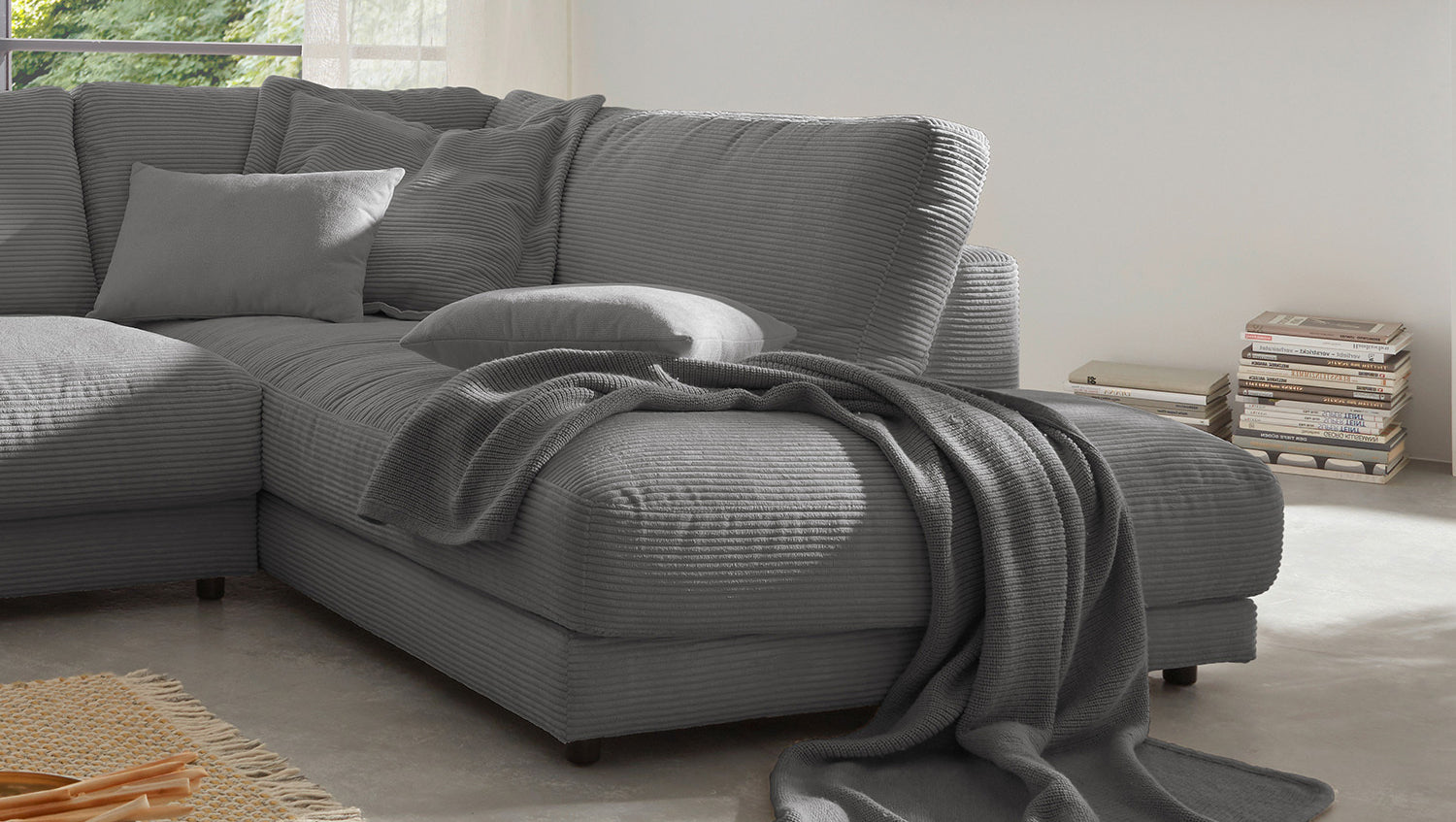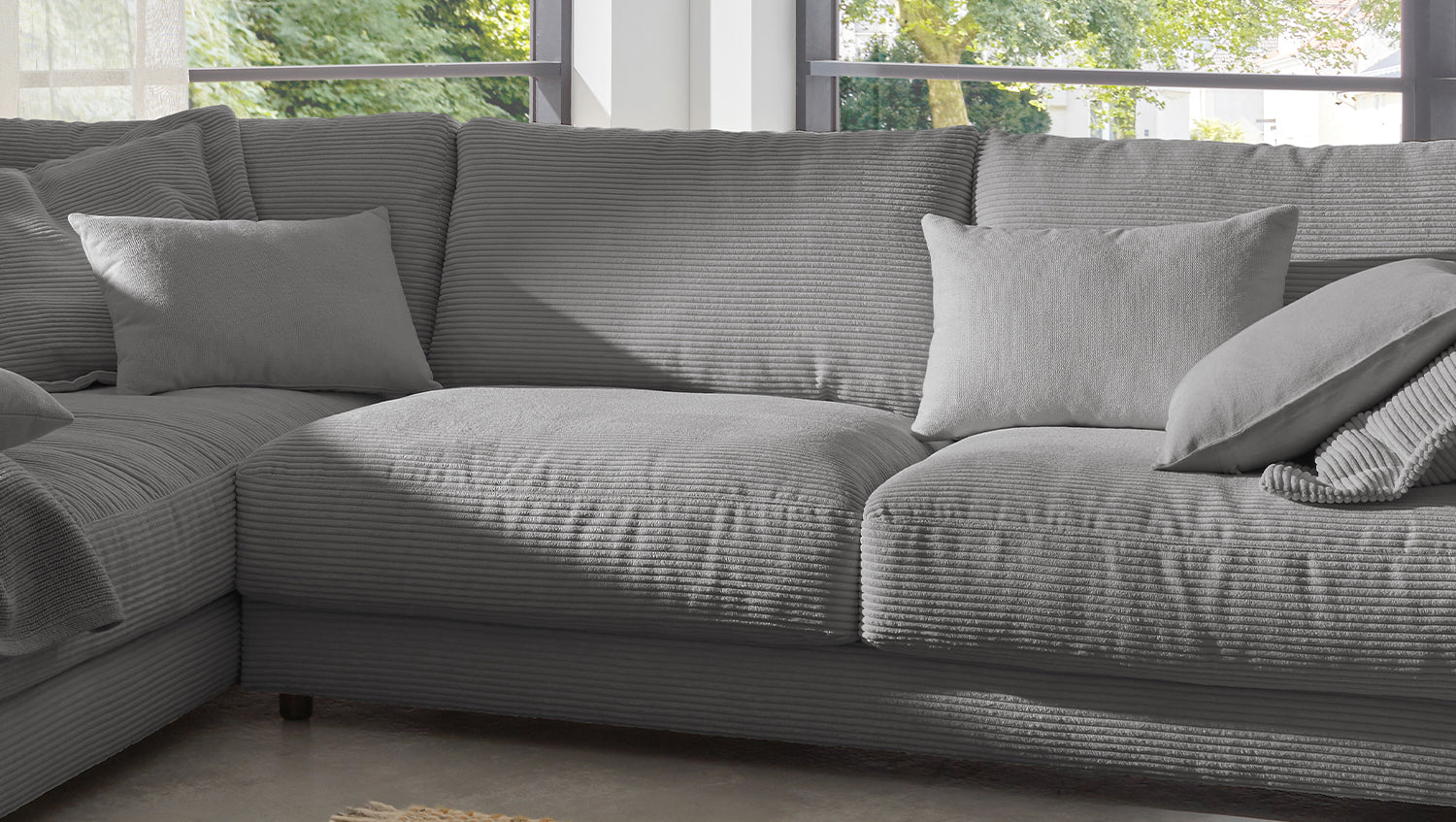 KAWOLA Sofá de esquina MADELINE Pana gris