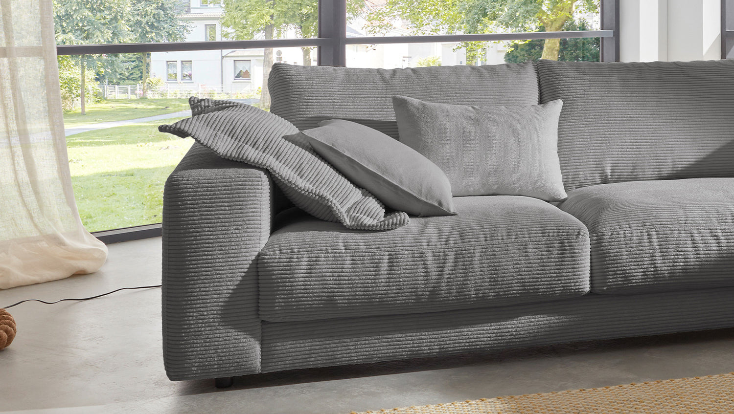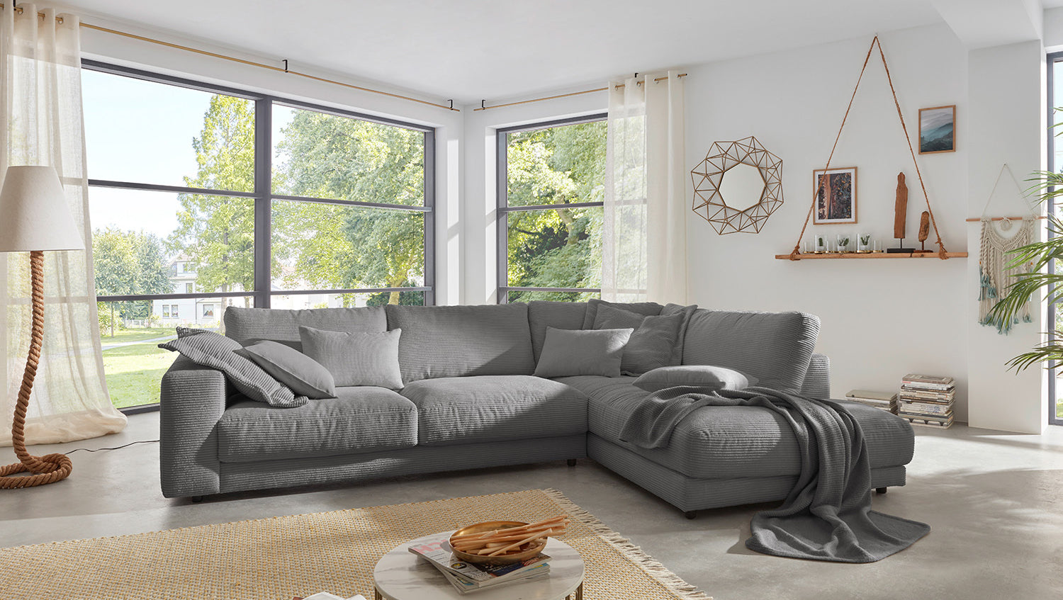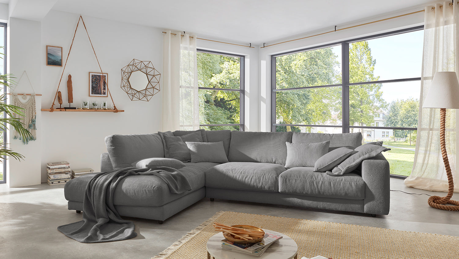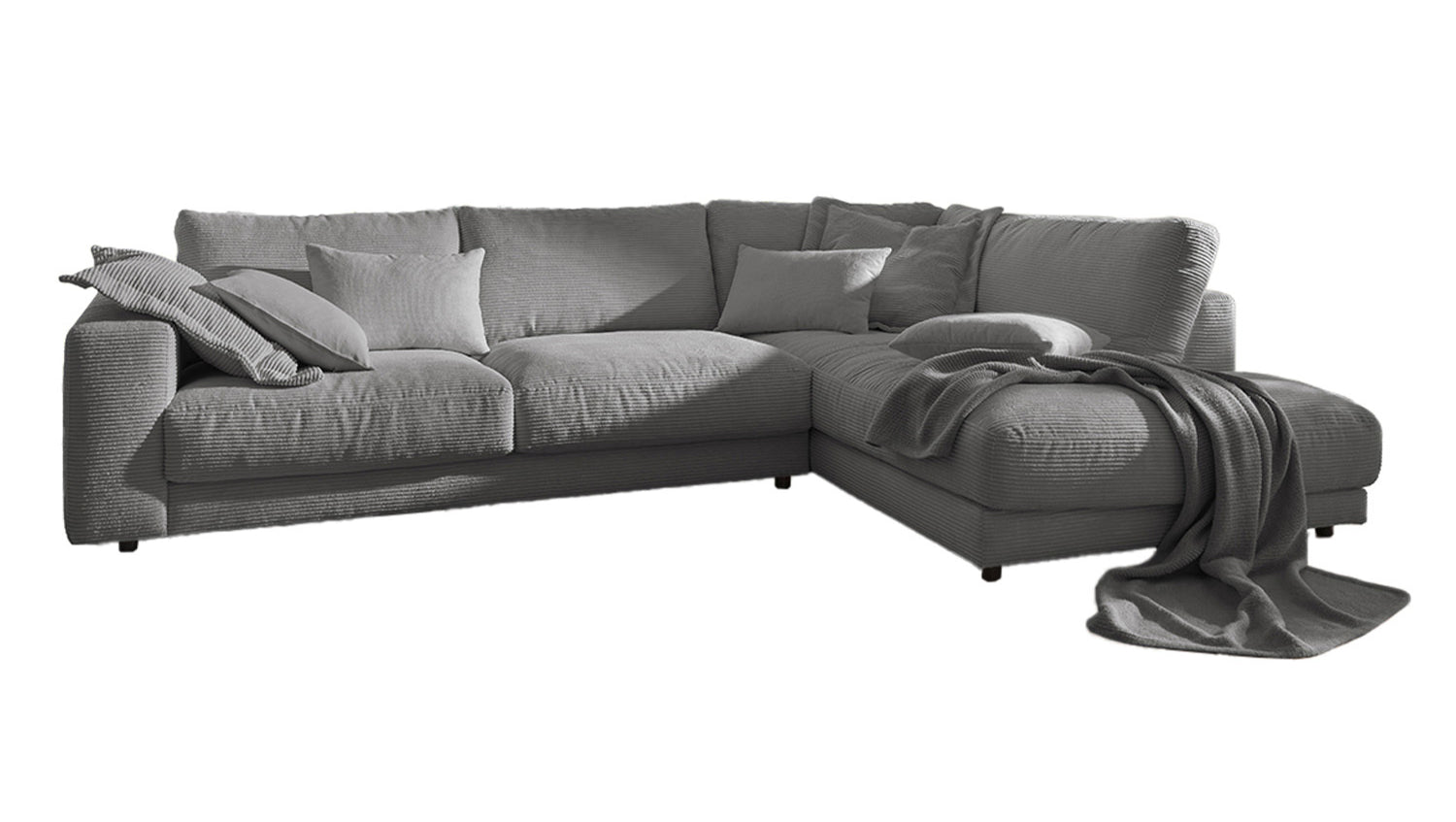 KAWOLA Sofá de esquina MADELINE Pana gris