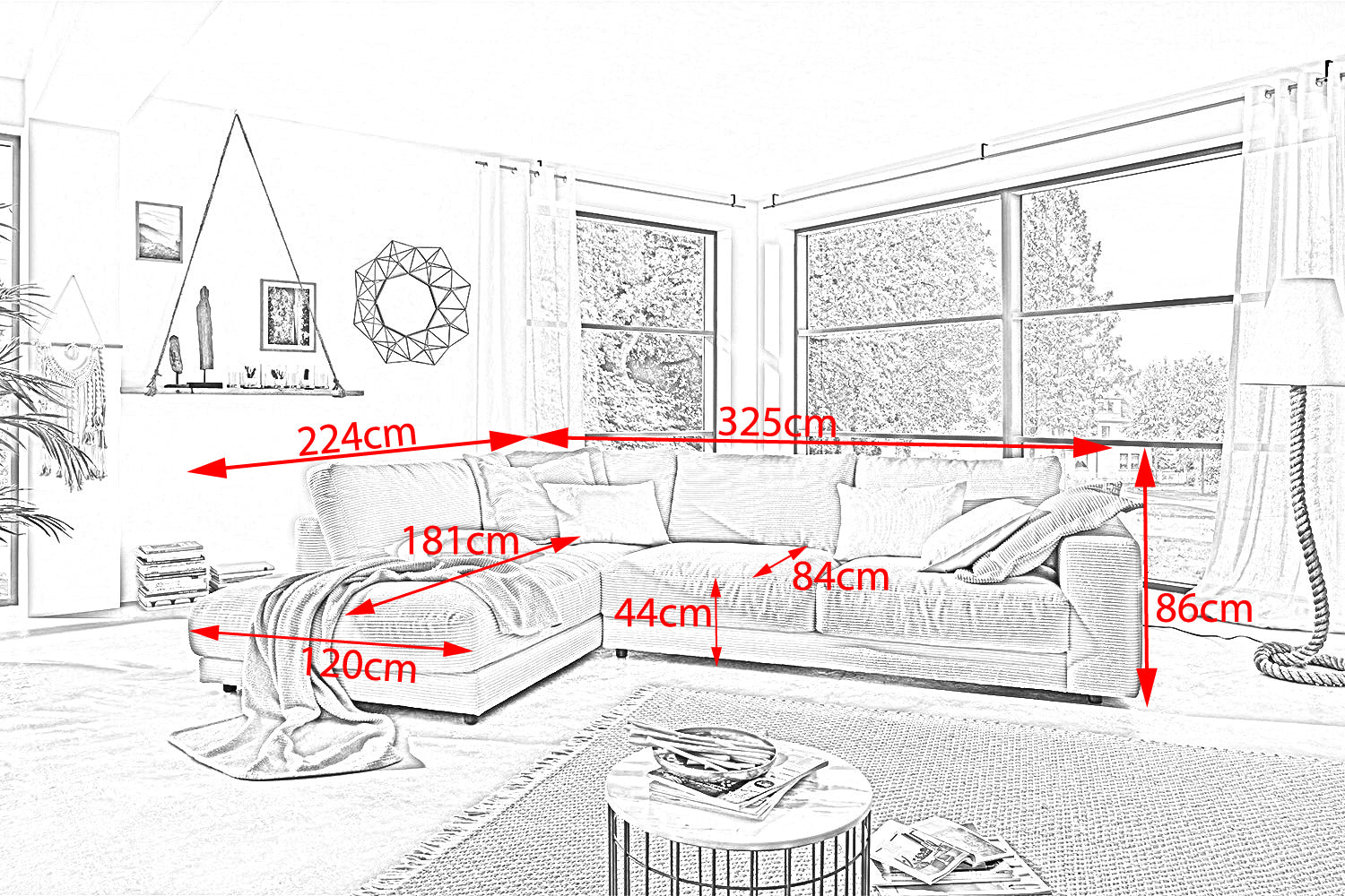 El sofá esquinero MADELINE de KAWOLA impresiona por su extraordinaria comodidad de asiento, que se debe a la tapicería extremadamente desenfadada e invita a quedarse y relajarse. El tapizado se adapta a la forma del cuerpo; las impresiones del asiento y las ondulaciones de las fundas son típicas del producto. El asiento consta de una base de muelles con muelles ondulados de acero de elasticidad permanente y una funda superior, así como cojines de asiento sueltos de espuma de poliuretano. El asiento y el respaldo están tapizados con un relleno de alta calidad que contiene una mezcla de plumas. La moderna funda de tela de pana confiere al Sofá extra ancho una elegancia atemporal. Si desea dar a su salón un toque extraordinario, el sofá MADELINE es sin duda la elección adecuada para usted. Instrucciones de cuidado Pana: Debe aspirar el sofá con regularidad, preferiblemente con un accesorio de cepillo suave. Utilice un producto de limpieza suave y un paño húmedo para eliminar las manchas. Utilice muy poca agua al limpiar y deje que la funda se seque completamente antes de usarla. Evite la luz solar directa para evitar que se decolore.