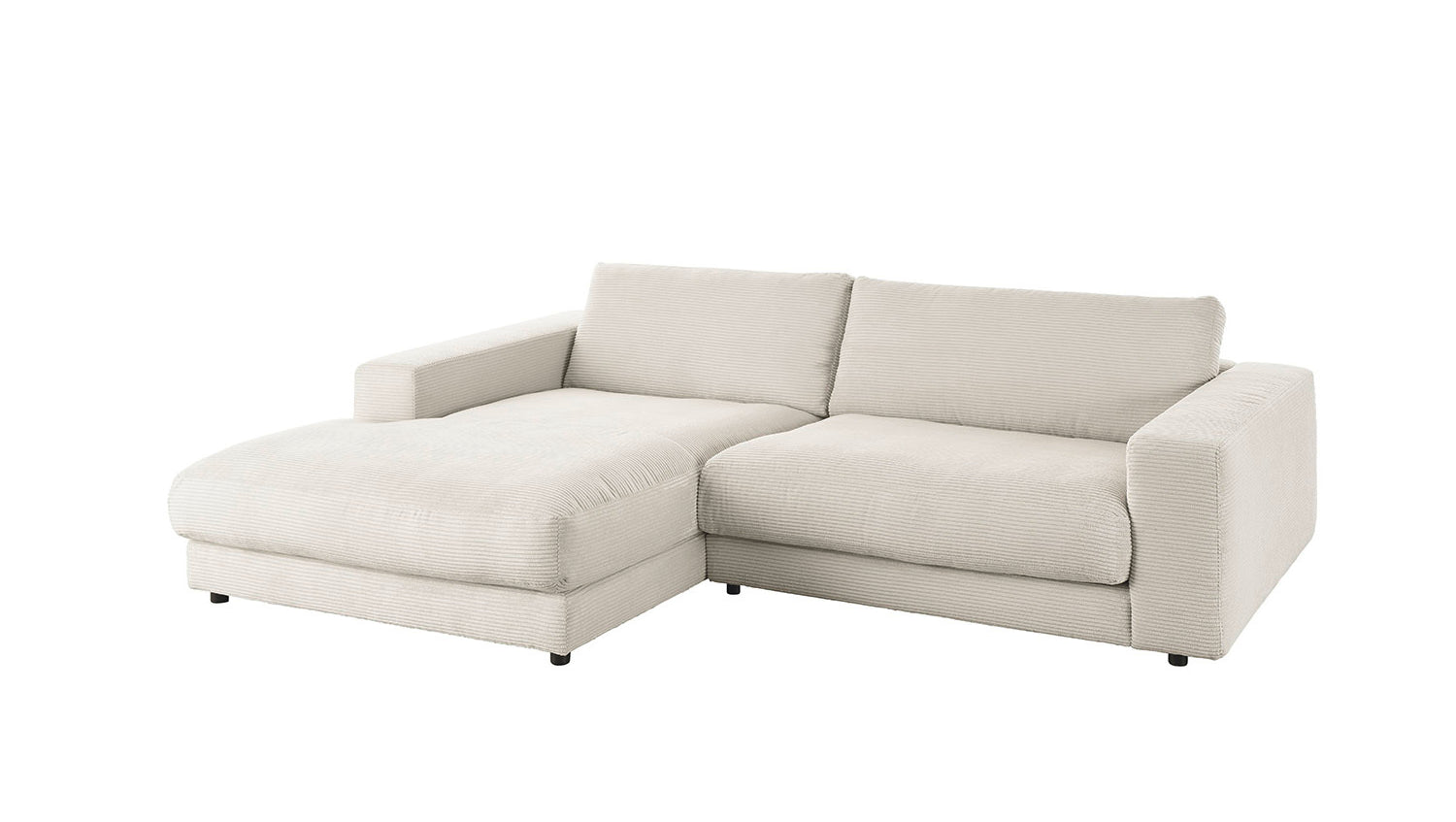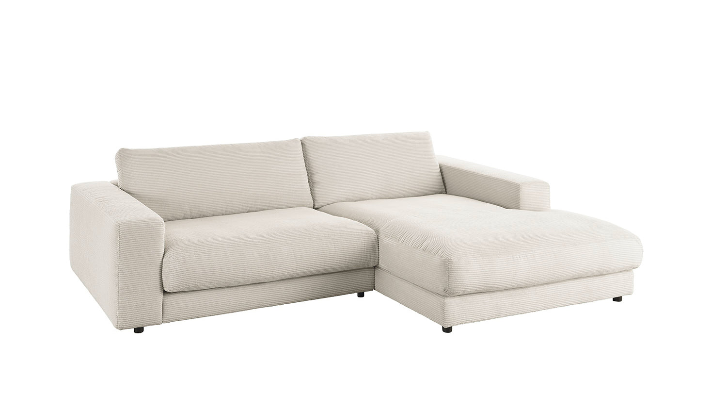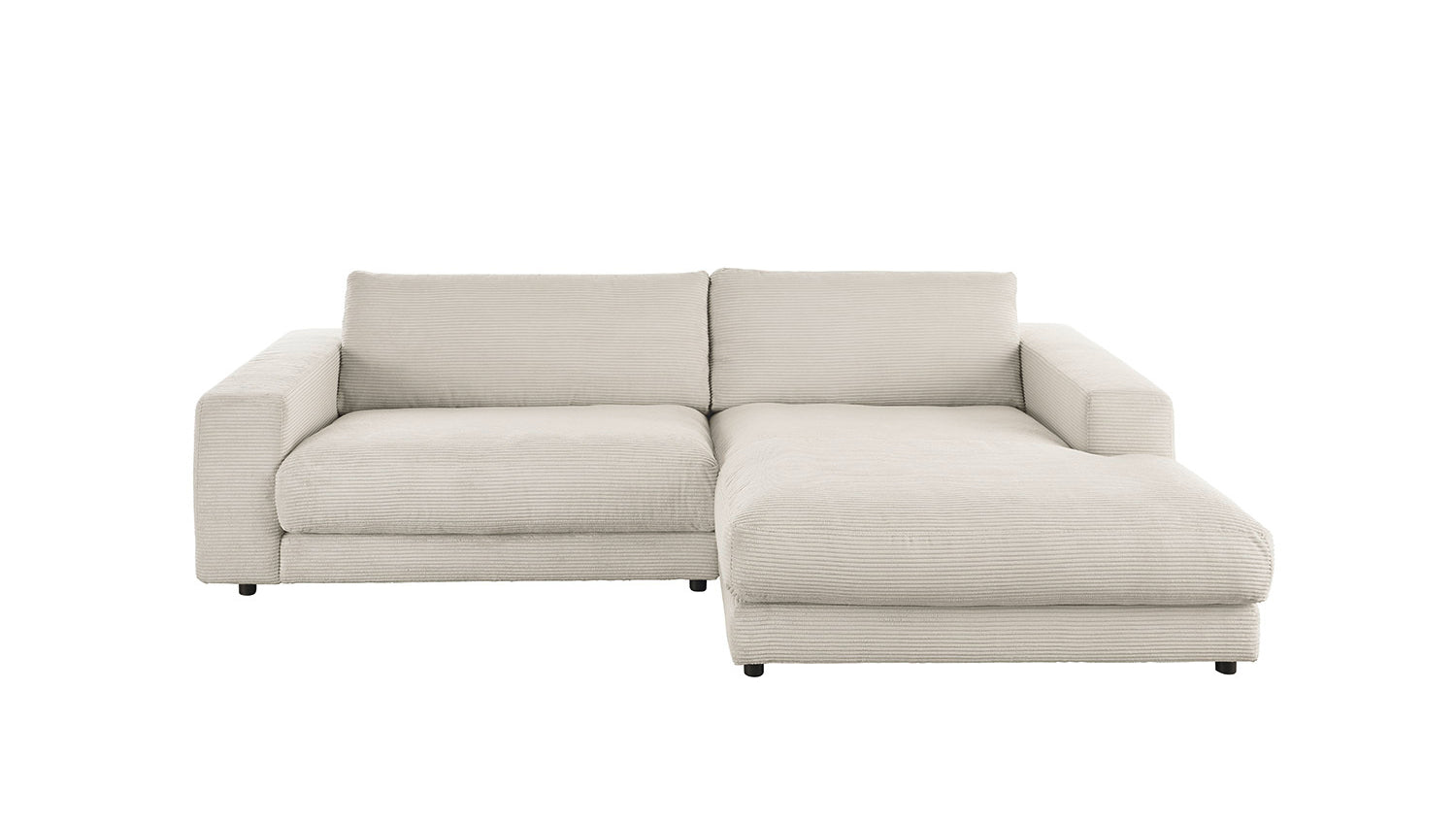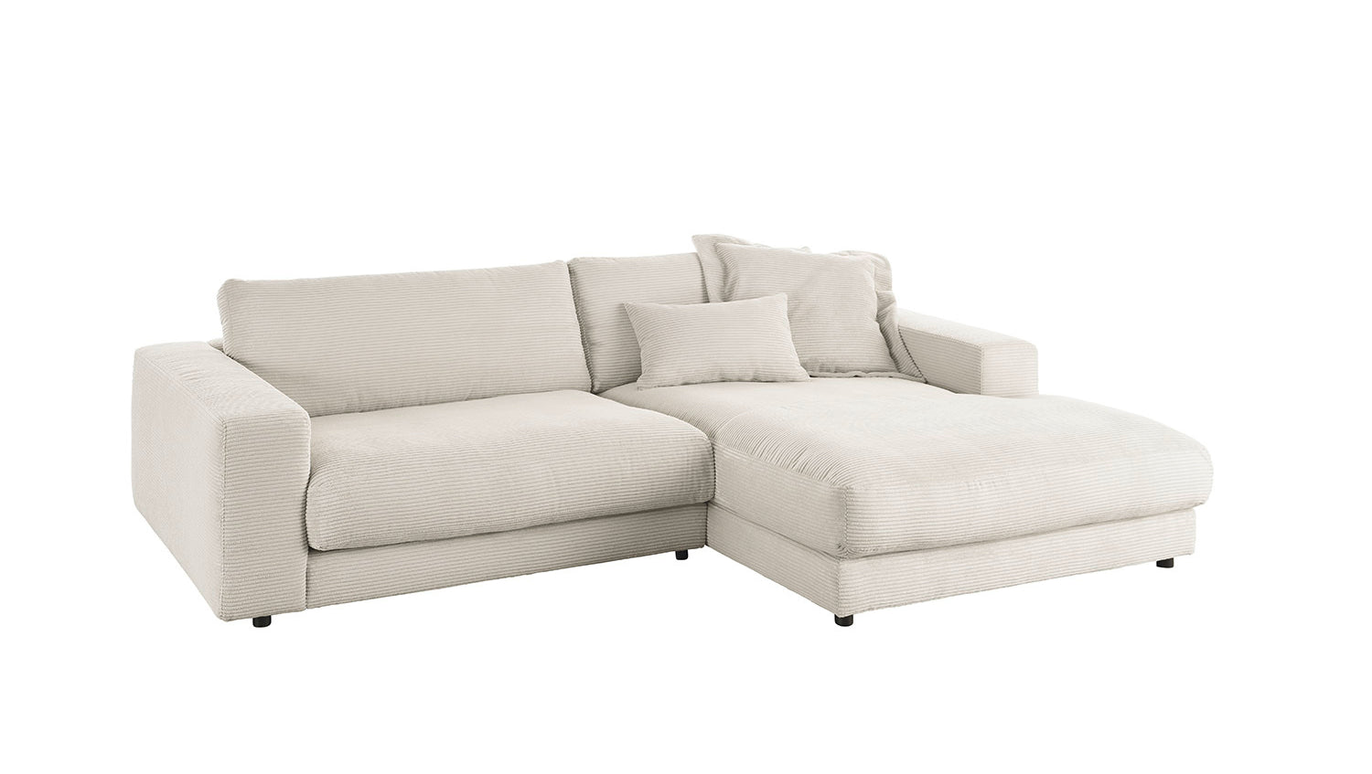 El sofá esquinero MADELINE de KAWOLA impresiona por su extraordinaria comodidad de asiento, que se debe a la tapicería extremadamente desenfadada e invita a quedarse y relajarse. Su forma moderna y urbana confiere al sofá un aspecto inconfundible y ofrece espacio suficiente para pasar veladas acogedoras. Con su diseño atemporal, se integra a la perfección en cualquier ambiente y también destaca en la habitación. Si quiere dar un toque original a su salón, el sofá MADELINE es sin duda la elección perfecta.