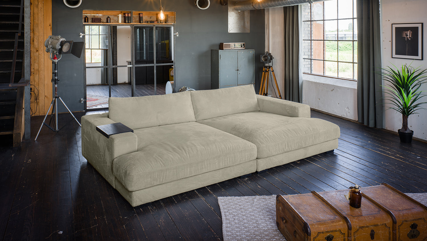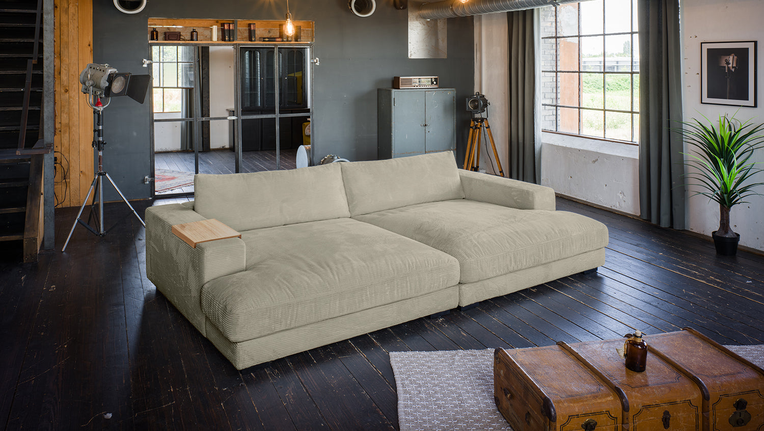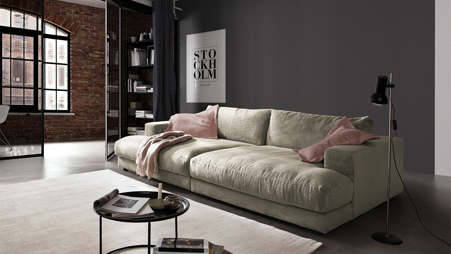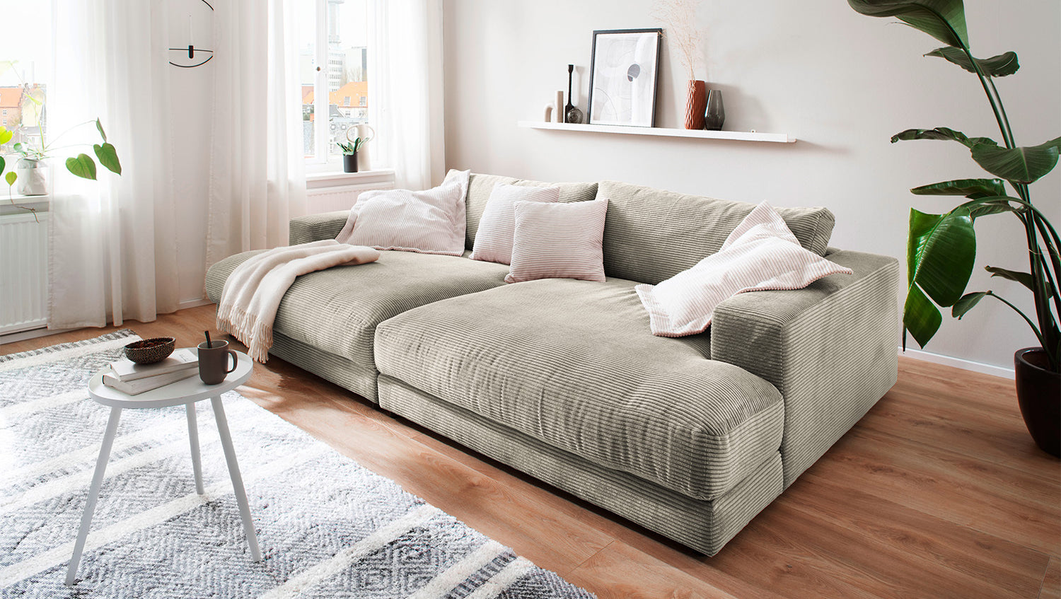 KAWOLA Sofá extra ancho MADELINE Pana gris piedra