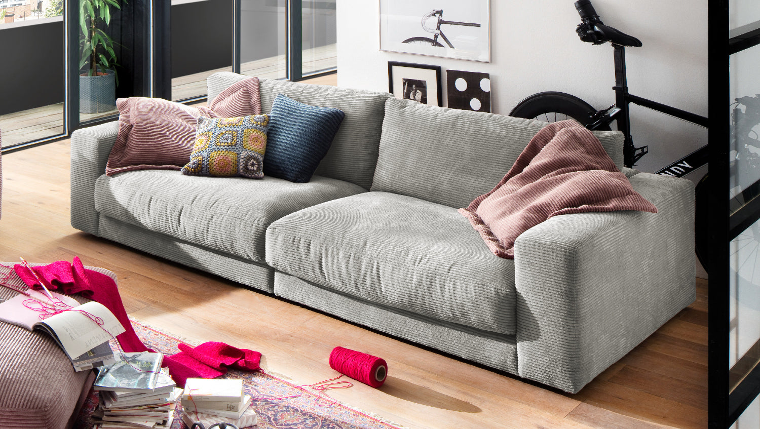 El sofá de 3 plazas MADELINE de KAWOLA impresiona por su extraordinaria comodidad de asiento, que se debe a la tapicería extremadamente desenfadada e invita a quedarse y relajarse. Su forma moderna y urbana confiere al sofá un aspecto inconfundible y ofrece espacio suficiente para pasar veladas acogedoras. Con su diseño atemporal, se integra a la perfección en cualquier ambiente y también destaca de pie en la habitación. Si quiere dar un toque original a su salón, el sofá MADELINE es sin duda la elección perfecta.