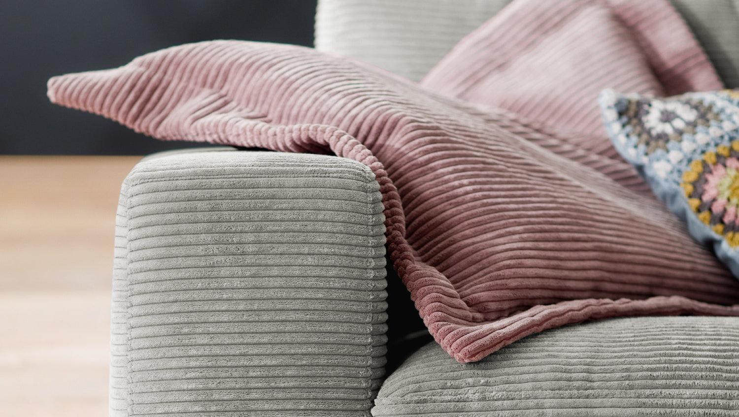 KAWOLA Sofá MADELINE 3 plazas pana gris claro