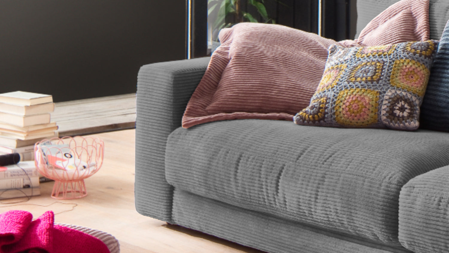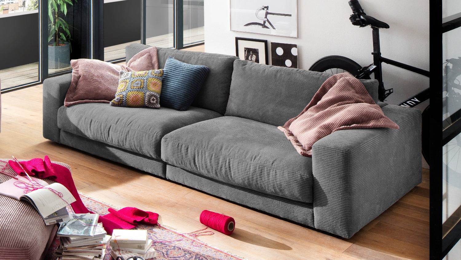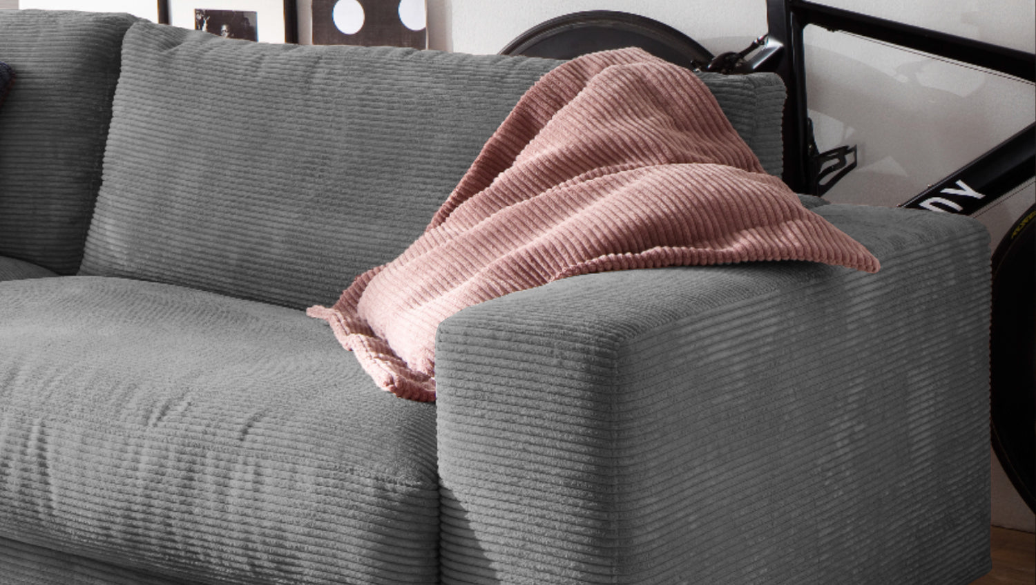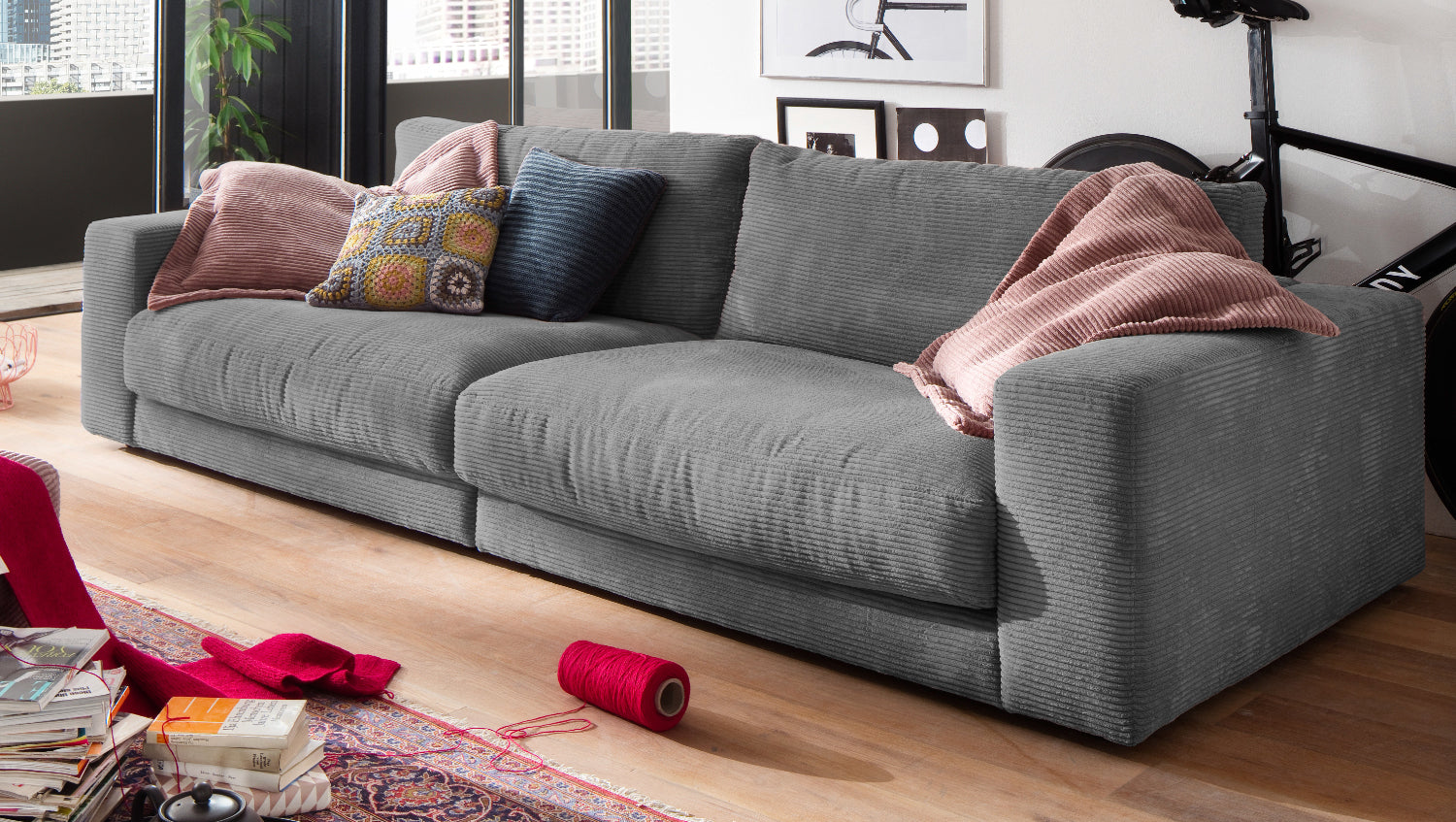 KAWOLA Sofá MADELINE 3 plazas Gris pana