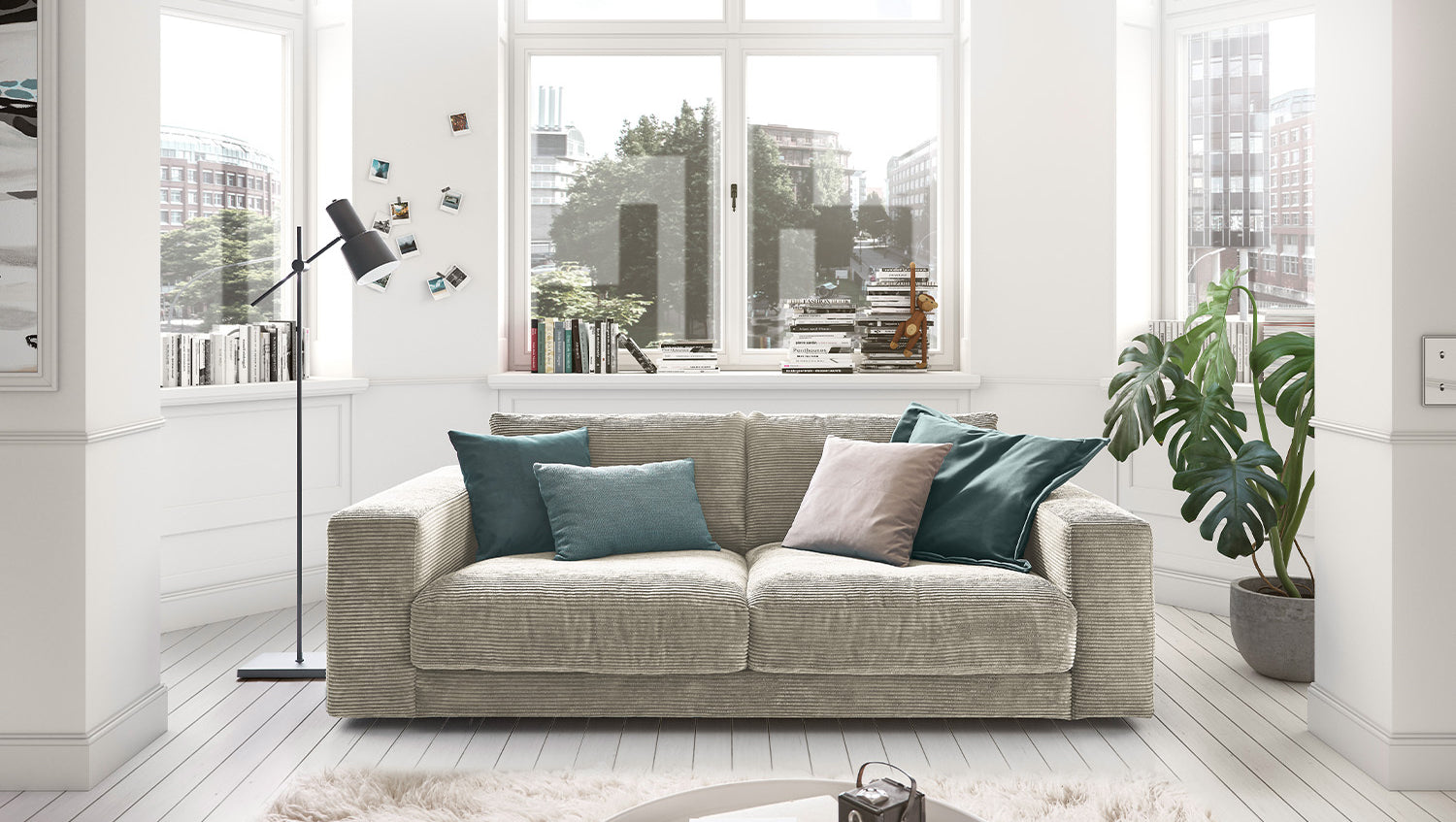 KAWOLA Sofá MADELINE 2 plazas pana gris piedra
