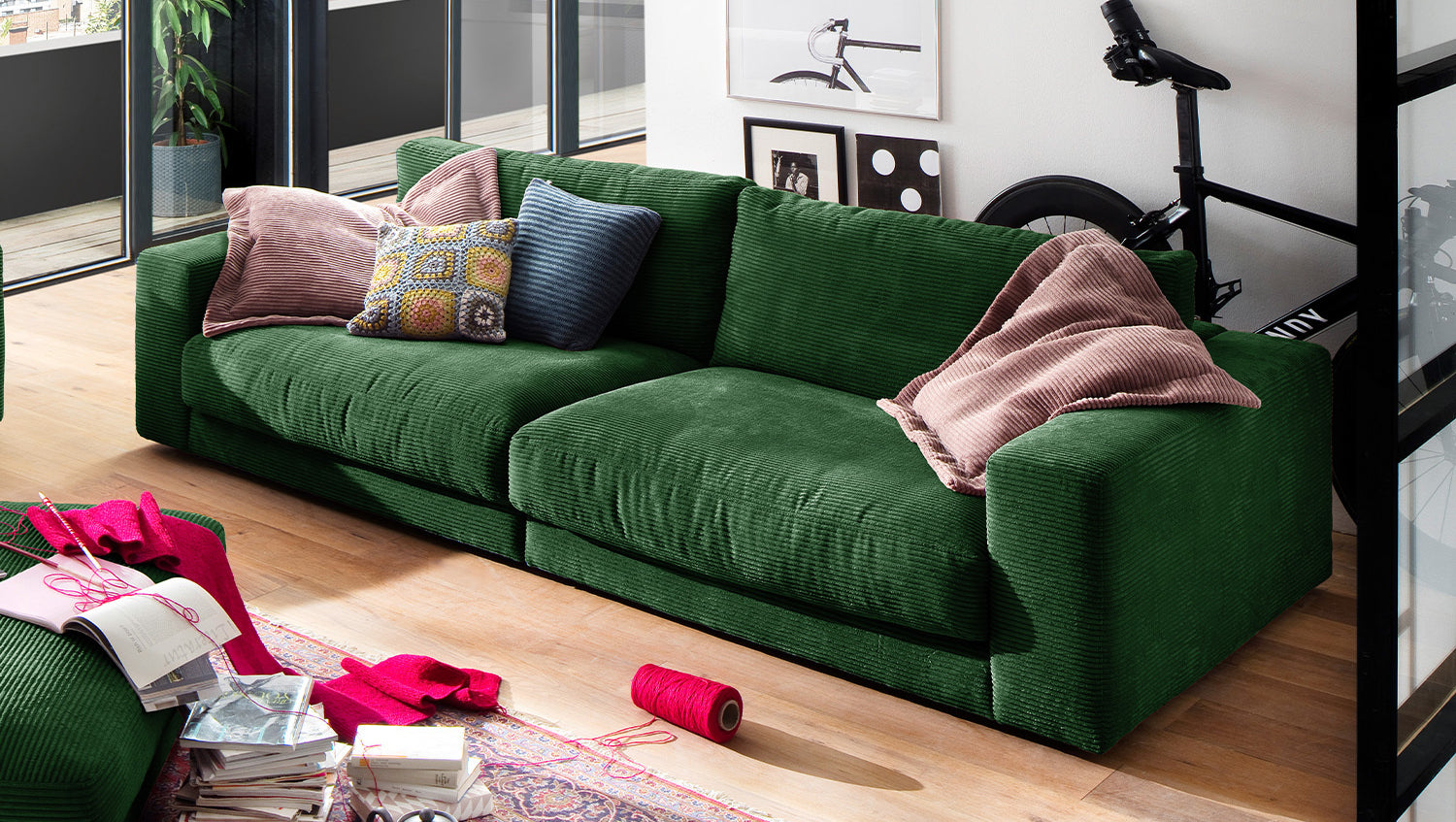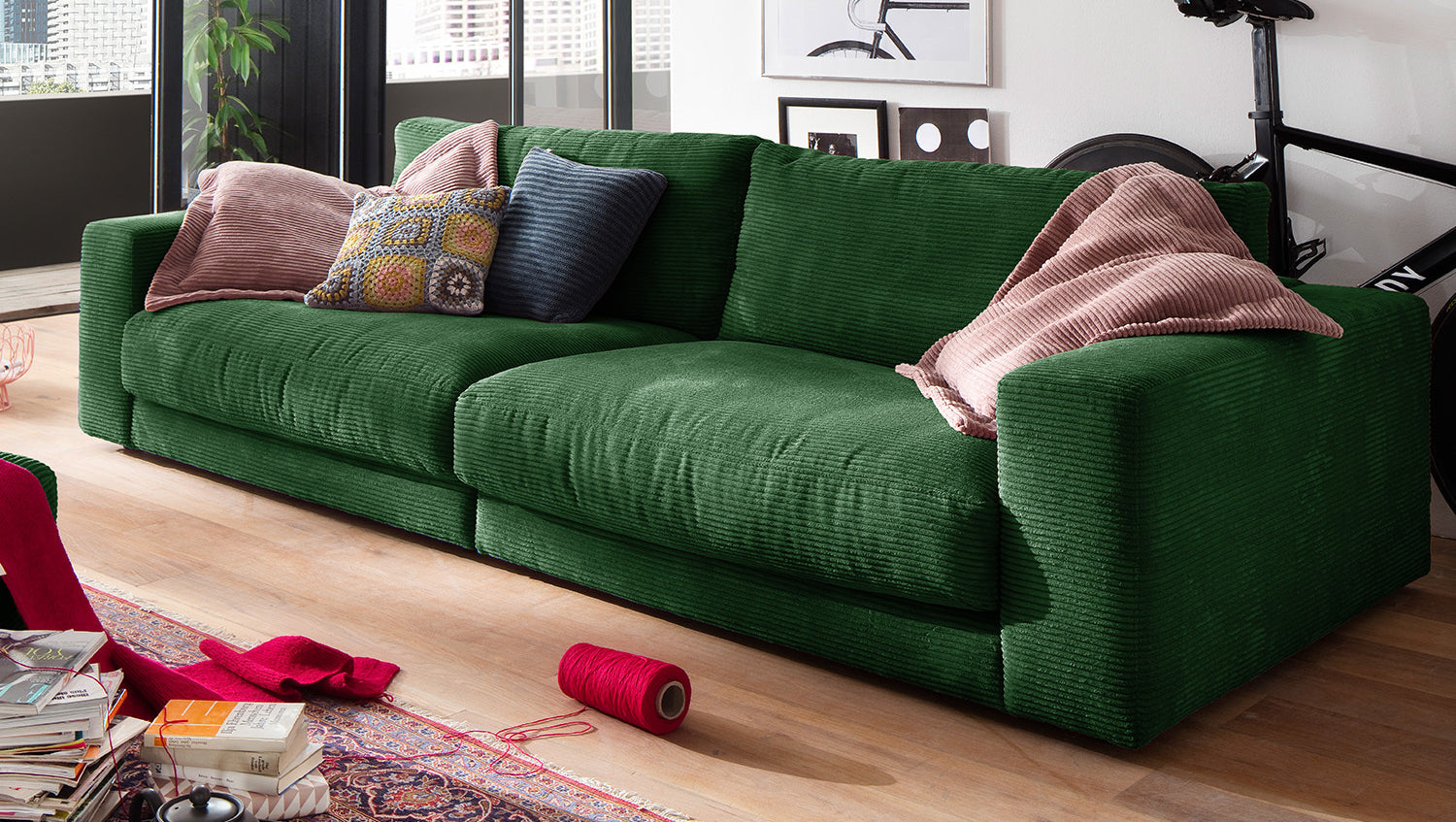 KAWOLA Sofá MADELINE 3 plazas Pana esmeralda