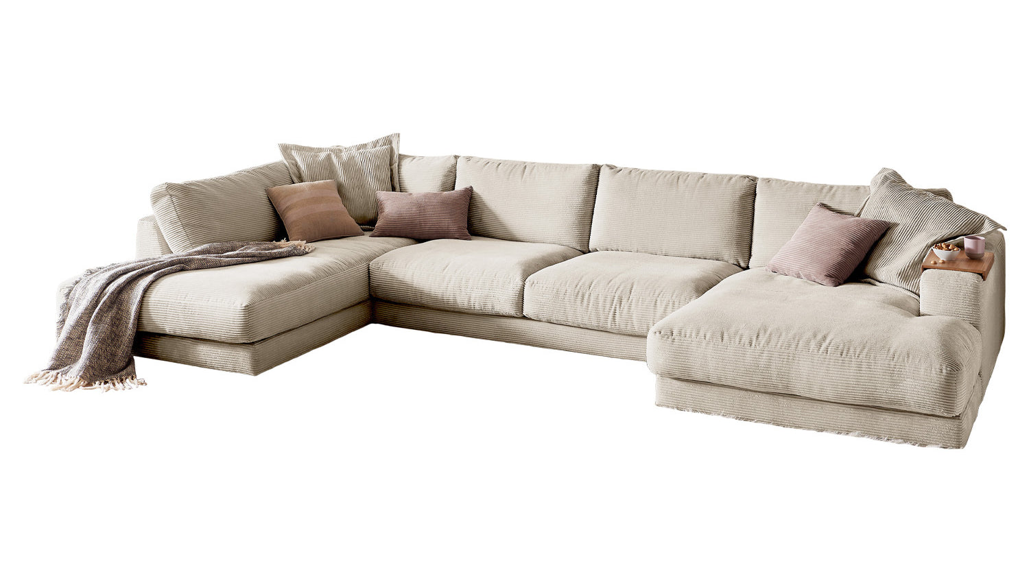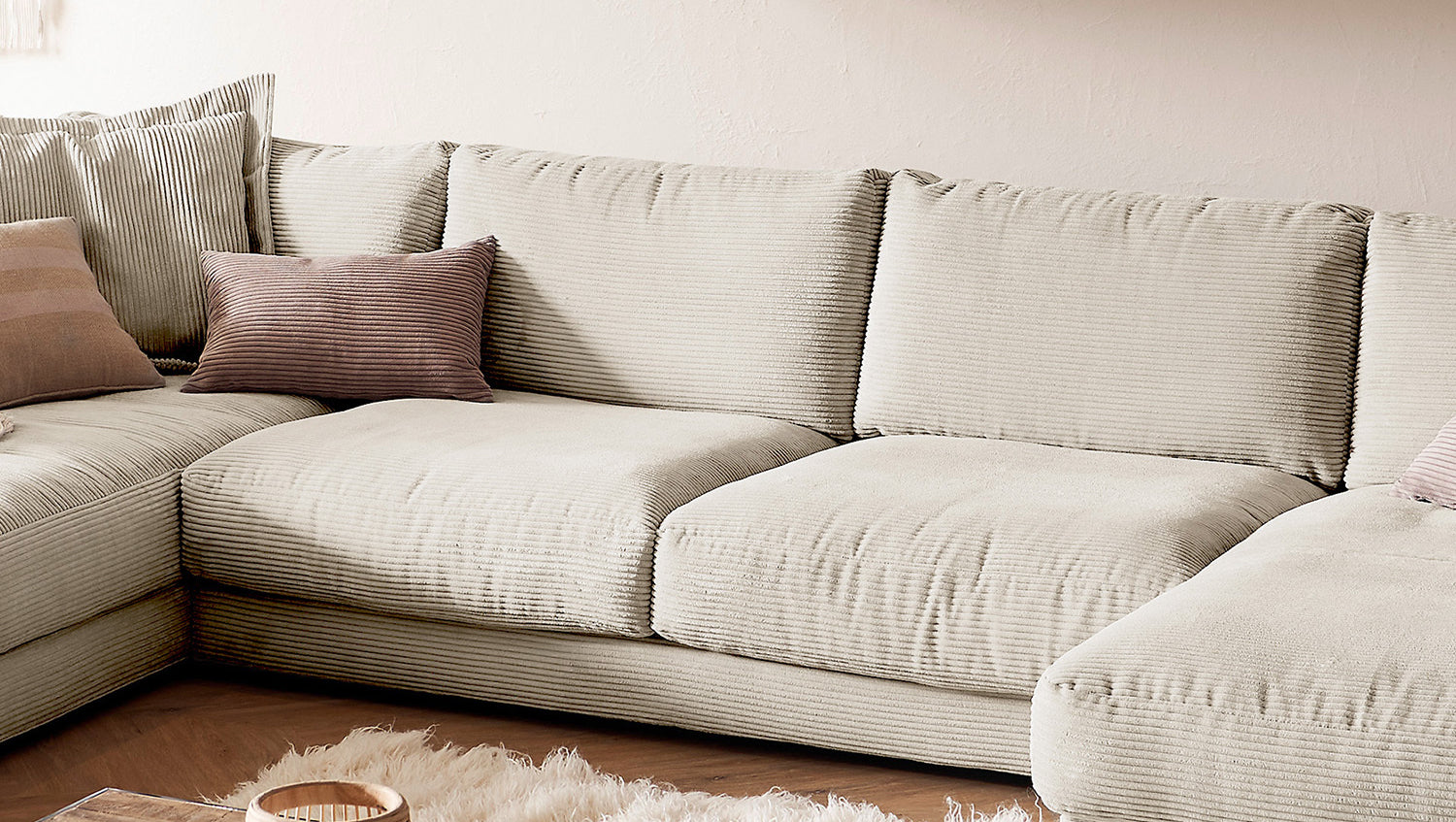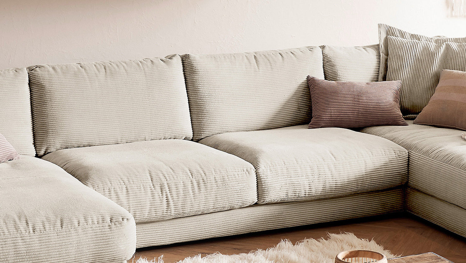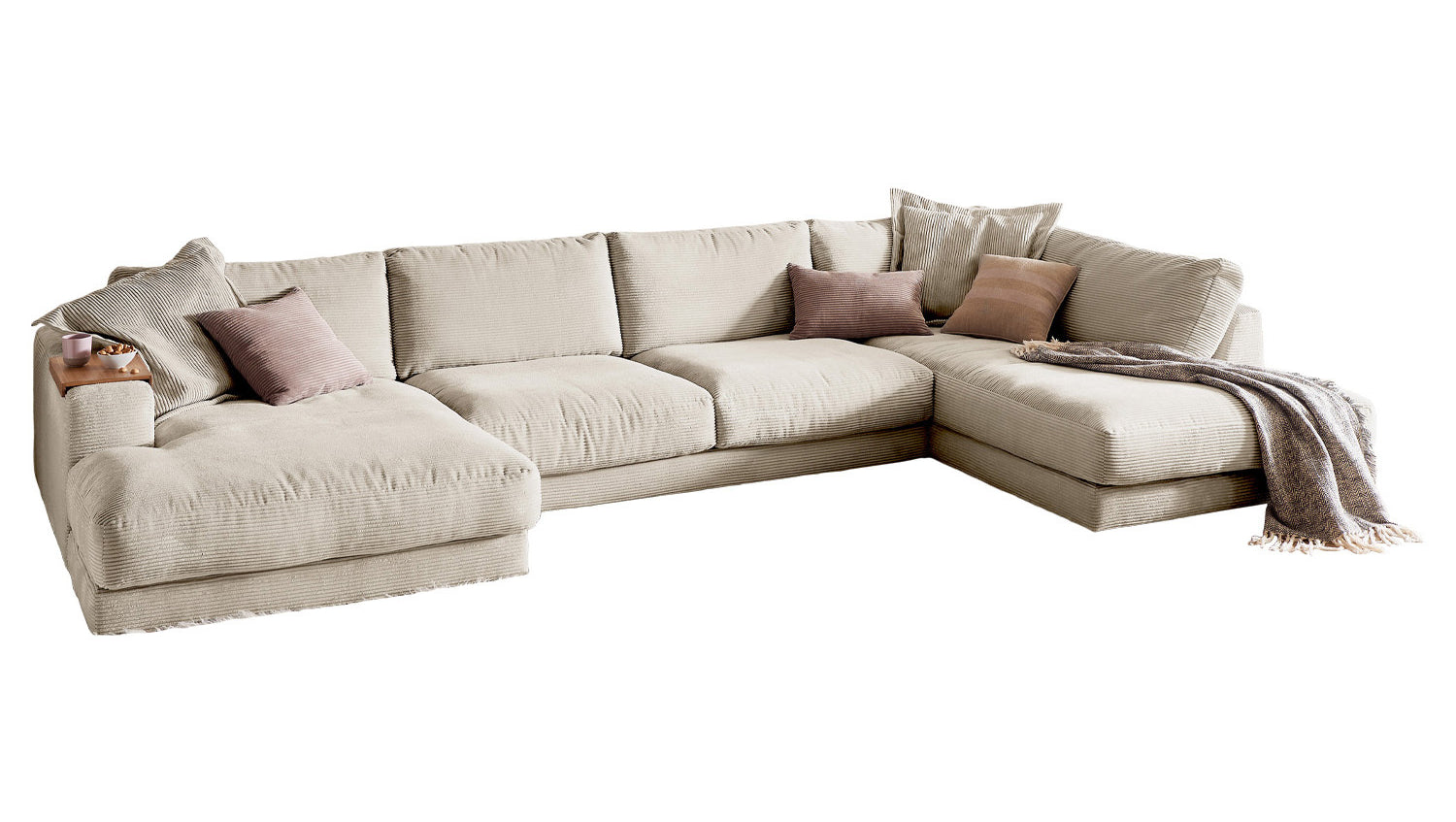 KAWOLA Sofá en forma de U MADELINE Pana crema blanco