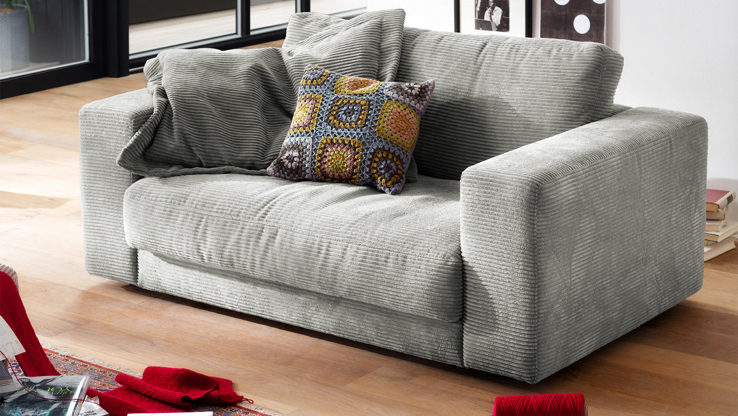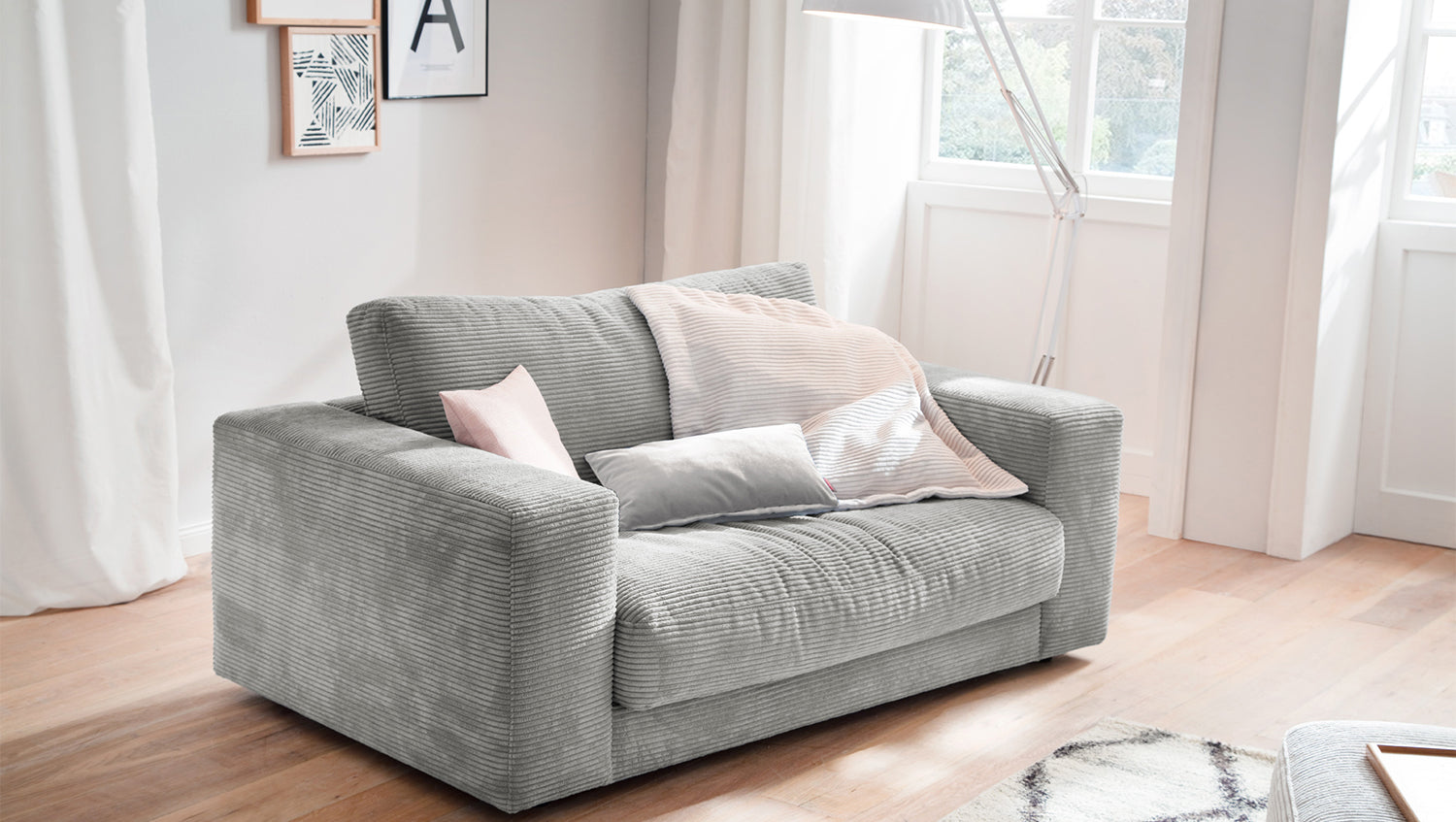 KAWOLA sillón doble MADELINE Loveseat Pana gris claro