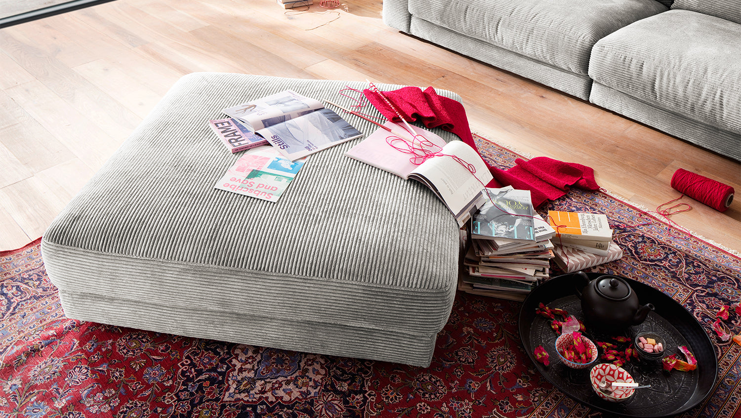El Puf grande MADELINE de KAWOLA impresiona por su extraordinaria comodidad de asiento, que se consigue gracias a su tapizado extremadamente desenfadado y que invita a quedarse y relajarse. Su forma moderna y urbana confiere al taburete tapizado un aspecto inconfundible. Con su diseño atemporal, se integra perfectamente en cualquier ambiente y destaca en cualquier interior. Si desea dar un toque extraordinario a su salón, el Puf grande MADELINE es sin duda lo que necesita. El Puf también es el complemento perfecto para los sofás Pana de la gama MADELINE.