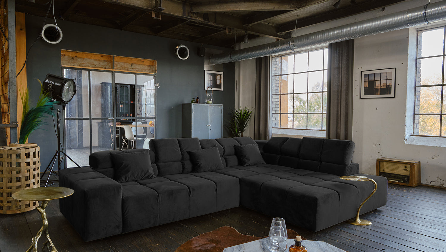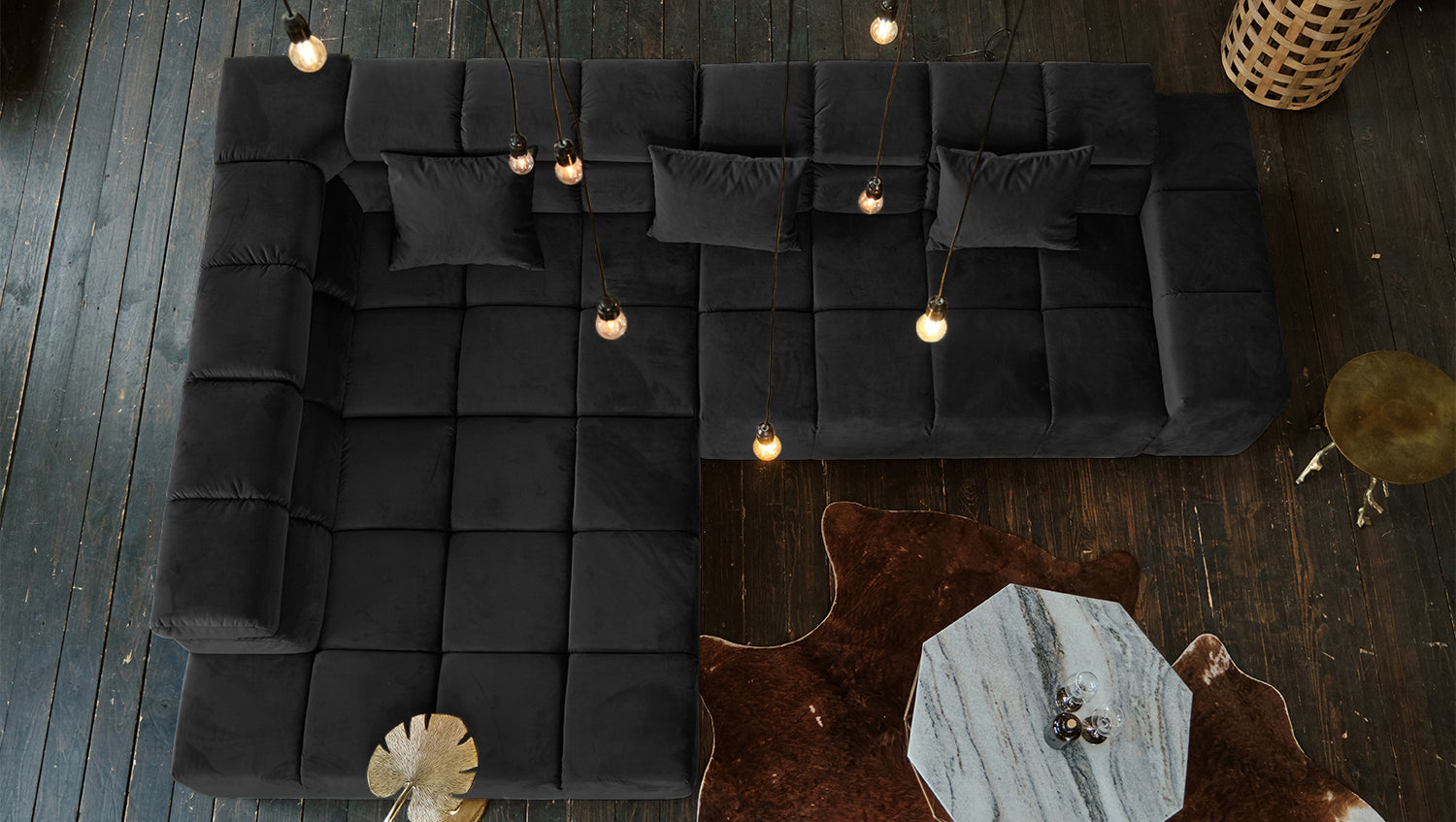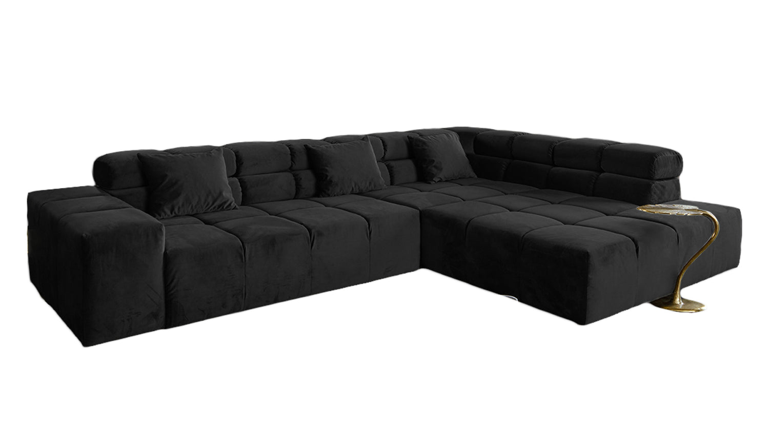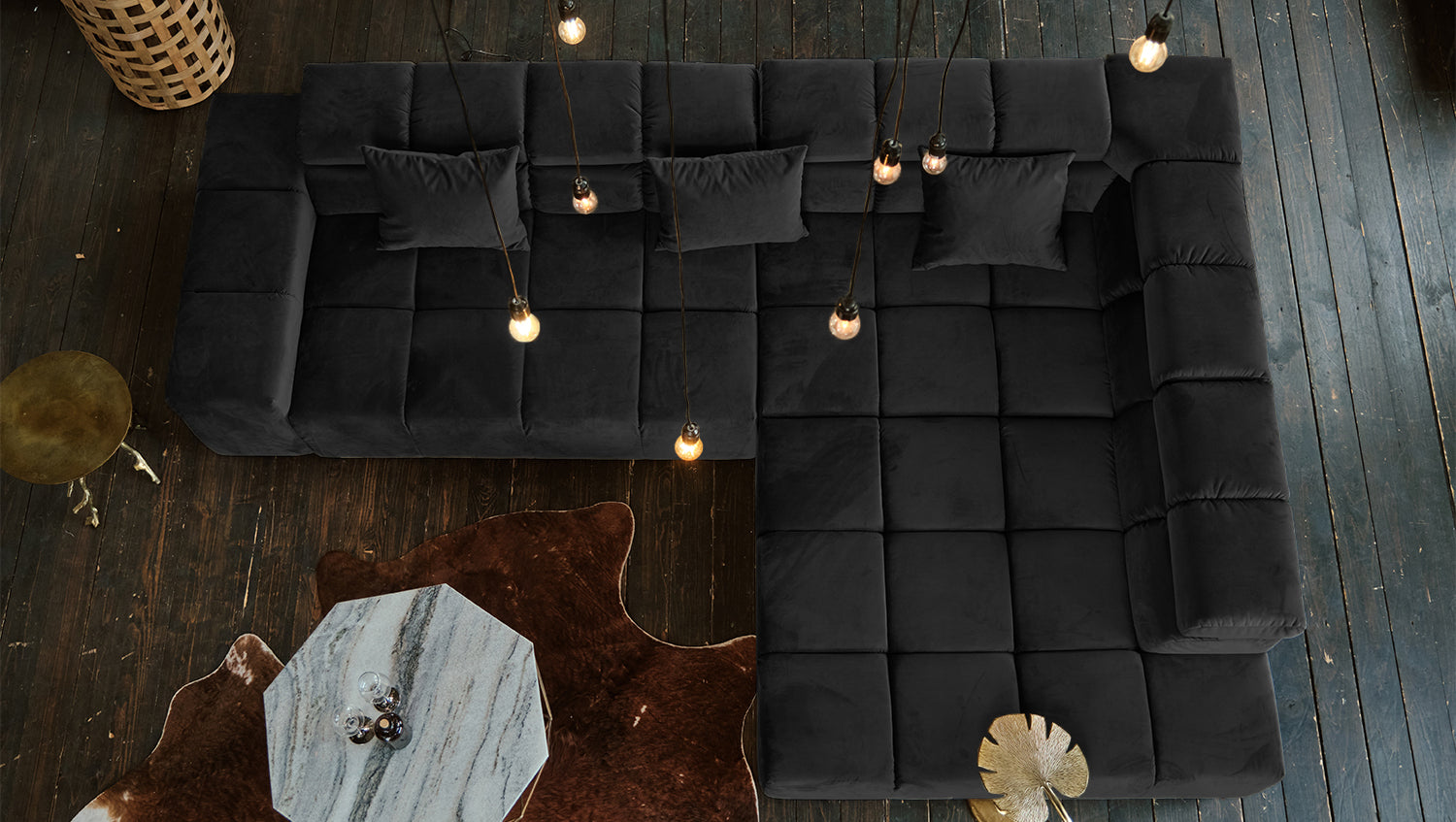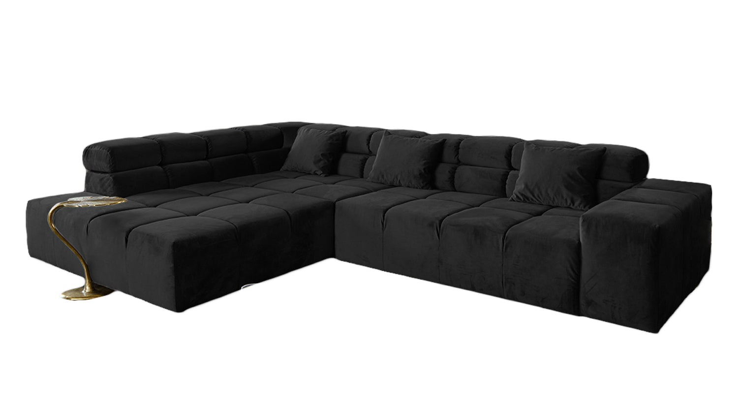KAWOLA Sofá NEVADA Sofá esquinero Terciopelo negro