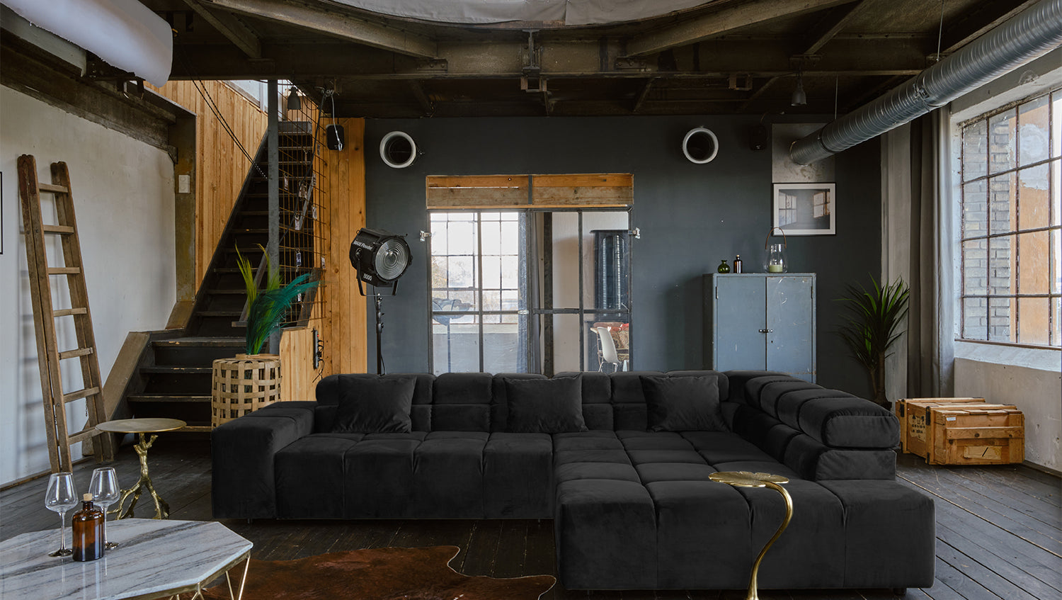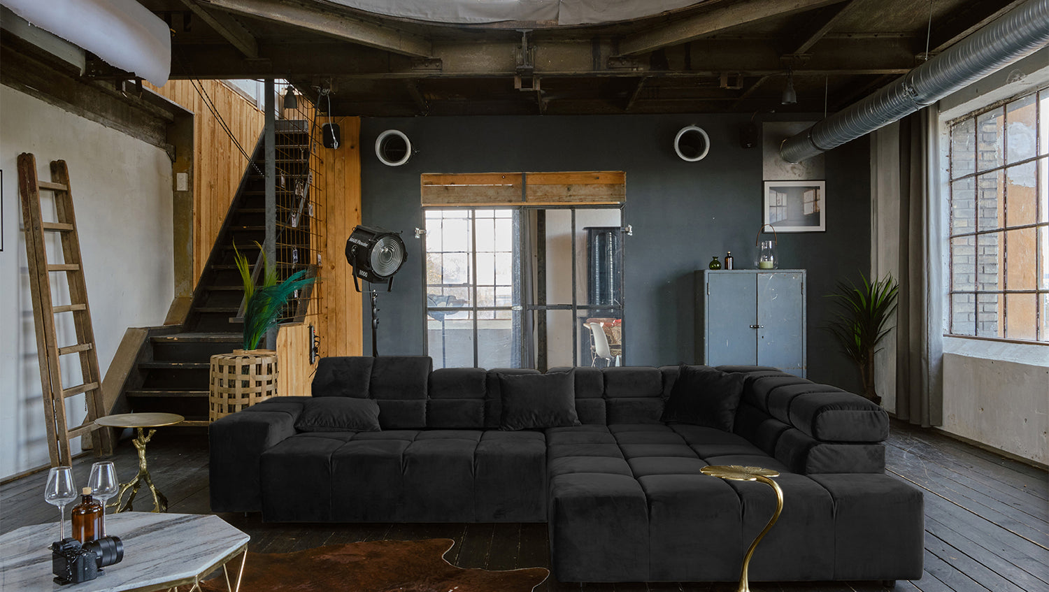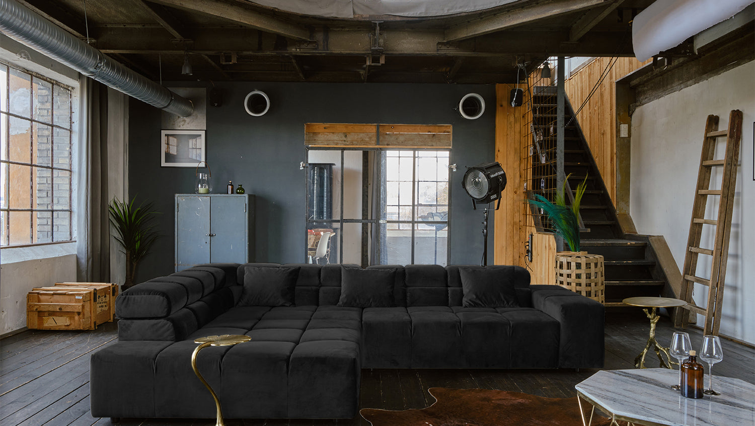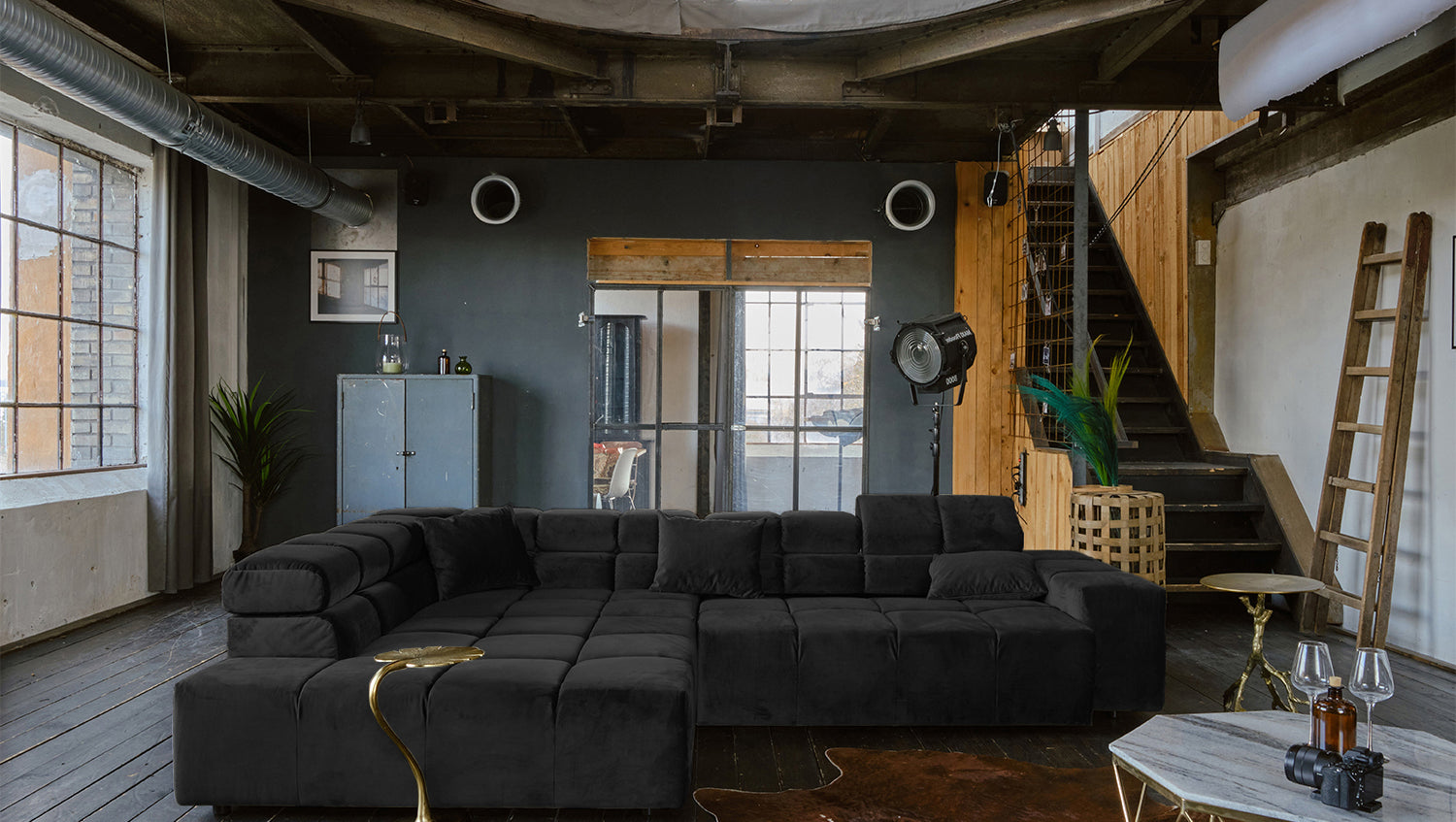 KAWOLA Sofá NEVADA Sofá esquinero Terciopelo negro