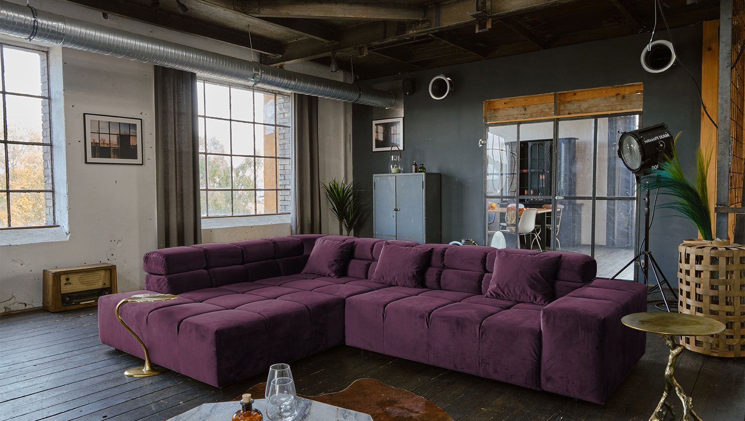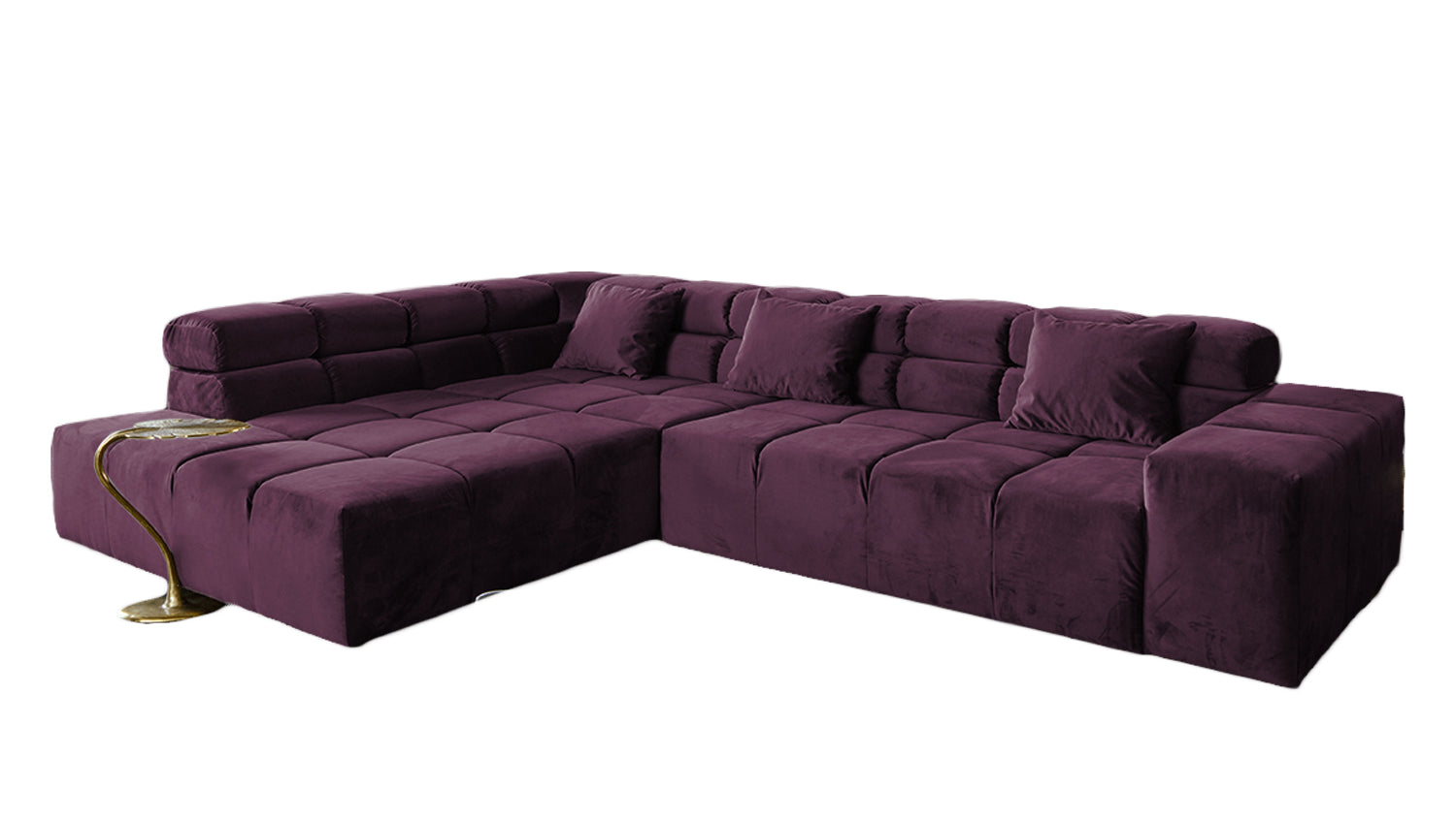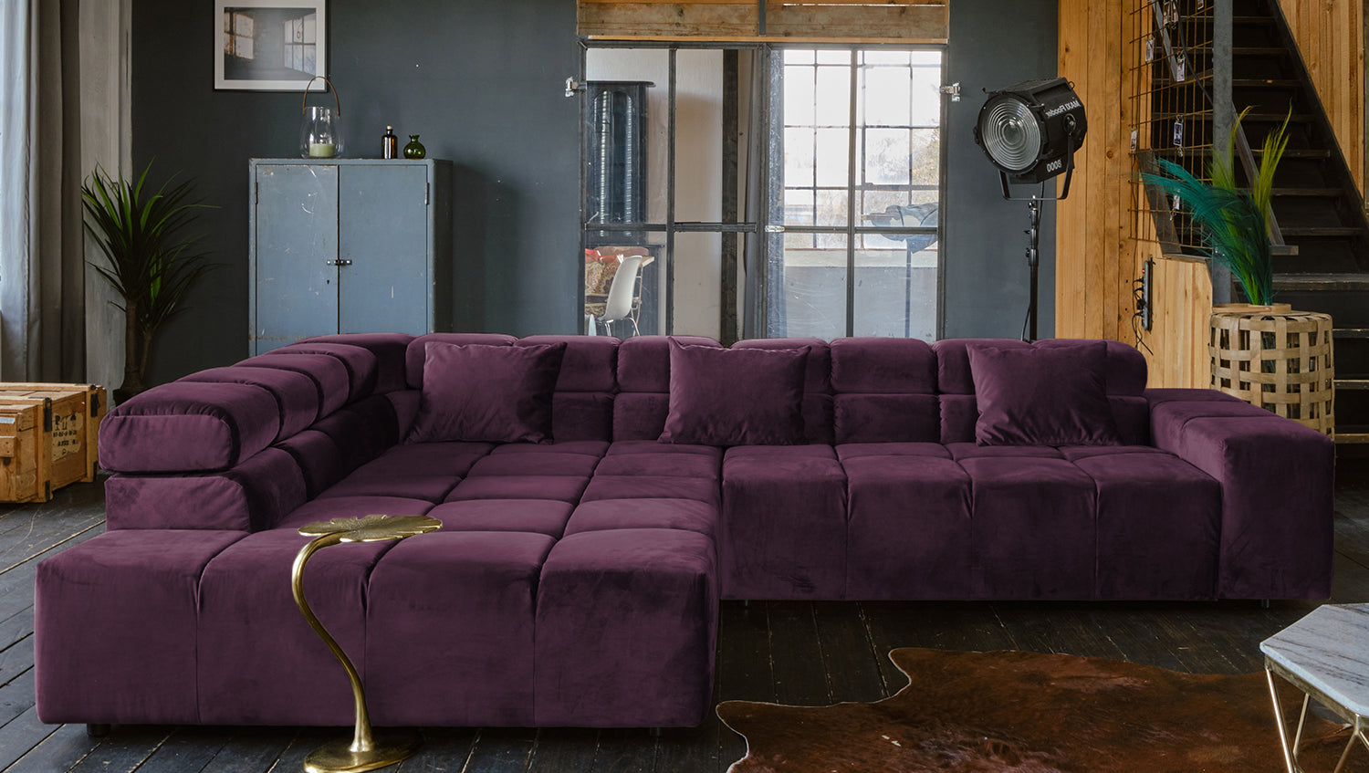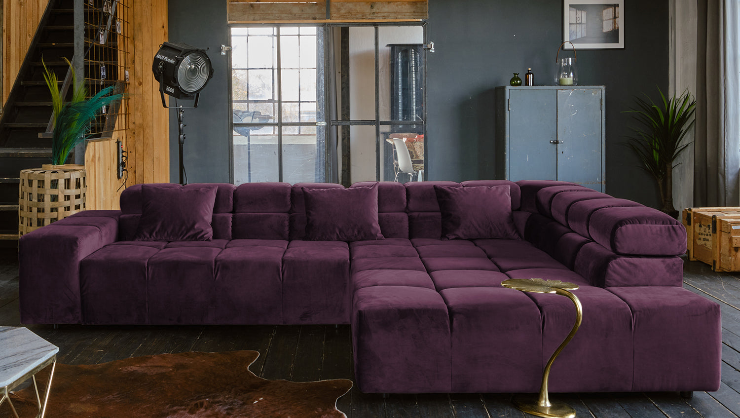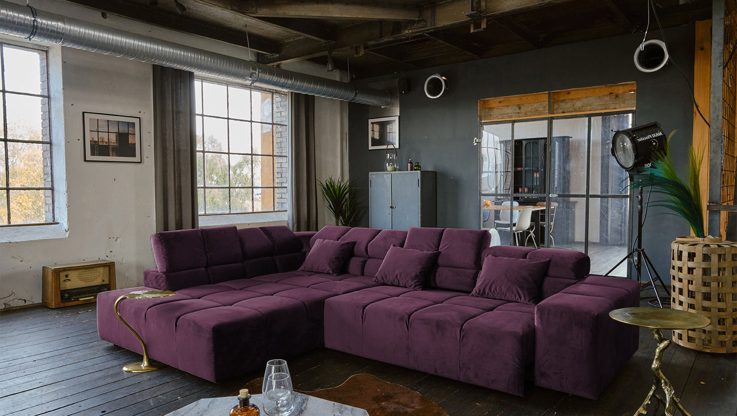 KAWOLA Sofá NEVADA Sofá esquinero Terciopelo púrpura