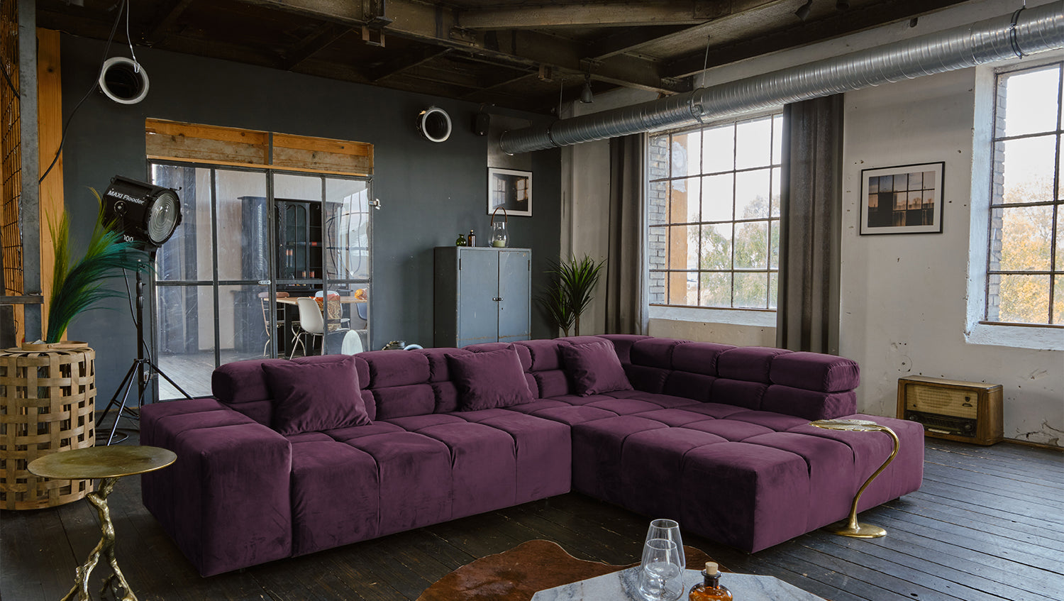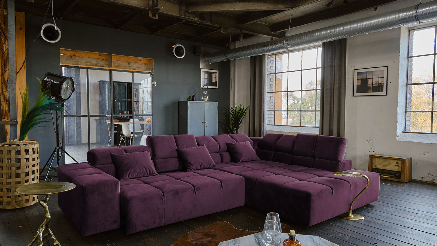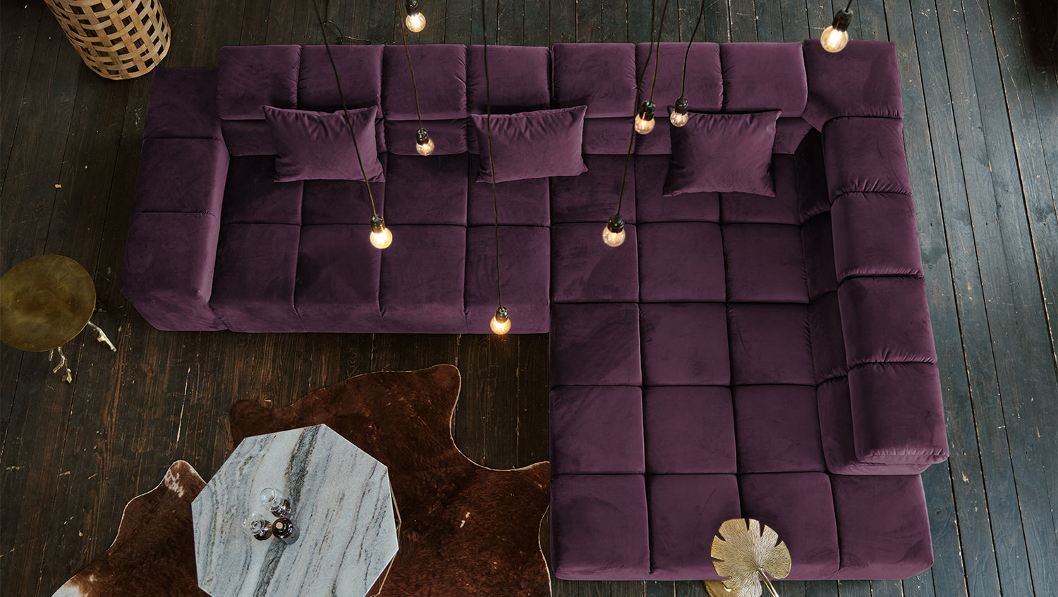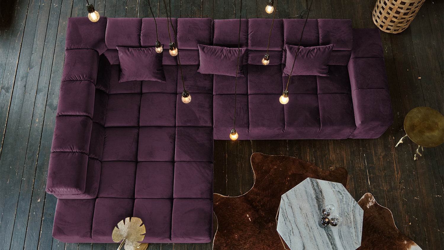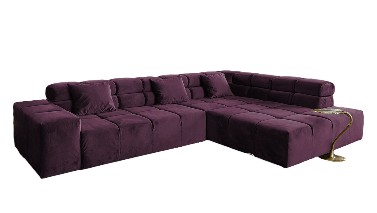 KAWOLA Sofá NEVADA Sofá esquinero Terciopelo púrpura
