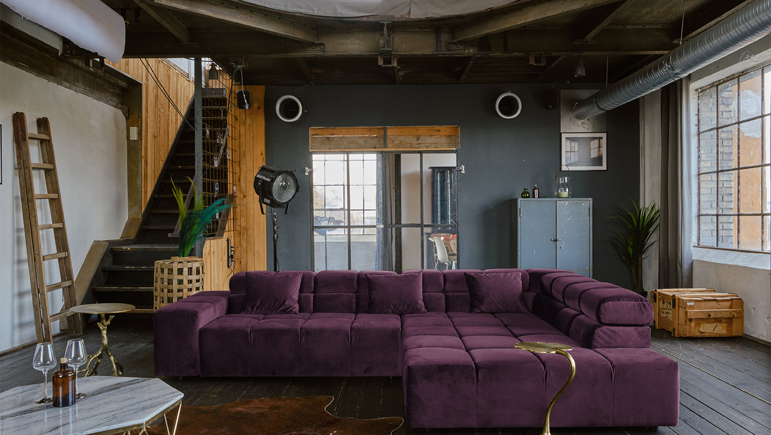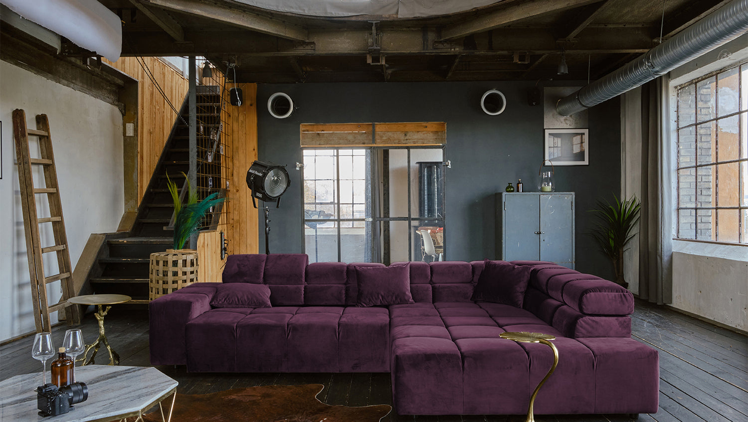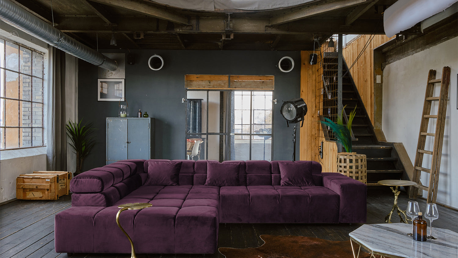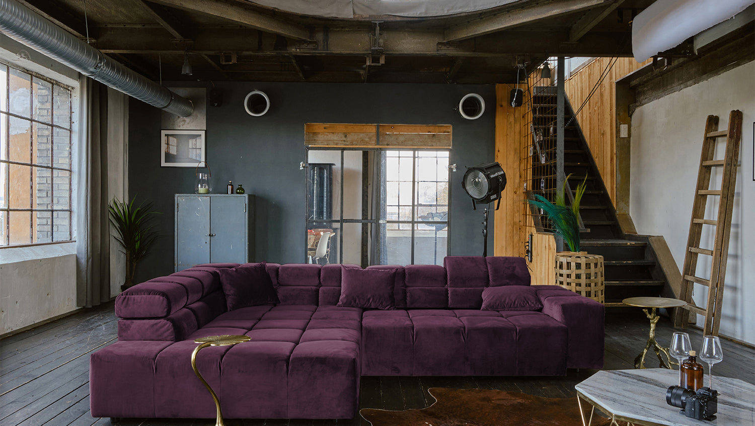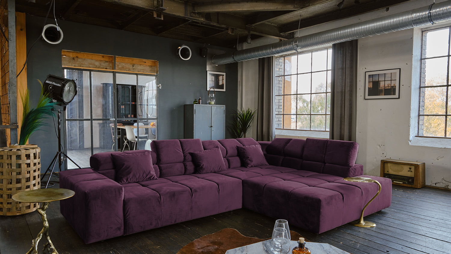 KAWOLA Sofá NEVADA Sofá esquinero Terciopelo púrpura