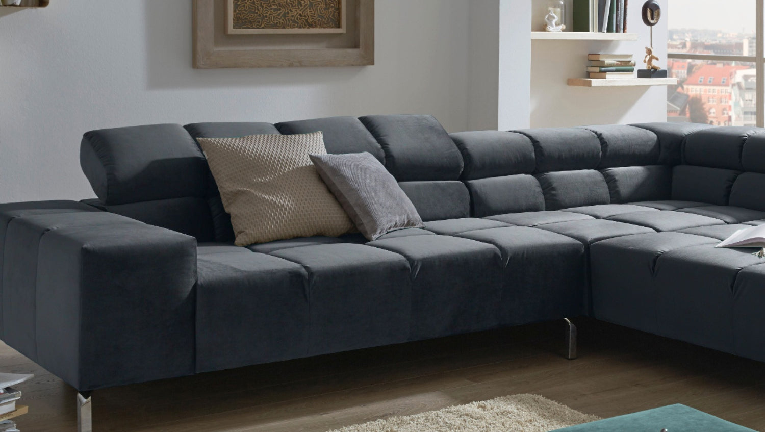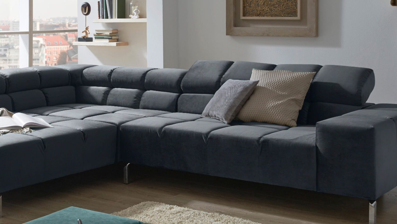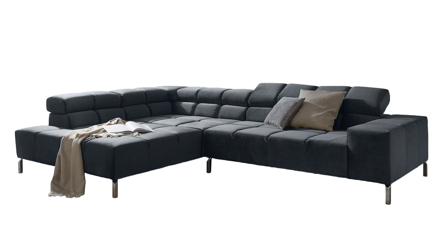 El sofá esquinero NELSON de KAWOLA combina los mundos del diseño moderno con una elegancia atemporal y se integra a la perfección en cualquier interior. Su forma cúbica y sus altos pies metálicos confieren al sofá cierta ligereza, acentuada por el acolchado cuadrado. Los reposacabezas pueden abatirse hacia arriba o hacia abajo para adaptarse a las preferencias individuales de asiento. La compleja tapicería de 3 niveles garantiza también la máxima comodidad de asiento. Naturalmente, el respaldo del sofá también está tapizado con el tejido de terciopelo de alta calidad, de modo que también destaca cuando se coloca libremente en la habitación. Sea cual sea la ocasión, en el sofá NELSON todos encontrarán un lugar para relajarse.