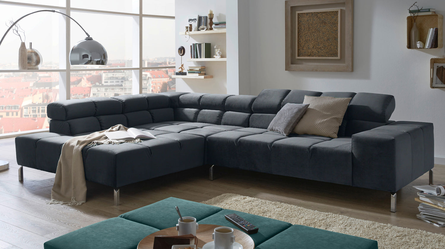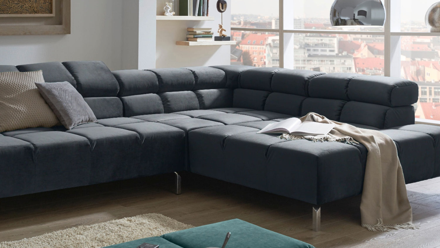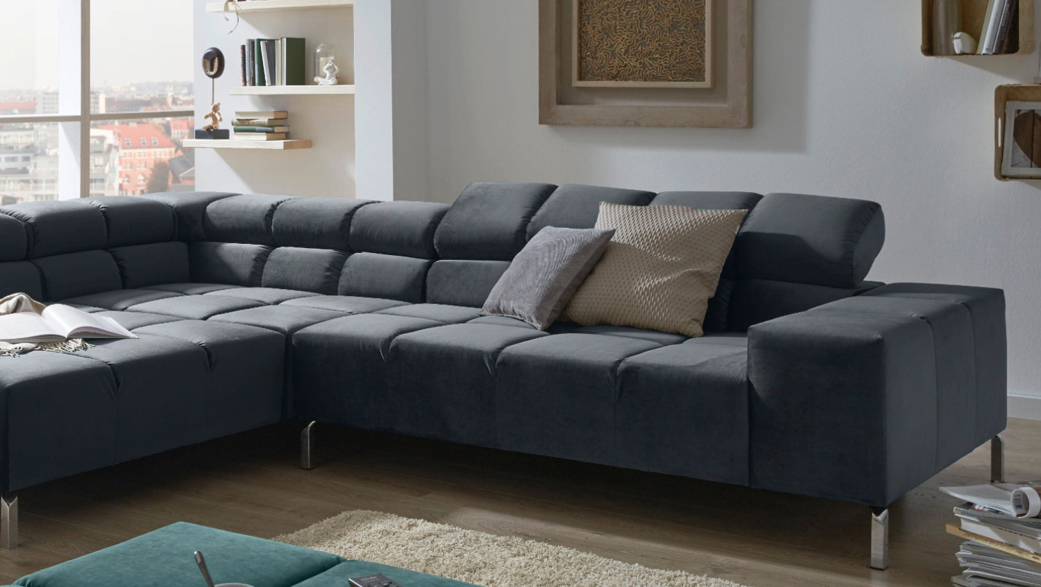 El sofá esquinero NELSON de KAWOLA combina los mundos del diseño moderno con una elegancia atemporal y se integra a la perfección en cualquier interior. Su forma cúbica y sus altos pies metálicos confieren al sofá cierta ligereza, acentuada por el acolchado cuadrado. Los reposacabezas pueden abatirse hacia arriba o hacia abajo para adaptarse a las preferencias individuales de asiento. La compleja tapicería de 3 niveles garantiza también la máxima comodidad de asiento. Naturalmente, el respaldo del sofá también está tapizado con el tejido de terciopelo de alta calidad, de modo que también destaca cuando se coloca libremente en la habitación. Sea cual sea la ocasión, en el sofá NELSON todos encontrarán un lugar para relajarse.