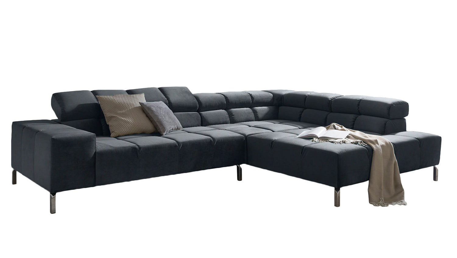 KAWOLA Sofá NELSON esquinero Terciopelo negro