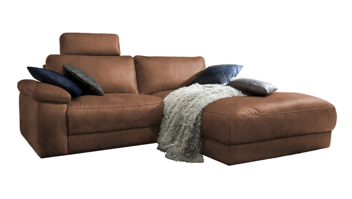 El sofá esquinero KAWOLA LOLA convence por su aspecto atemporal. Además, este mueble es muy funcional. El elemento de asiento derecho dispone de una función de reclinación motorizada que permite desplazar el respaldo hacia atrás y extender el reposapiés. Otro elemento destacado es el reposacabezas con aspecto de cojín, que también puede ajustarse a voluntad. El armazón es de madera maciza encolada y las superficies del asiento y el respaldo son muy cómodas gracias a su estructura de varias capas. La funda de cuero de alta calidad de estilo vintage es muy fácil de cuidar y confiere al sofá una elegancia clásica. Los pies de plástico empotrados con aspecto flotante crean un atractivo contraste. El acolchado muy desenfadado del asiento, el respaldo y los reposabrazos ofrece además una gran comodidad de asiento. El sofá esquinero LOLA se integra a la perfección en cualquier entorno y destaca en cualquier lugar.