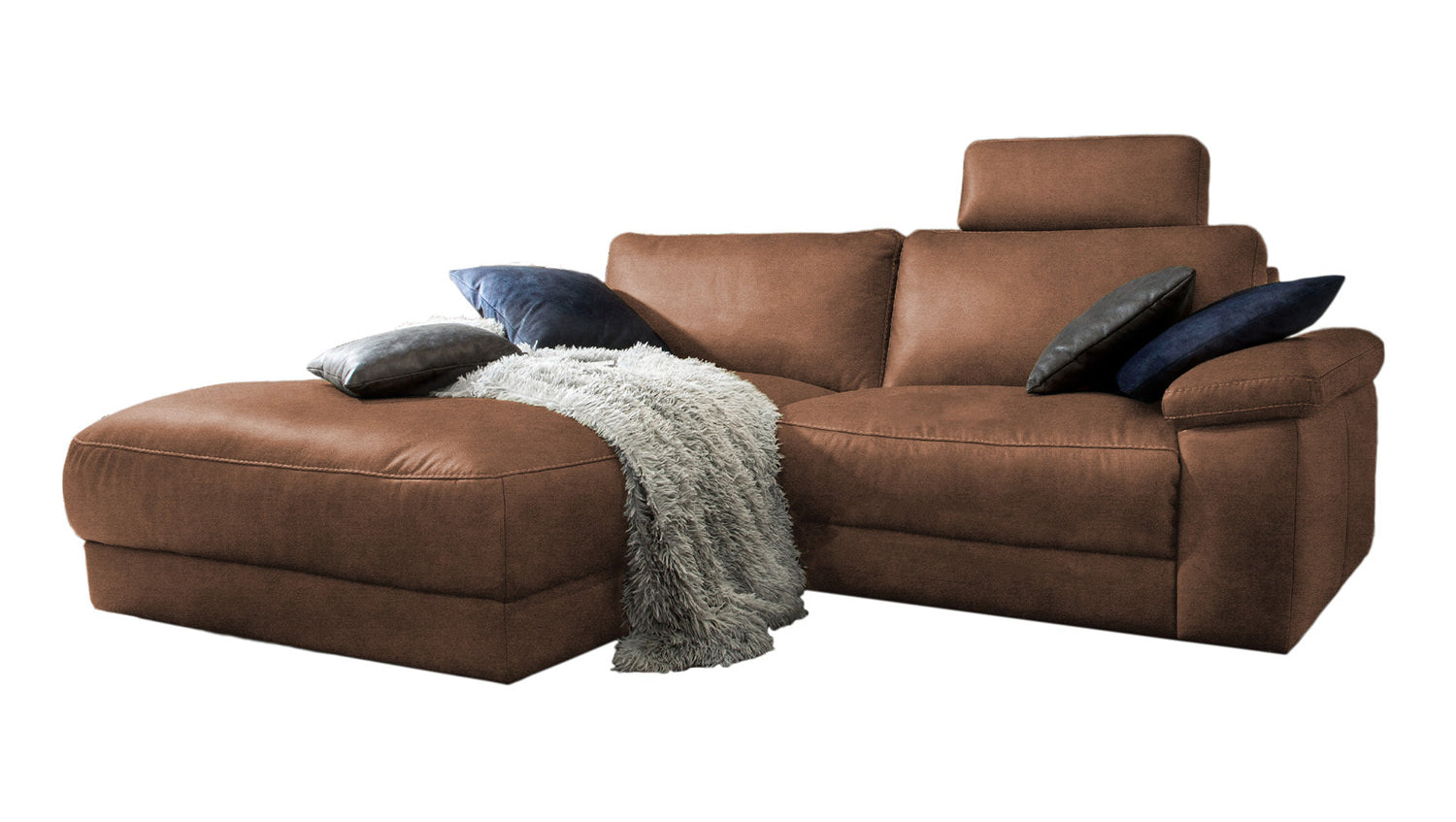 KAWOLA Sofá LOLA Sofá esquinero de piel marrón con función relax motorizada