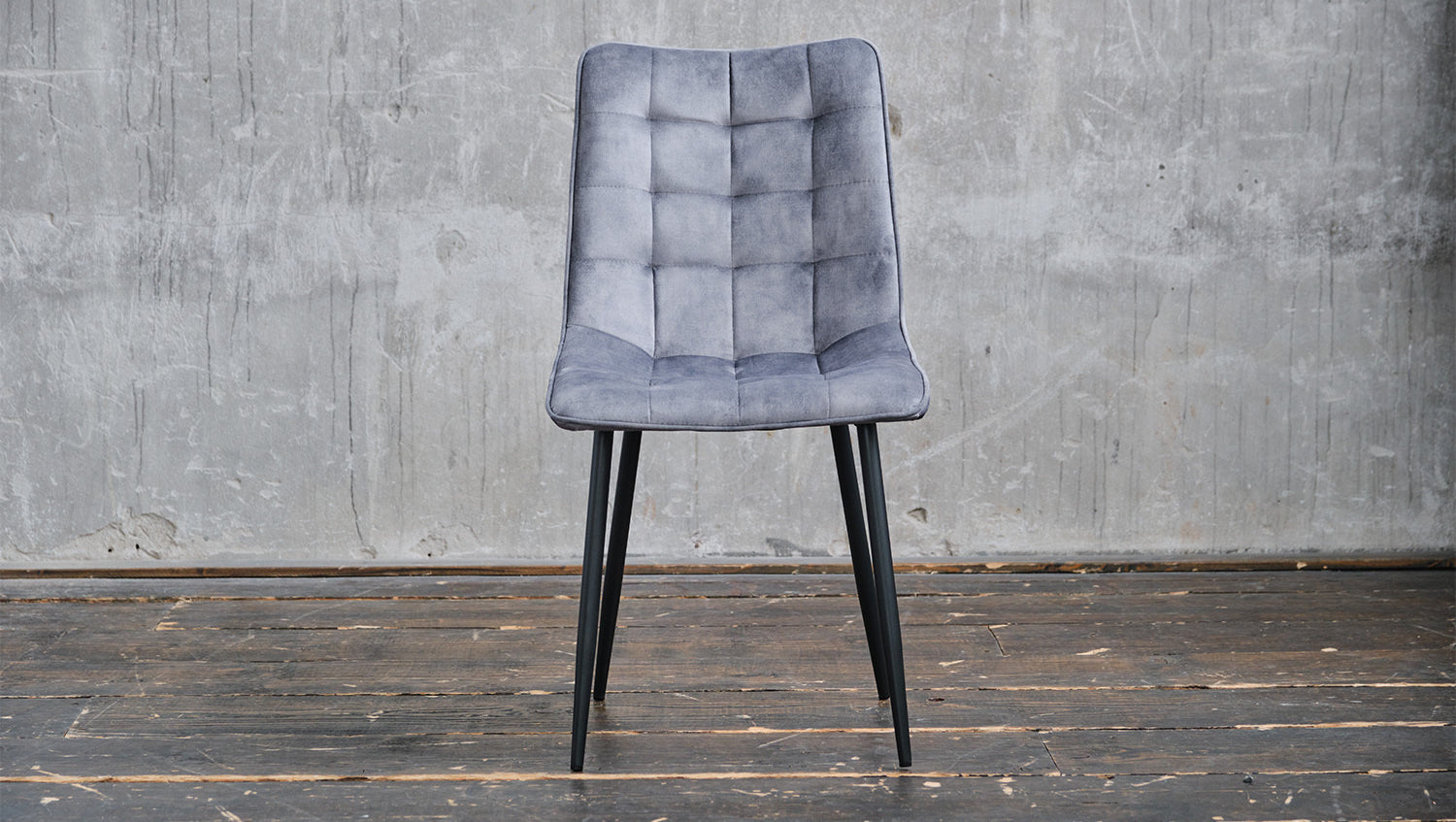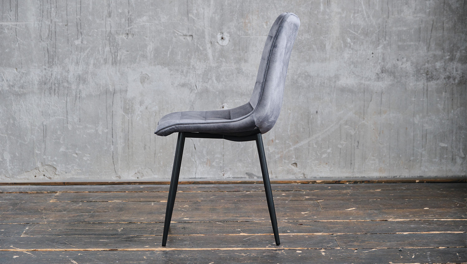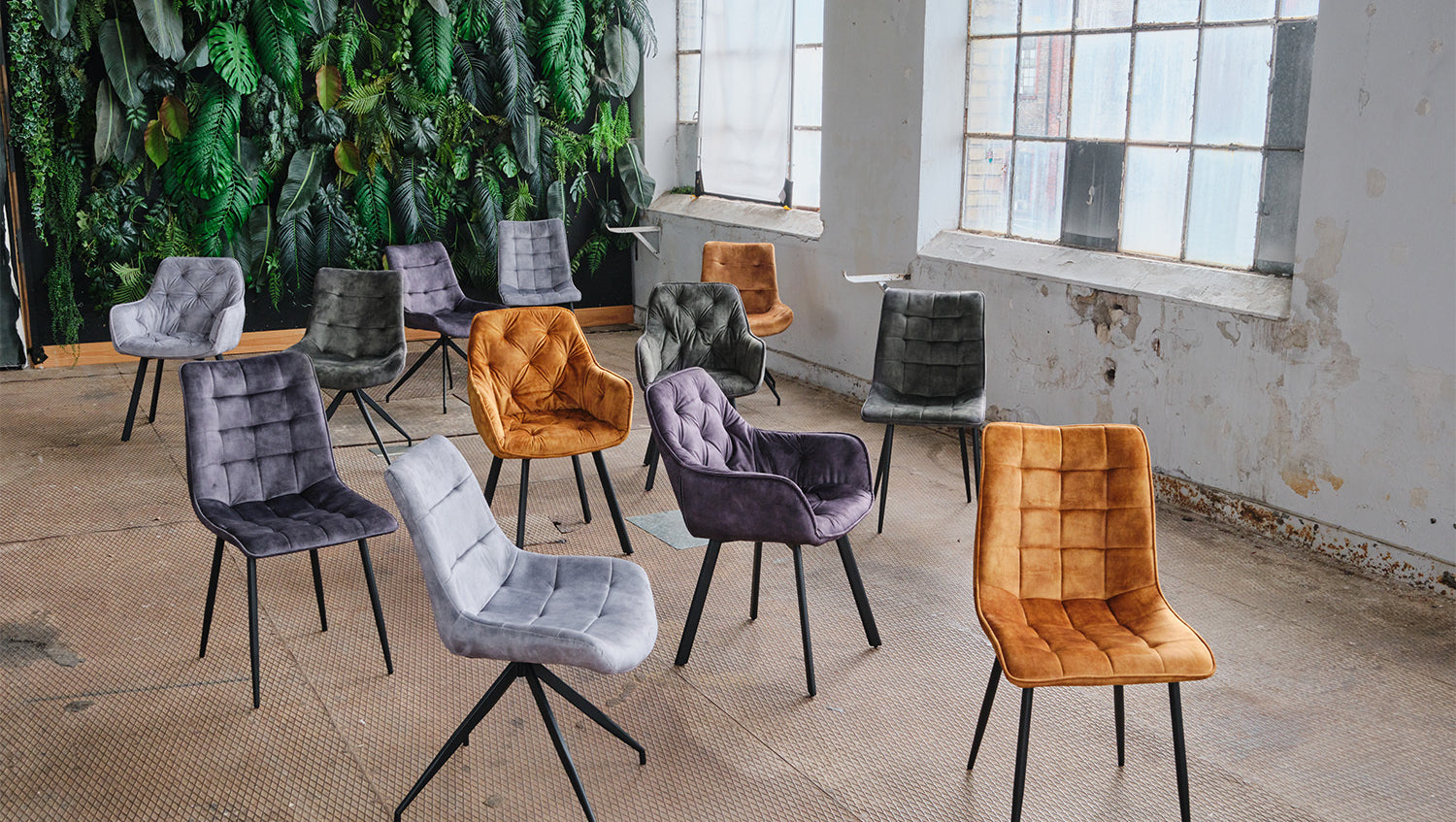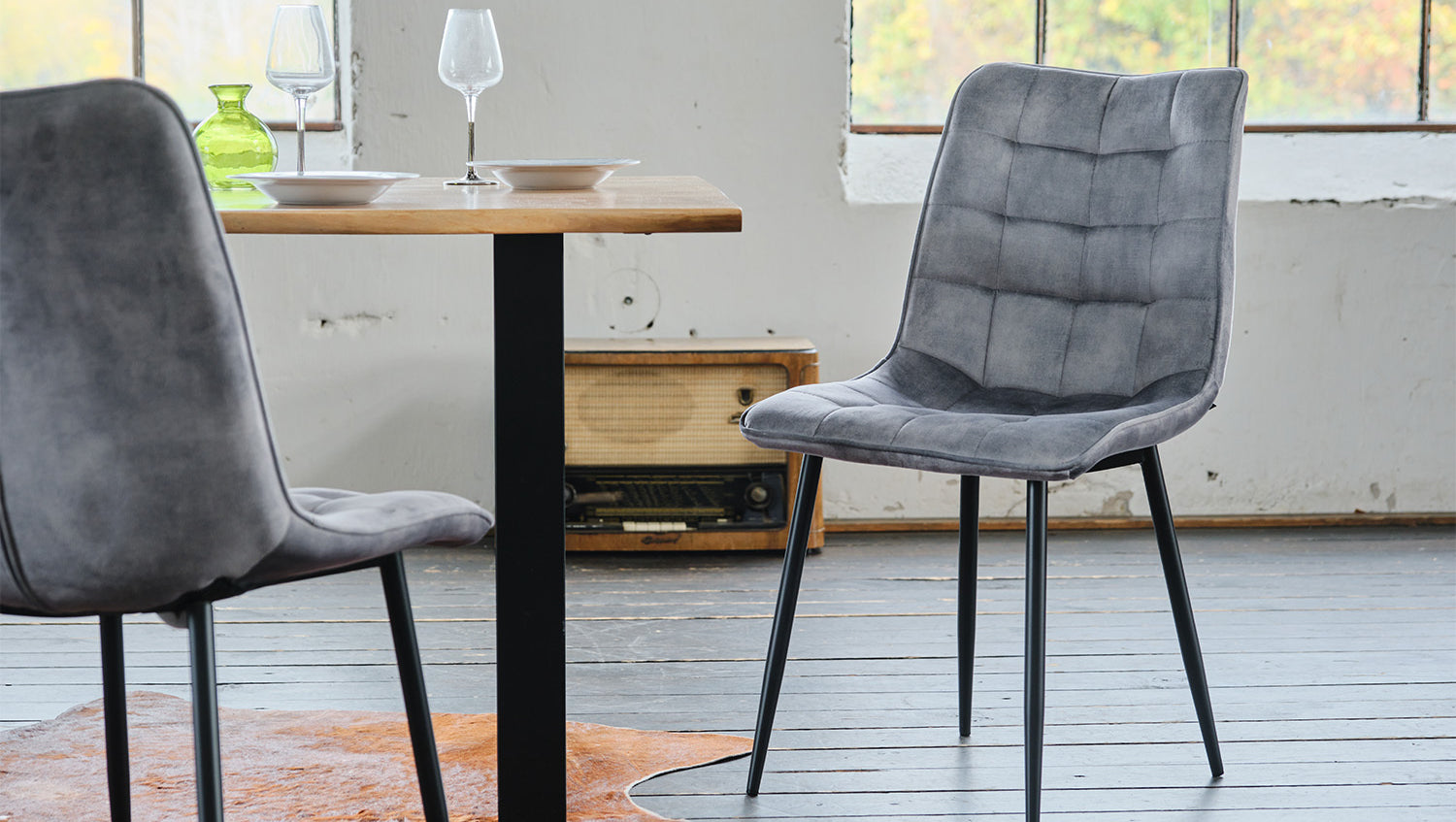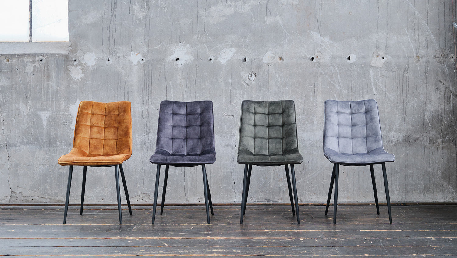 La silla CLARA combina el diseño industrial con la vida moderna. En ella podrá reclinarse cómodamente y cenar con estilo. El tapizado de terciopelo tiene un acabado de alta calidad y el elaborado acolchado confiere a la silla un aspecto especial. Ya sea en el despacho o en el comedor, la silla CLARA se adapta a prácticamente cualquier espacio gracias a su moderno diseño.