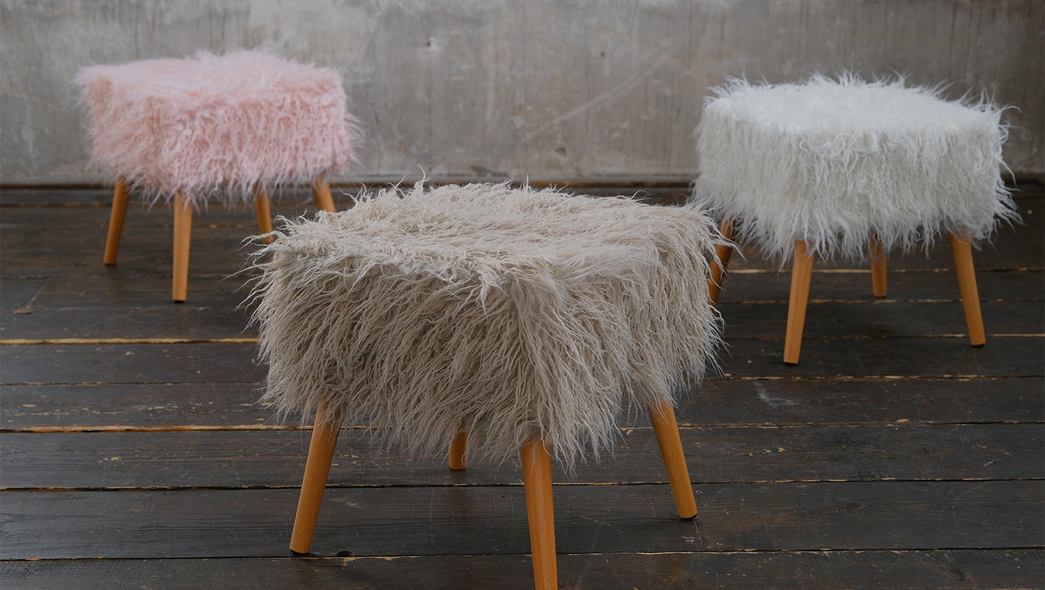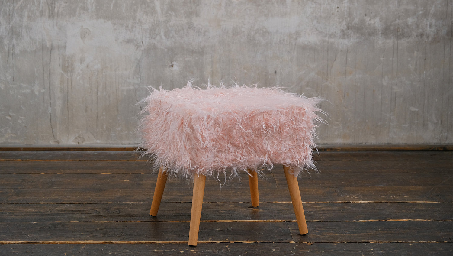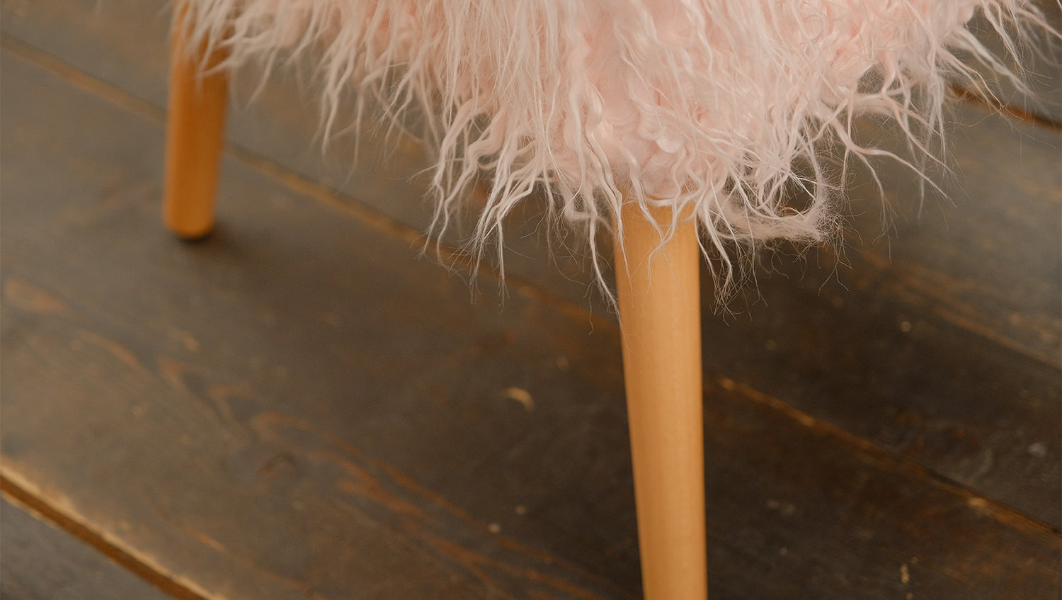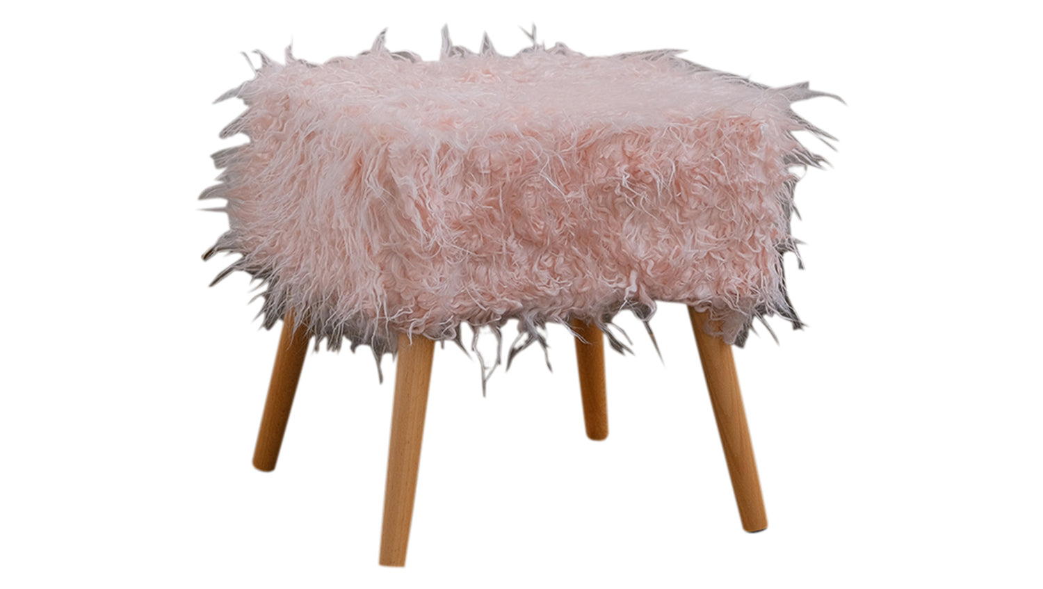 KAWOLA taburete de piel FYNN Flokati taburete de piel rosa