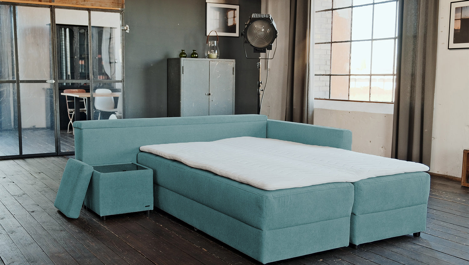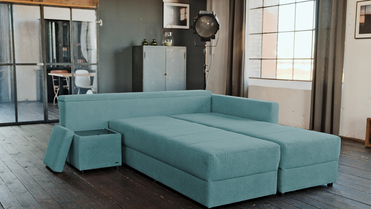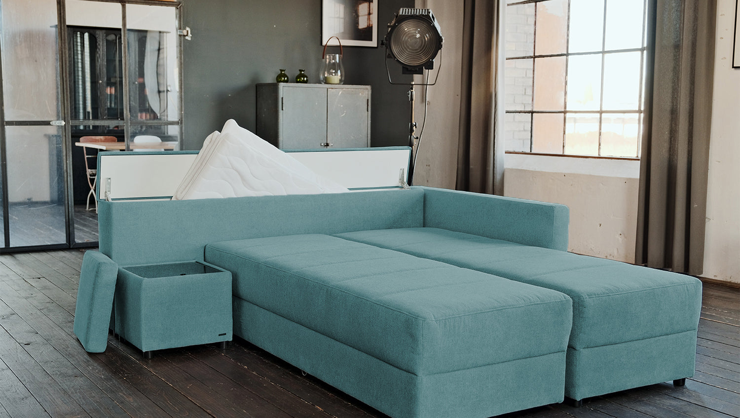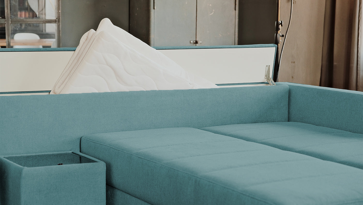 El sofá cama IDA de KAWOLA no es sólo un atractivo visual, ya que ofrece múltiples posibilidades de uso. Como sofá rinconero, ofrece mucho espacio para la familia y los invitados. En pocos pasos se puede crear una cómoda cama con somier. En el espacio de almacenamiento del respaldo, ingeniosamente oculto, hay espacio para la colchoneta a juego. No importa cómo ni dónde, el sofá cama IDA se adapta individualmente a su vida cotidiana.